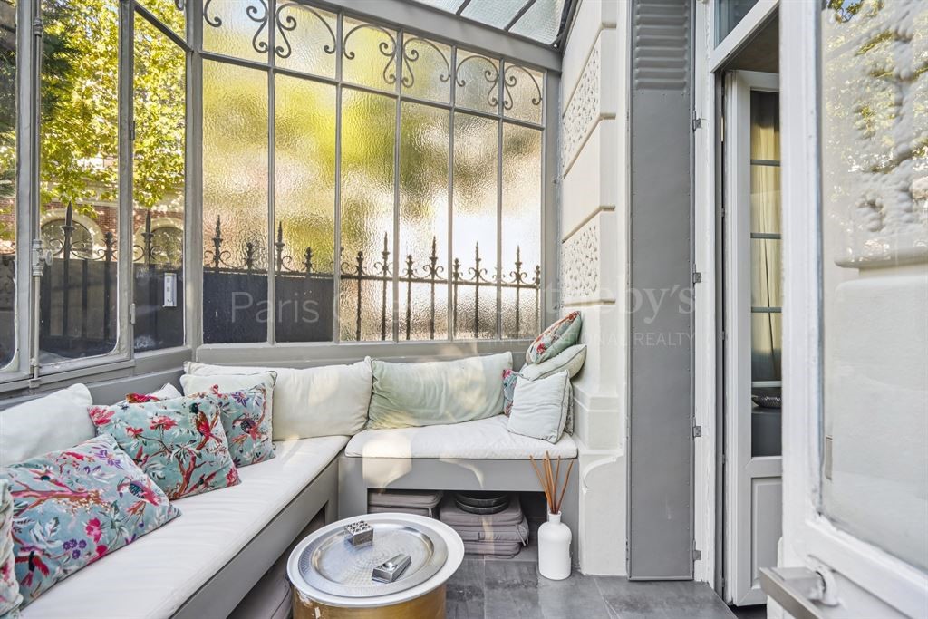 For Sale – In the highly sought-after Henri Martin – Victor Hugo neighborhood, in the heart of Paris's 16ᵉ arrondissement, discover an elegant prestige apartment of 134 sqm with a private garden of 123 sqm. Situated on the garden level of a secure, high-end residence, this rare property perfectly combines charm, comfort, and an exceptional address. The apartment opens onto a vast living room bathed in natural light thanks to its South-East exposure, creating a warm and welcoming atmosphere from the early hours of the day. Its unobstructed views of a lush landscaped garden bring a unique sense of serenity, seldom found in the center of Paris. The interior layout features three spacious bedrooms, including a master suite, a bathroom, a shower room, and a separate kitchen, both functional and elegant. The outdoor space, a natural extension of the living areas, is a true highlight—ideal for entertaining, relaxing, or enjoying peaceful moments in complete privacy. Two underground parking spaces (available at an additional cost) complete this exceptional property, offering both comfort and practicality for families or those who appreciate generous living areas. Its strategic location, in close proximity to public transport, renowned schools, and shops, makes it the perfect address for refined city living. Rare on the Parisian market, this property is sure to captivate discerning buyers seeking a prestigious home that harmoniously blends volume, natural light, and quality of life.