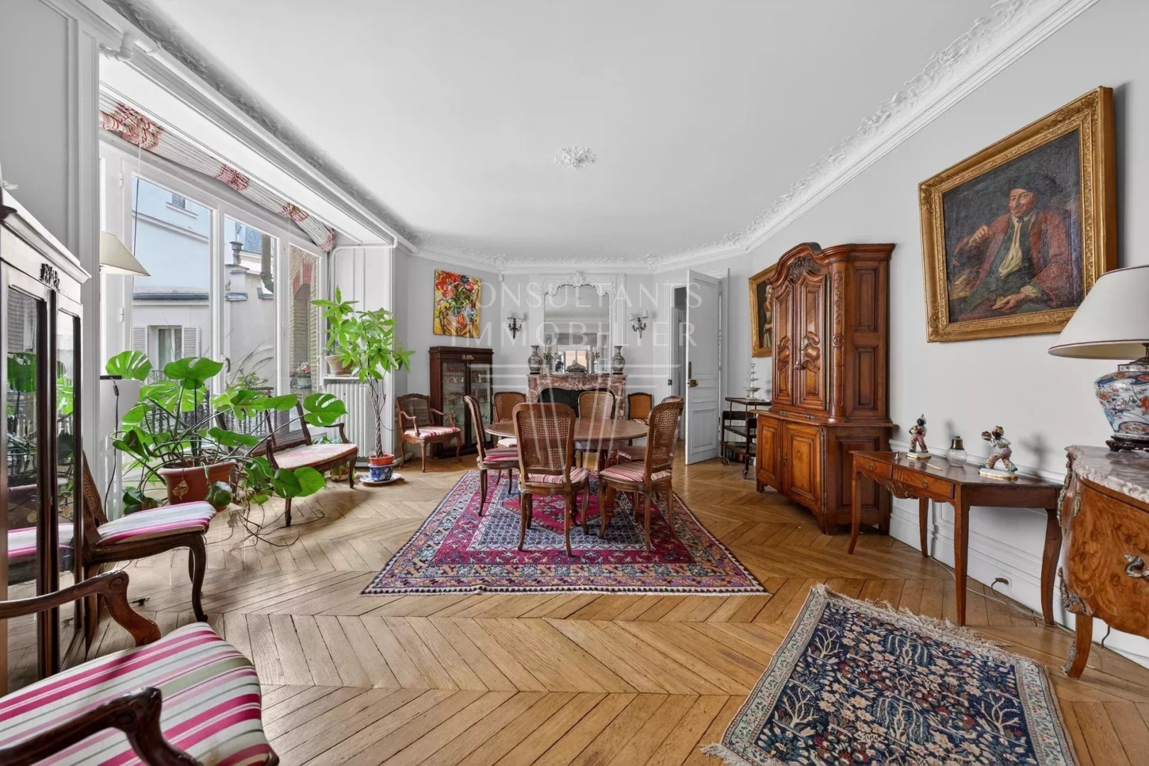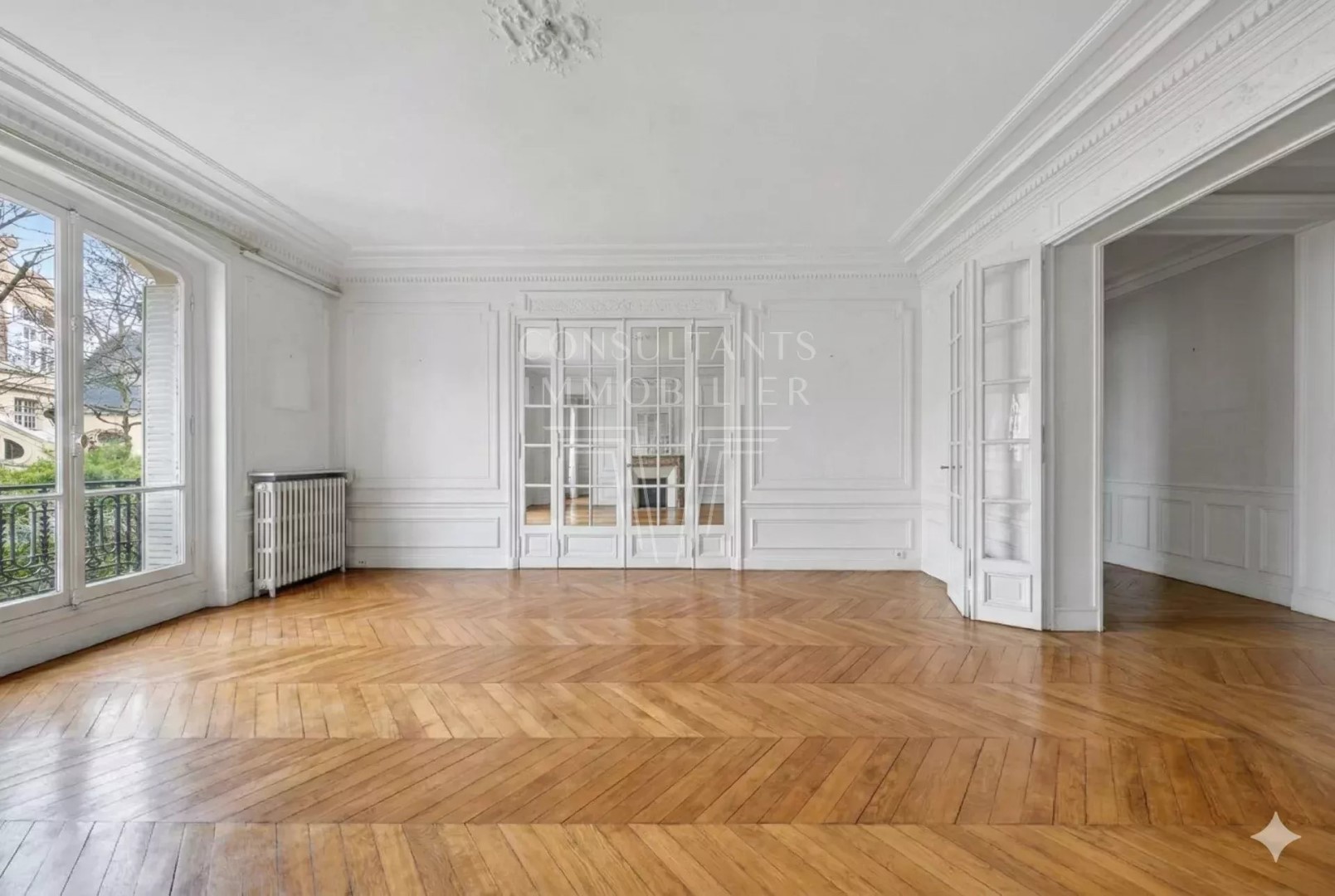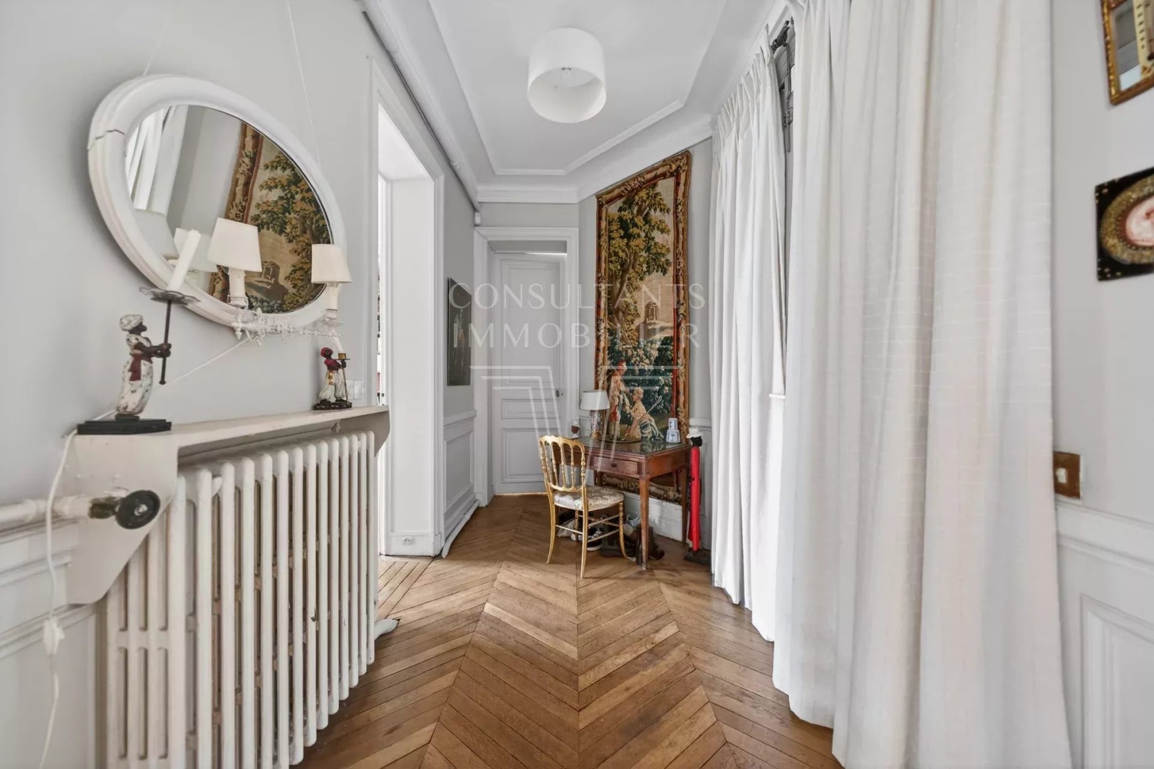 PARIS 16th. MAGNIFICENT FAMILY AND RECEPTION APARTMENT.PERIOD CHARM AND SPACIOUS VOLUMES On the whole floor of a fine 1900s freestone building with a caretaker, this 210 sqm Carrez law apartment has retained all its original features including herringbone parquet flooring, moldings, fireplaces and high ceilings. It comprises an entrance gallery, a west-facing double living room benefiting from an open view, a dining room, a kitchen with dining facilities, four bedrooms, a study, two bathrooms with lavatory, two shower rooms and lavatory room. This property with generous volumes is ideally located in the Janson de Sailly school catchment area, a few steps from shops, transport and the neighborhood's best schools. Sold with a cellar. A 10 sqm maid's bedroom is available at an additional cost. CONSULTANTS IMMOBILIER LUXURY REAL ESTATE PARIS
