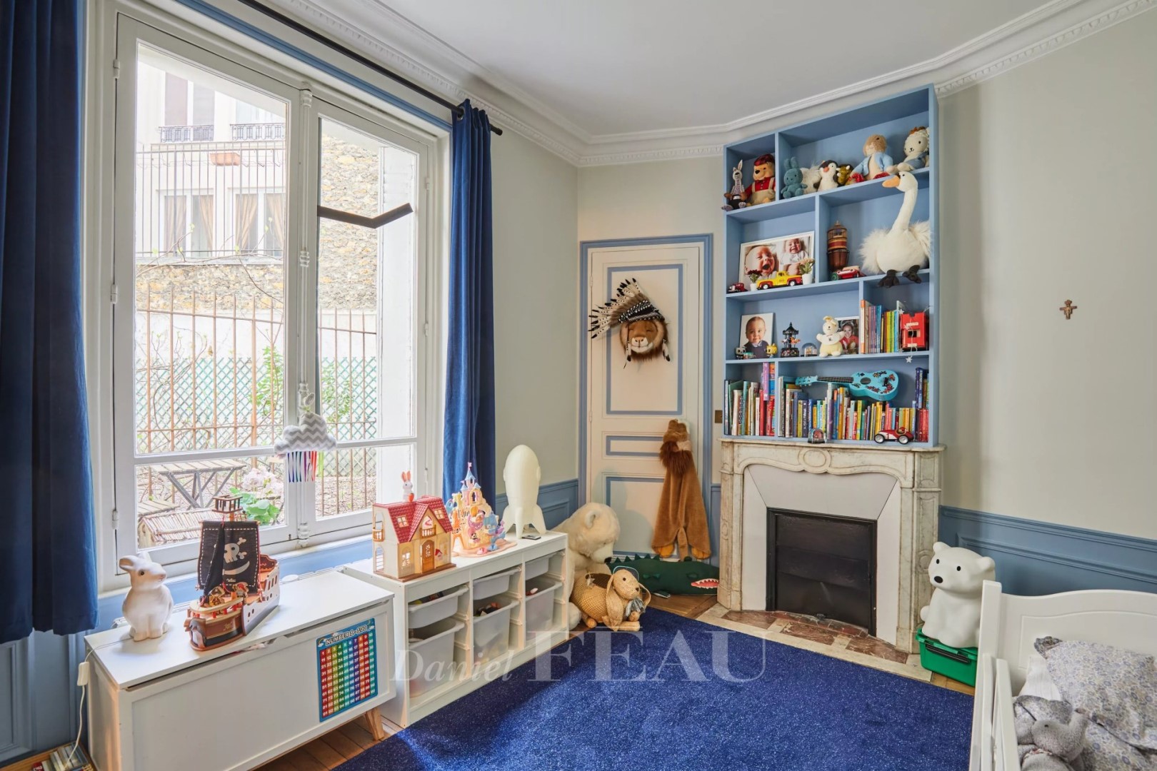 La Muette/OECD neighbourhood. This 170 sqm apartment benefiting from a patio and a sunny fitted courtyard is on the ground floor of a luxurious early 20th century freestone building located near the shops and the schools. With the feel of a private home, it includes a spacious living/reception room, a generous kitchen with a dining area, a master suite with a bathroom and dressing room, three further bedrooms, a bathroom, a shower room and a guest wc. Ample fitted storage space. The half-basement comprises a near 20 sqm room which could create a study or a recreation room. In perfect condition and boasting beautiful period features. The apartment benefits from independent access, and would be ideal for a self-employed professional.