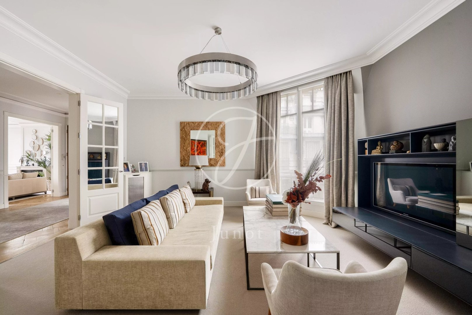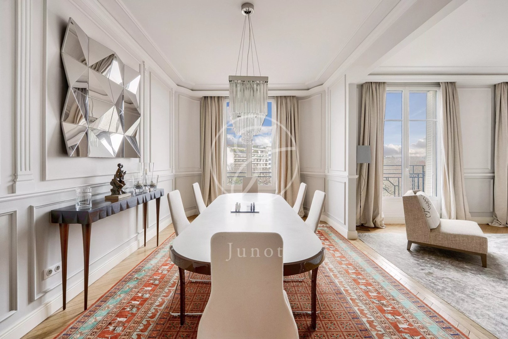Close to the Ranelagh gardens, transport, schools and shops. On the sixth floor with elevator of a beautiful old building in a quiet area, exceptional property, crossing and in excellent condition, with a surface area of 211.54sqm Carrez. This unoverlooked family and reception apartment boasts spacious accommodation. Well-appointed, it comprises an entrance gallery leading to a double reception room with an unobstructed view of the Ranelagh gardens, a small living room and a dining kitchen. At night, a master suite with bathroom and shower, toilet and dressing room, two bedrooms, a bathroom with toilet, a shower room and an office. Storage space. A cellar completes this property. A utility room of 8.04sqm Carrez and a large storage room on level -1 are available as options. Janitor.