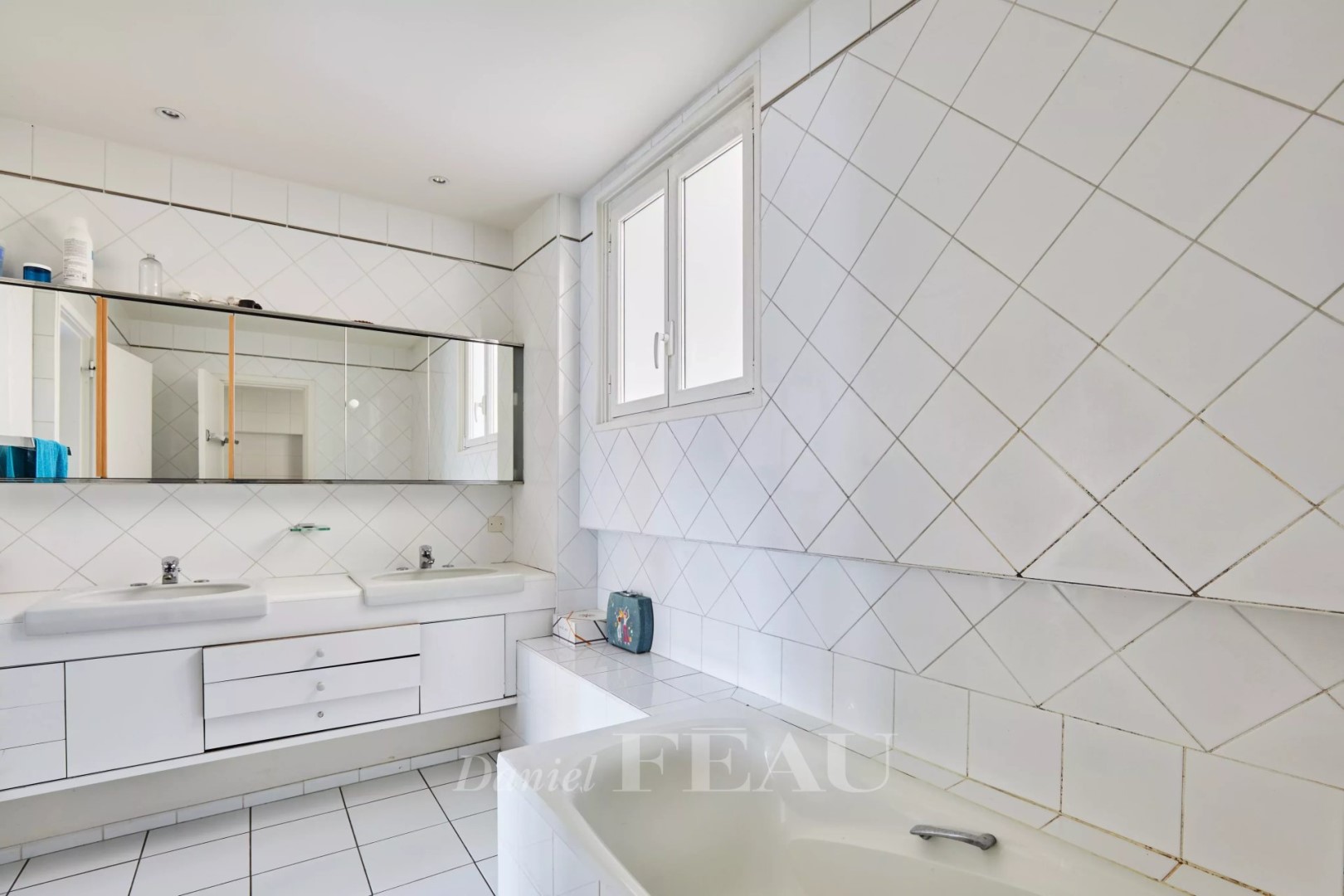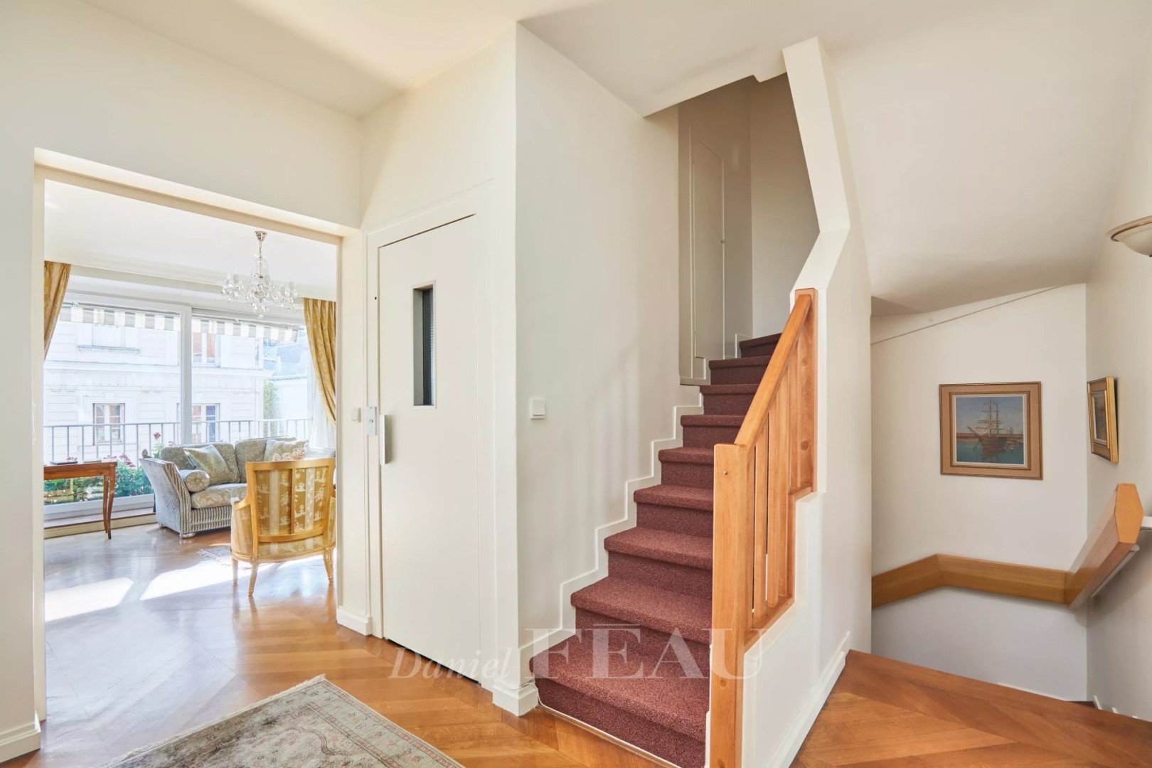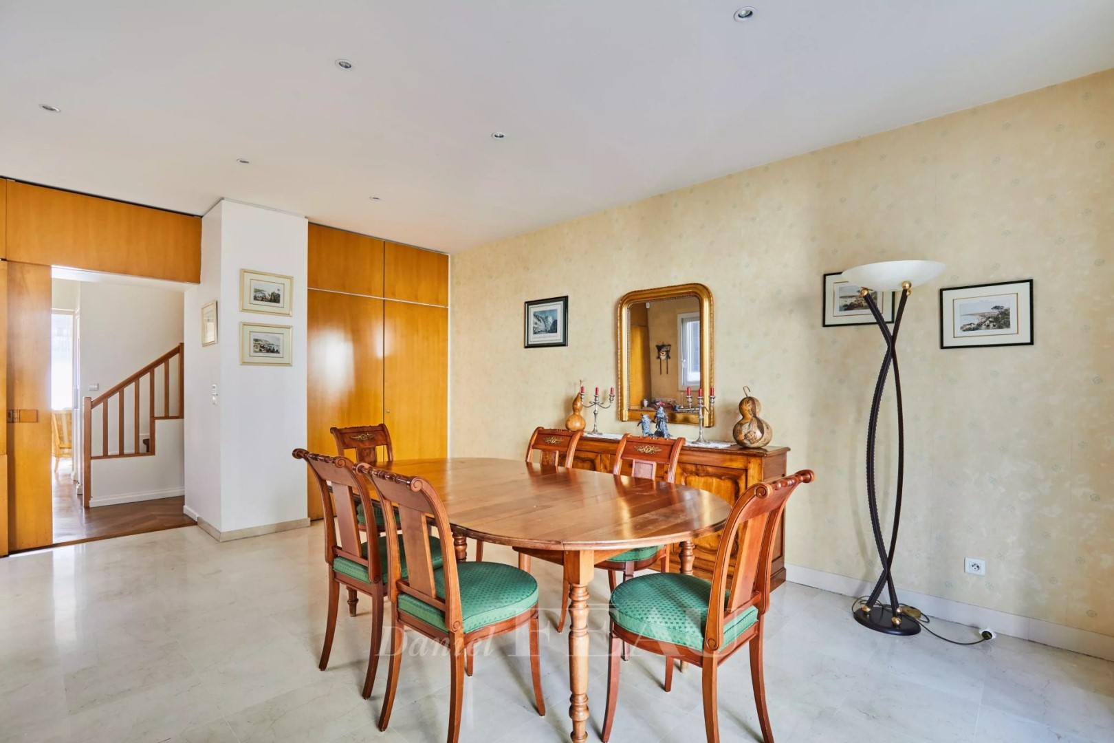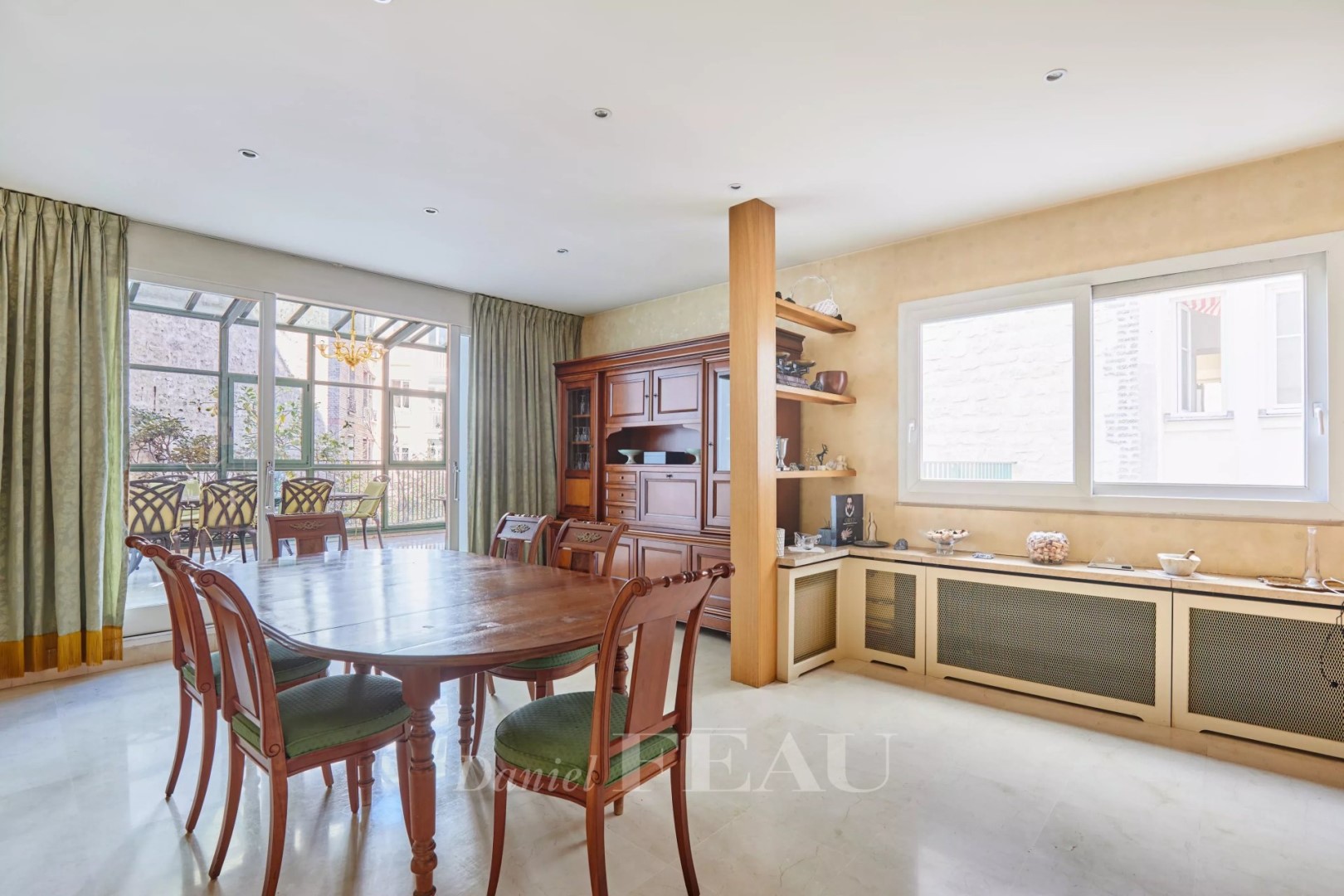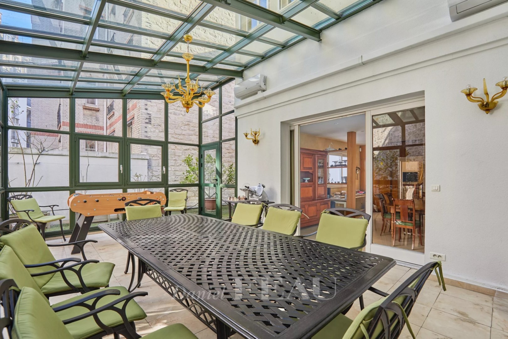 Sole agency. Close to the village of Auteuil, 300 sqm town house on 4 levels with interior elevator, basement, terrace and garage. First floor: entrance hall with access to elevator and garage with electric hook-up. On the 1st floor: a games room, a spare bedroom or office with its own water point and laundry room. 2nd floor: double reception room with fireplace and balcony, fitted and equipped kitchen, large dining room, 26 sqm conservatory opening onto a 25 sqm terrace. 3rd floor: three bedrooms, all with en suite bathrooms or shower rooms. On the 4th and top floor, a master suite with study area and full bathroom (whirlpool bath, shower, toilet). A large basement with wine cellar, equipment room and numerous storage rooms. This family home offers spacious accommodation. South-facing. Jean-Baptiste Say district. Possibility of purchasing a garage in a neighboring street for 70 000 €