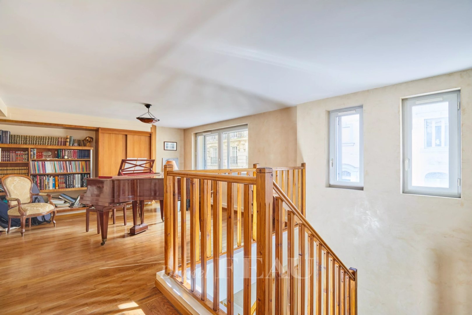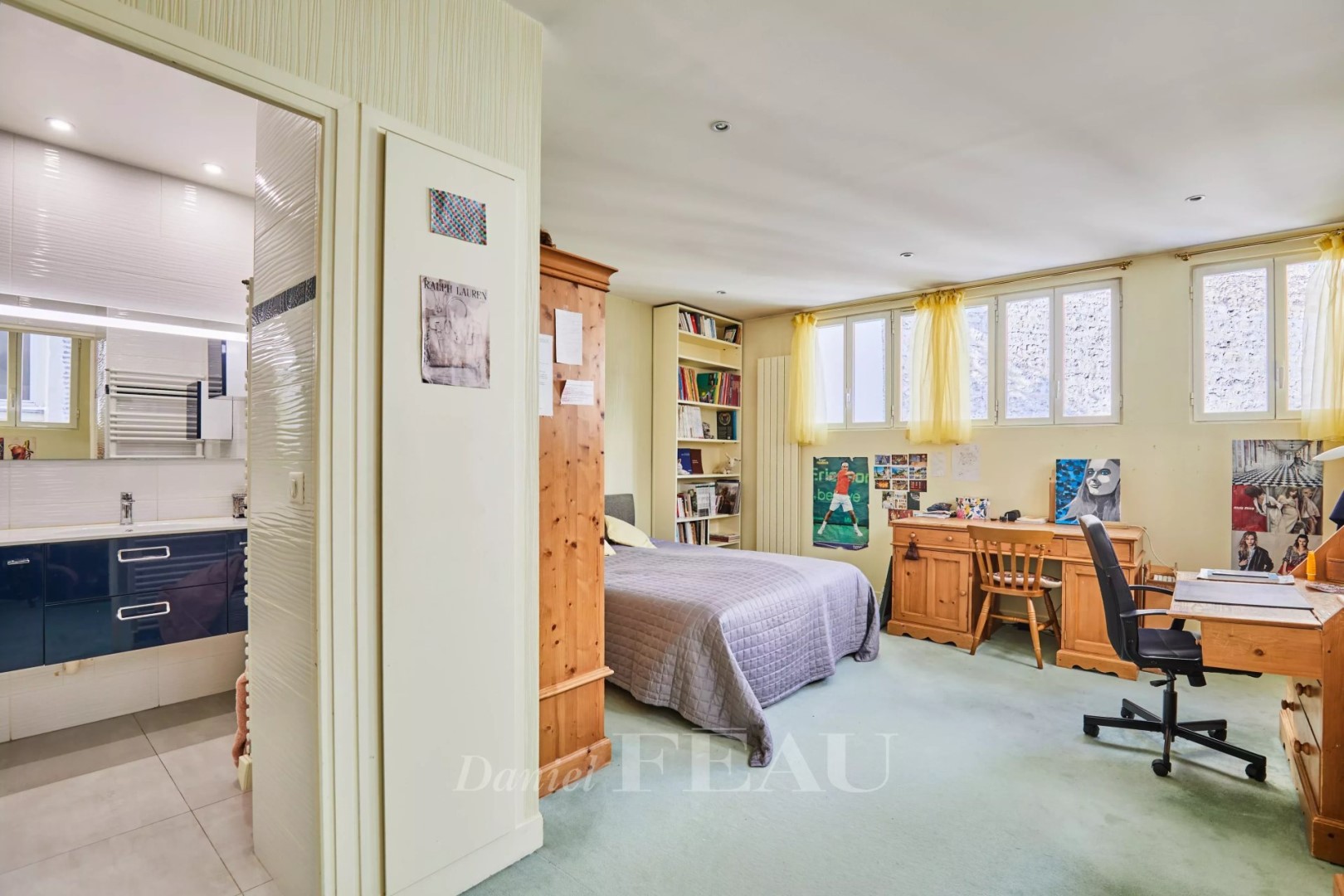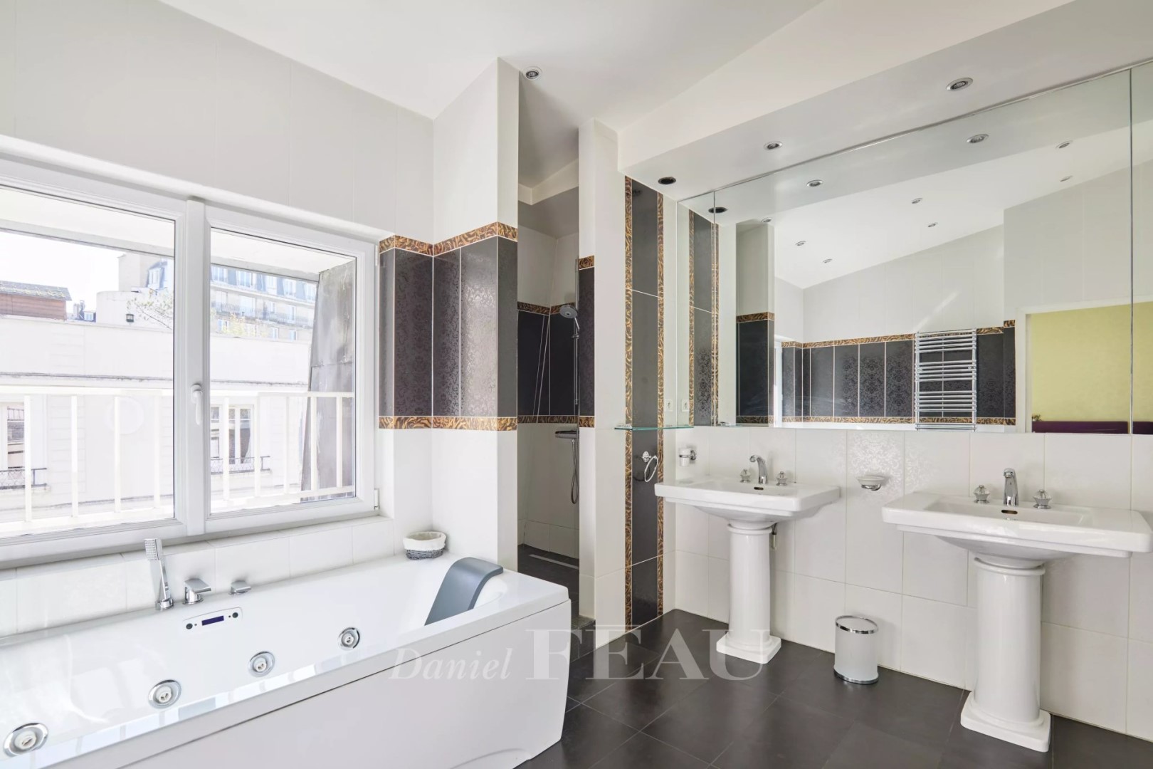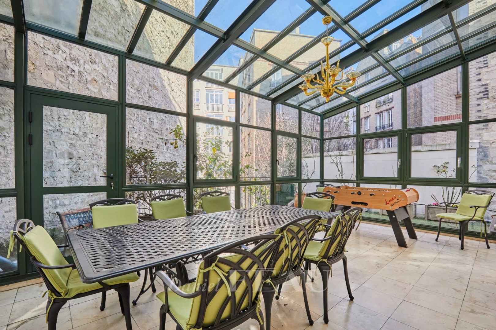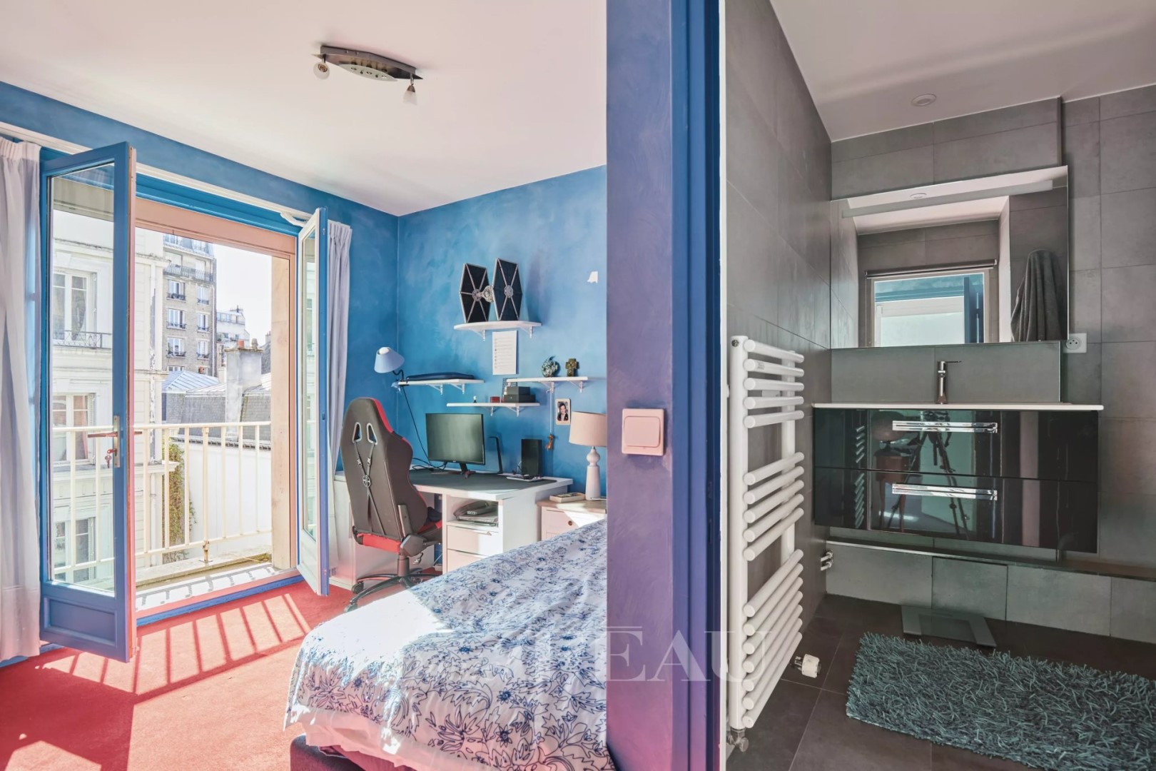Sole agency. Close to the village of Auteuil, 300 sqm town house on 4 levels with interior elevator, basement, terrace and garage. First floor: entrance hall with access to elevator and garage with electric hook-up. On the 1st floor: a games room, a spare bedroom or office with its own water point and laundry room. 2nd floor: double reception room with fireplace and balcony, fitted and equipped kitchen, large dining room, 26 sqm conservatory opening onto a 25 sqm terrace. 3rd floor: three bedrooms, all with en suite bathrooms or shower rooms. On the 4th and top floor, a master suite with study area and full bathroom (whirlpool bath, shower, toilet). A large basement with wine cellar, equipment room and numerous storage rooms. This family home offers spacious accommodation. South-facing. Jean-Baptiste Say district. Possibility of purchasing a garage in a neighboring street for 70 000 €