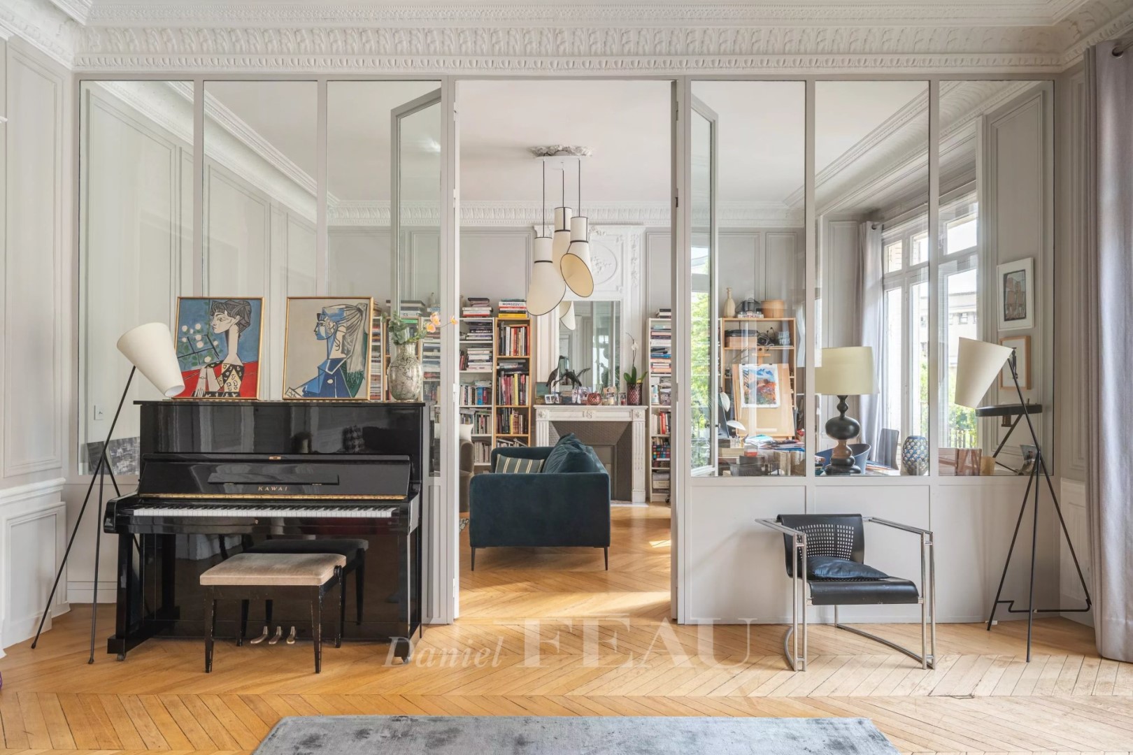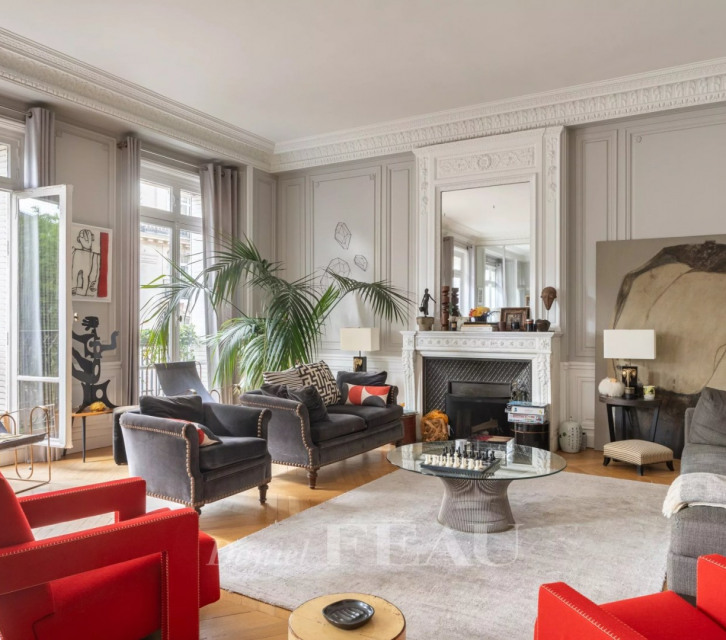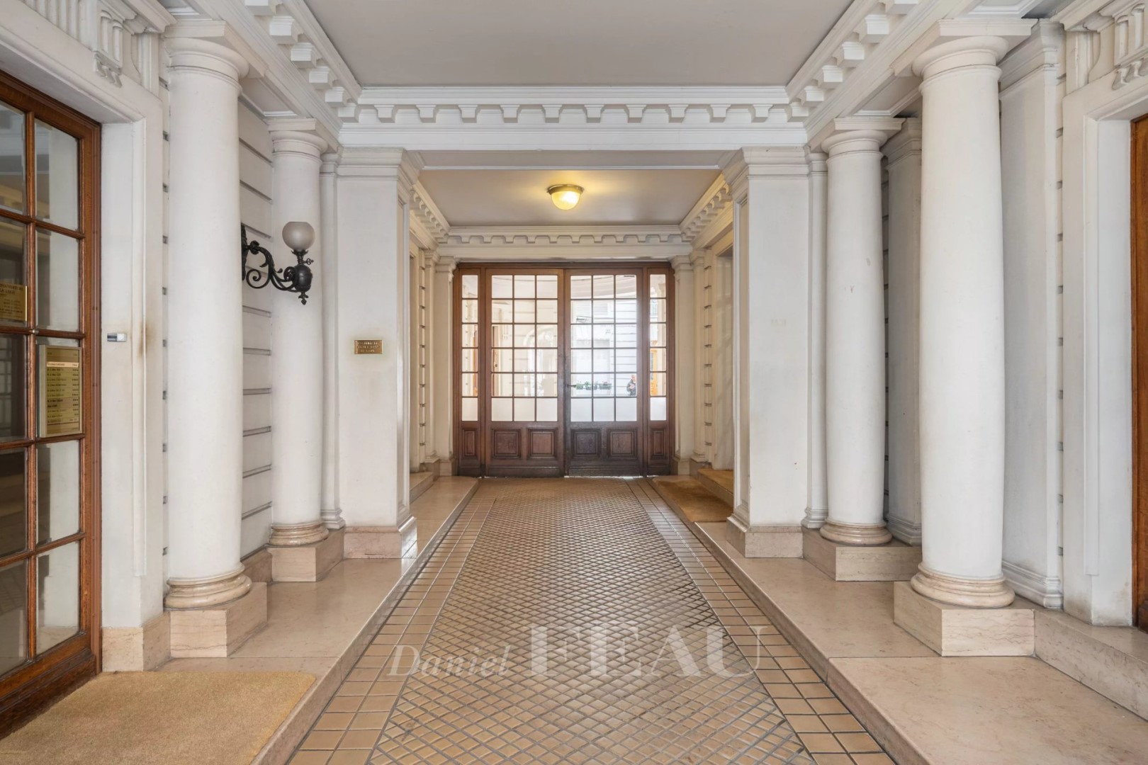 Passy/Trocadero neighbourhood. This near 236 sqm apartment is on the 3rd floor of a fine early 20th century building with a caretaker and elegant common areas. Boasting preserved period features, it includes an entrance hall, a spacious double living/reception room, a drawing room/study, a dining room, an equipped kitchen, a master bedroom with a bathroom and dressing rooms, three further bedrooms each with a shower room, and a utility room. With two cellars. A lock-up garage in a neighbouring building may be acquired for a further 60000€ agency fees inclusive. In a convenient location near the schools, rue de Passy and the shops. Janson de Sailly catchment area.