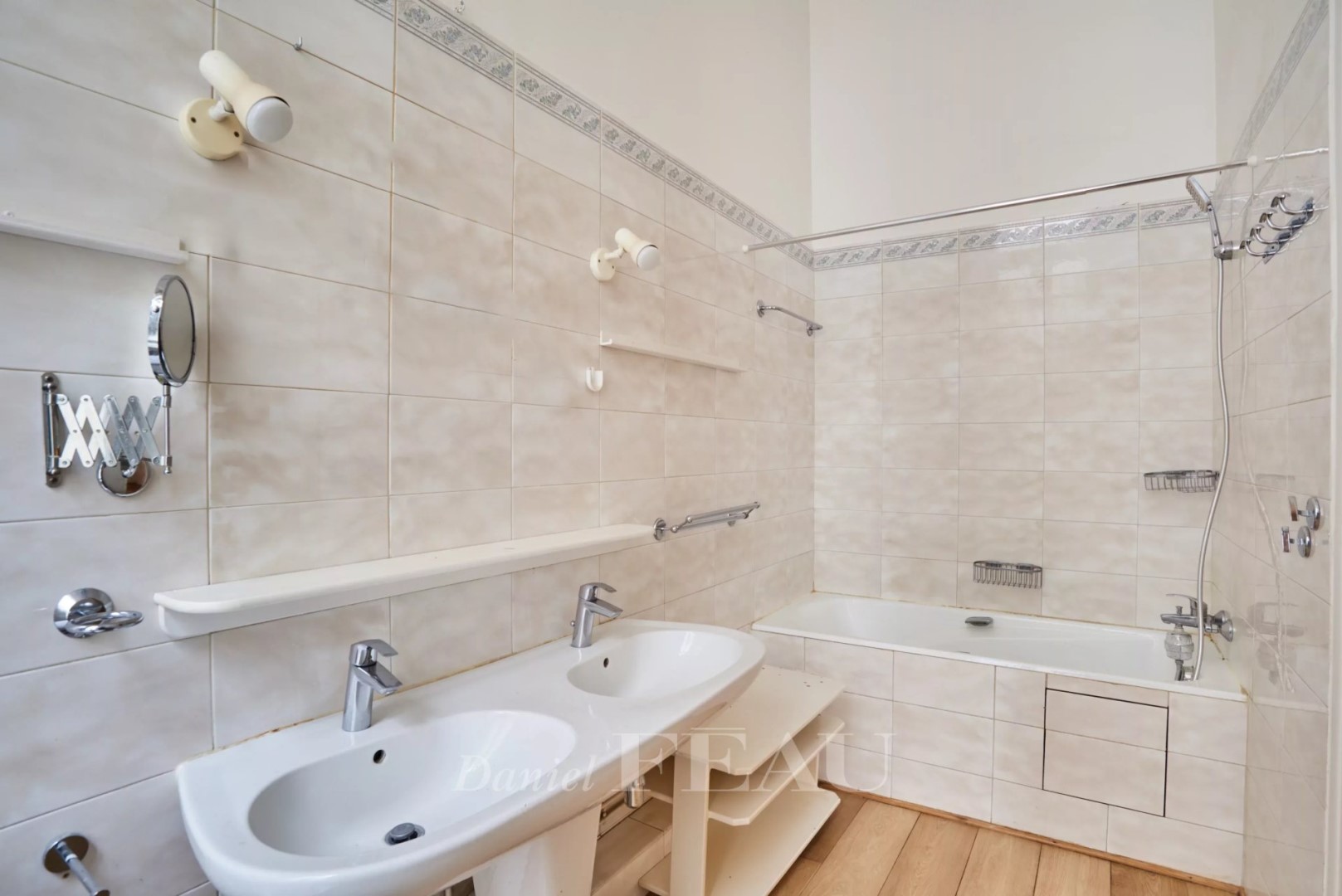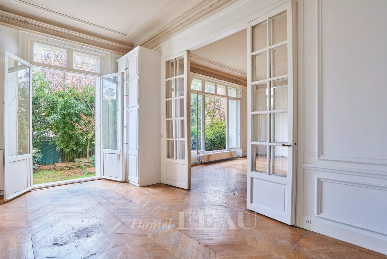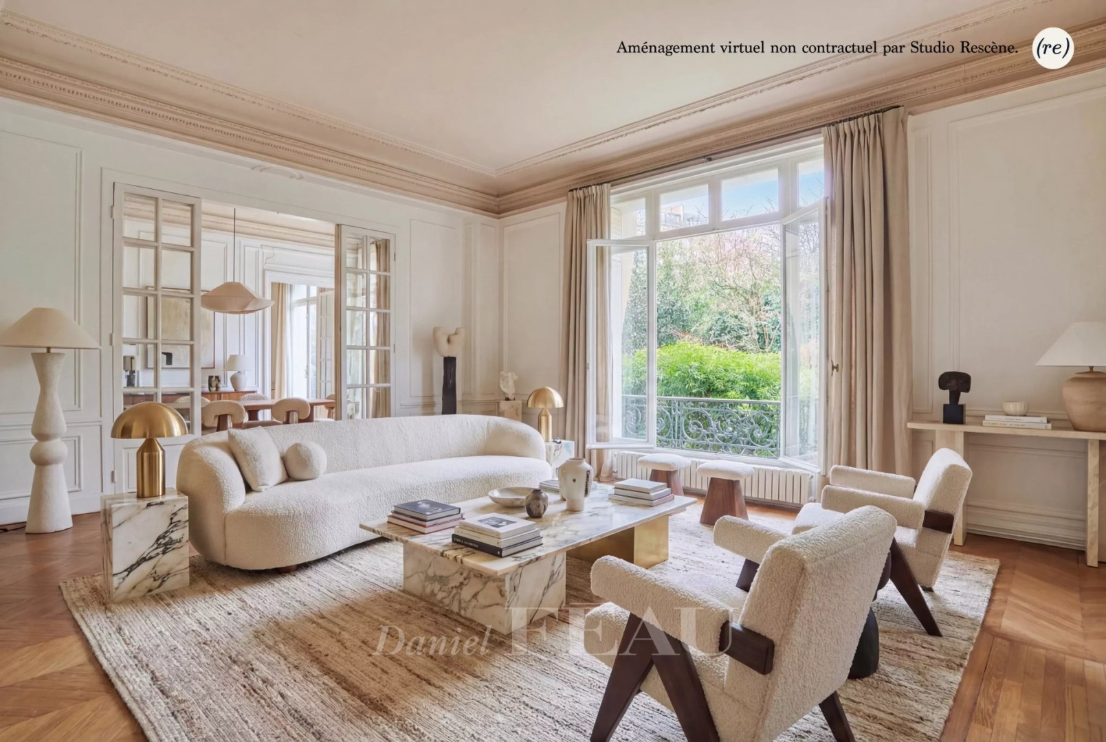 On Avenue Henri Martin, in a prestigious building with luxurious common areas, this ground-floor apartment boasts exceptional proportions and comprises an entrance gallery, a vast double living room with a high ceiling of approximately 4 meters, opening onto a garden of approximately 180 square meters, a dining room, a large kitchen, three bedrooms, and two bathrooms. A 10.45-square-meter maid's room and a cellar complete this exceptional property.