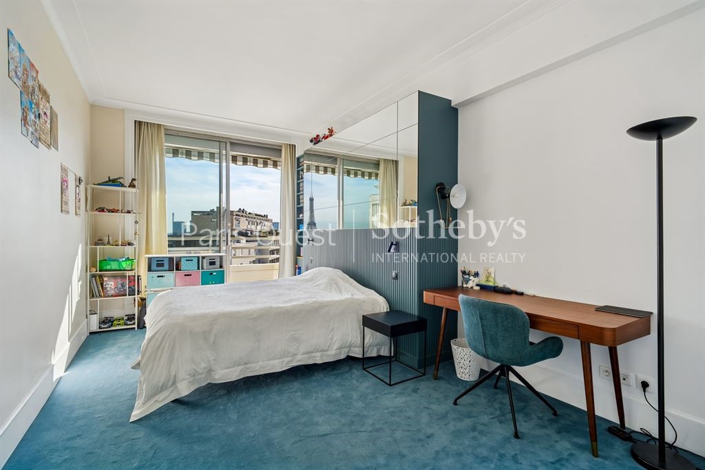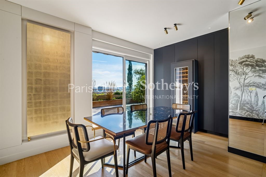 In a quiet environment, with an open view and south-east-west exposure this apartment149 m² (about 1602 ft²), built in 1957, in a building of 10 floors contains 6 rooms including 3 bedrooms, 1 bathroom and 3 toilets. It is equipped with a living room 34.45 m² (about 370 ft²), with dining room, with a Kitchen/dining room, with a balcony, with a terrace and with a cellar. It's located on the 9th floor. Heating : Collective gaz radiator. Others : intercom, digicode, guard, parquet floor, fireplace.