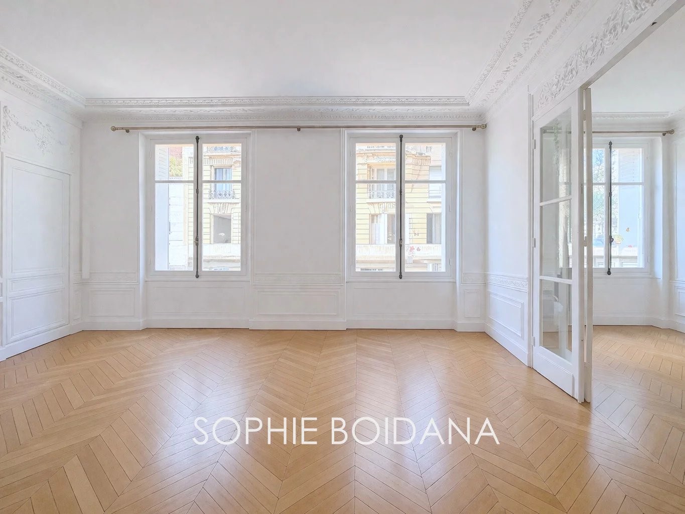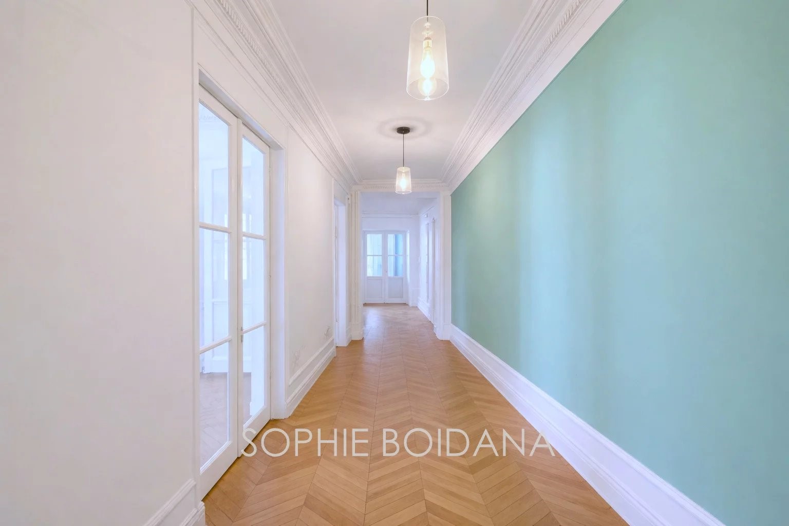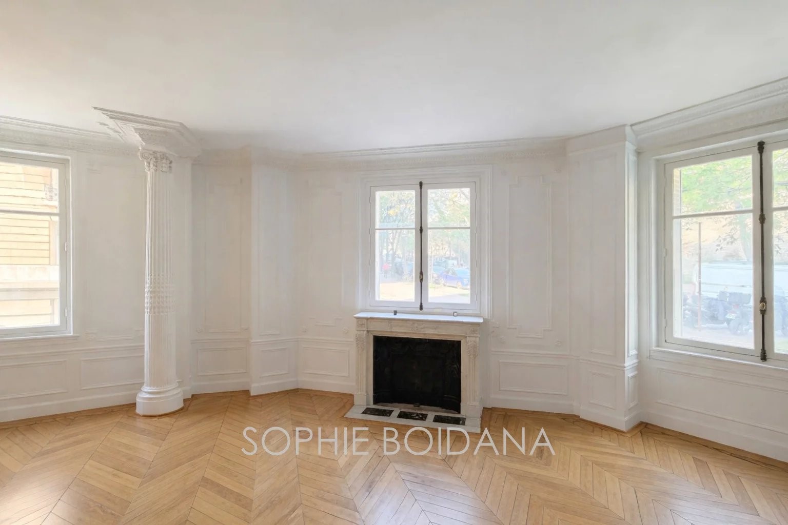 Paris 16th - Passy Trocadéro - 192 sq m + 32 sq m - In a beautiful, recently renovated, high-end building, this 192 sq m ground-floor apartment boasts a rare advantage: a large portion of the property benefits from the light and views of a second-floor apartment. It comprises an entrance gallery, a double living room in a corner facing southwest, a dining room, a separate kitchen, four large bedrooms, two bathrooms, a shower room, and three toilets. It retains its original charm with 3.16 m high ceilings, parquet flooring, moldings, and fireplaces. An internal staircase leads to a finished basement of 24 sq m, including a 17 sq m room with windows. A double cellar is also included. Suitable for professional offices.