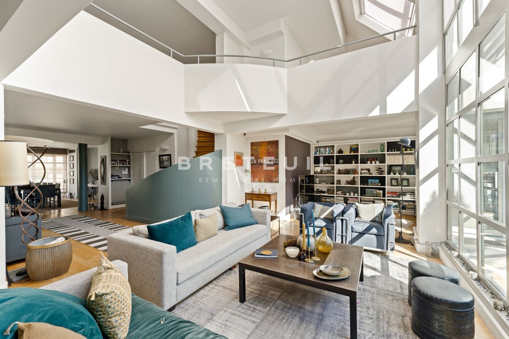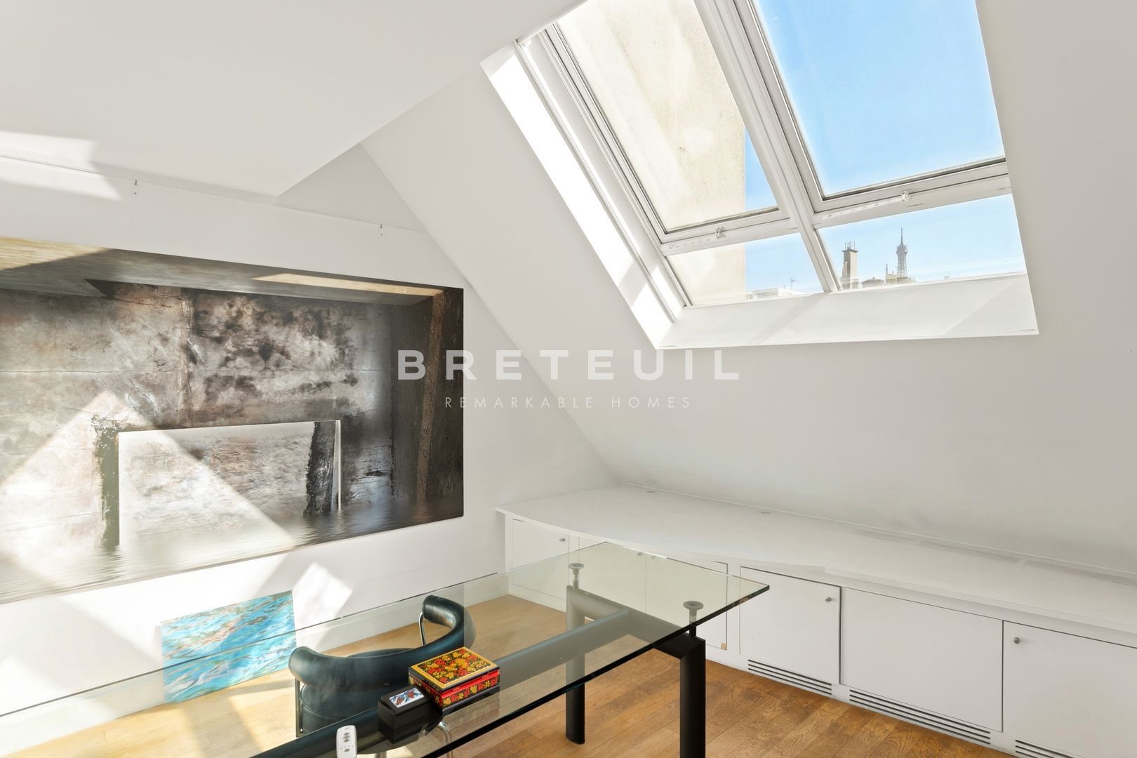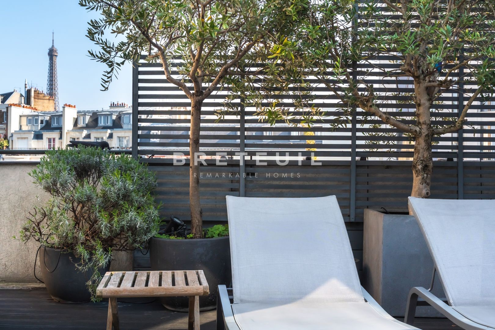 Ideally located in La Muette, in the immediate vicinity of renowned schools, shops and transport, superb 284 m² triplex 'like a house', on the top floors of a luxury building built in 1991 and benefiting from several outdoor areas. <br>On the 5th floor, a vast cathedral living room with 6 m high ceilings and glass roofs providing exceptional luminosity, opening onto a pleasant 25 m² terrace, dining room, fitted and equipped kitchen, access to a large balcony, laundry room, guest toilet. <br>On the 6th floor, first bedroom with its own shower room and toilet, second large bedroom that can easily be divided into two separate bedrooms, shower room with toilet, mezzanine office that can be used as a 5th bedroom, large dressing room and 10 m² terrace. <br>On the 7th floor, spacious master suite with large bathroom including bath, shower and toilet, extended by a magnificent 49 m² terrace overlooking the Eiffel Tower, sauna. <br>Two parking spaces in the building and two large cellars complete this property. <br>Exclusive to Breteuil.