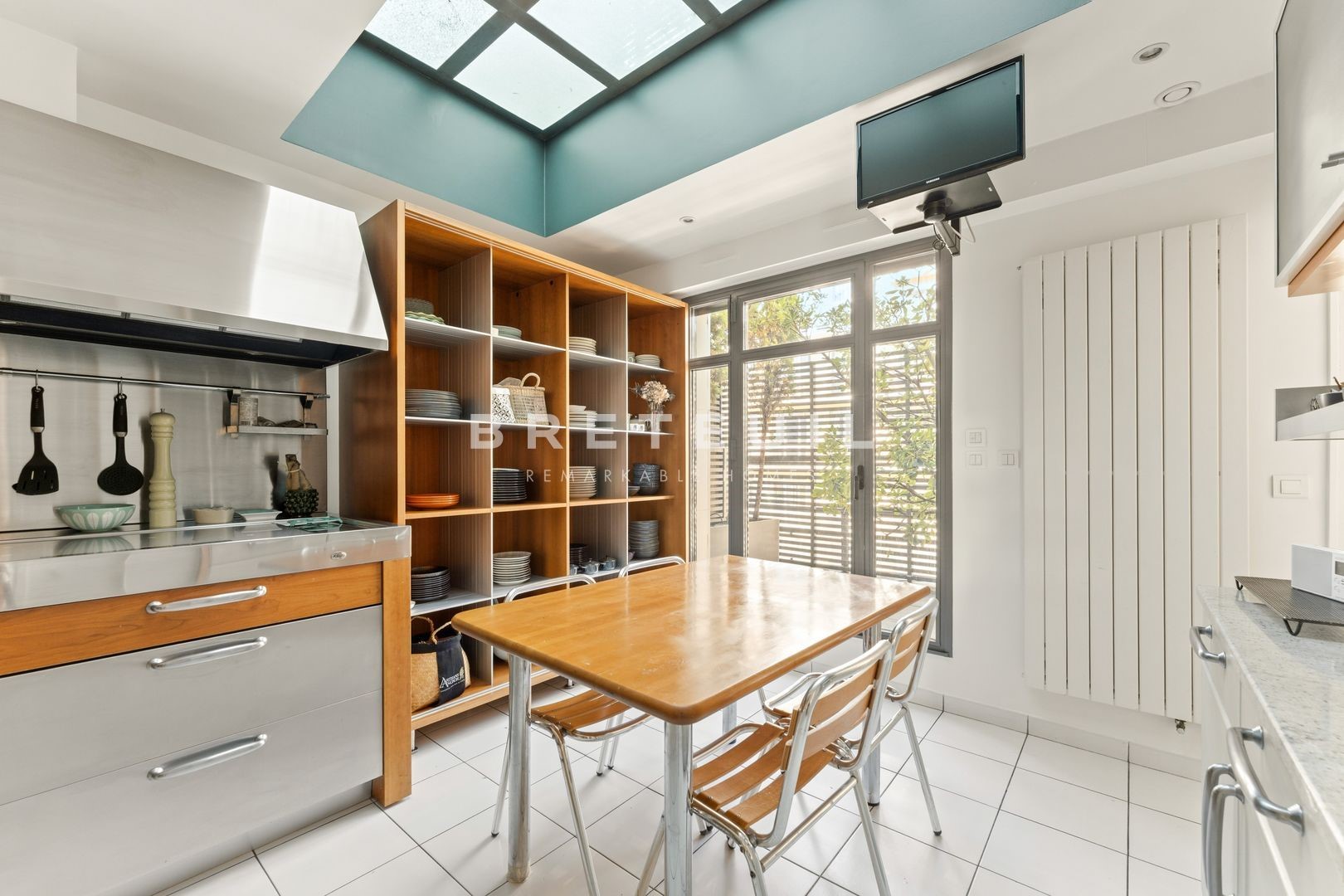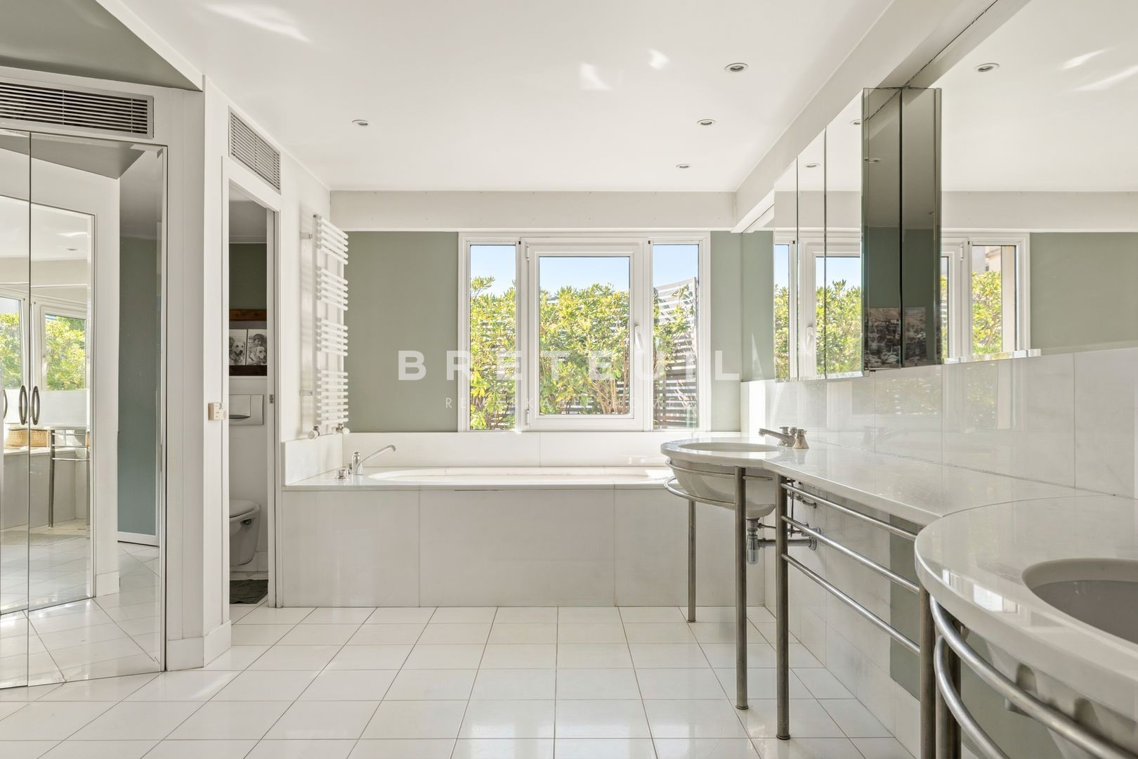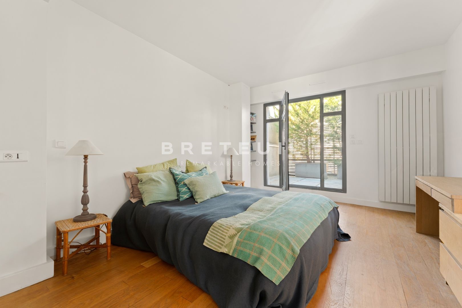 Ideally located in La Muette, in the immediate vicinity of renowned schools, shops and transport, superb 284 m² triplex 'like a house', on the top floors of a luxury building built in 1991 and benefiting from several outdoor areas. <br>On the 5th floor, a vast cathedral living room with 6 m high ceilings and glass roofs providing exceptional luminosity, opening onto a pleasant 25 m² terrace, dining room, fitted and equipped kitchen, access to a large balcony, laundry room, guest toilet. <br>On the 6th floor, first bedroom with its own shower room and toilet, second large bedroom that can easily be divided into two separate bedrooms, shower room with toilet, mezzanine office that can be used as a 5th bedroom, large dressing room and 10 m² terrace. <br>On the 7th floor, spacious master suite with large bathroom including bath, shower and toilet, extended by a magnificent 49 m² terrace overlooking the Eiffel Tower, sauna. <br>Two parking spaces in the building and two large cellars complete this property. <br>Exclusive to Breteuil.
