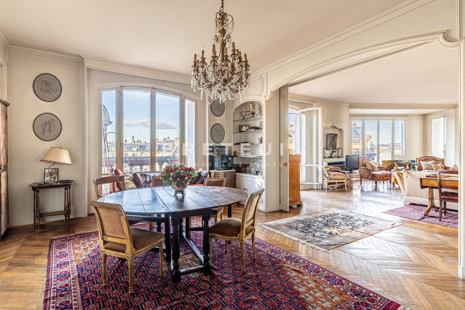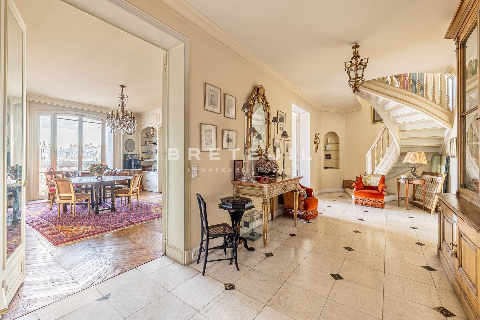 MUETTE - OECD. Ideally located close to the shops of rue de la Pompe, renowned schools and transport links, on the top two floors of a luxury Haussmann building with janitor, exceptional 296 m² duplex family and reception apartment, boasting bright, spacious and peaceful surroundings. Sixth floor: entrance gallery, vast double living room with unobstructed views, separate kitchen, three bedrooms including two en suite with shower room and bathroom, dressing room, three toilets. On the seventh floor, via an internal staircase, large, light-filled artist's studio-style living room with large windows and 6m high ceilings, kitchen and two bedrooms, one of which is on a mezzanine, small roof terrace, shower room, toilet. Large cellar. Needs work. Exclusive to Breteuil.