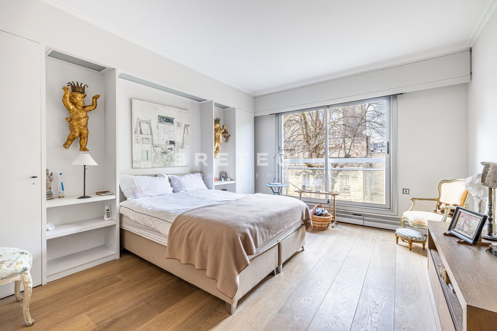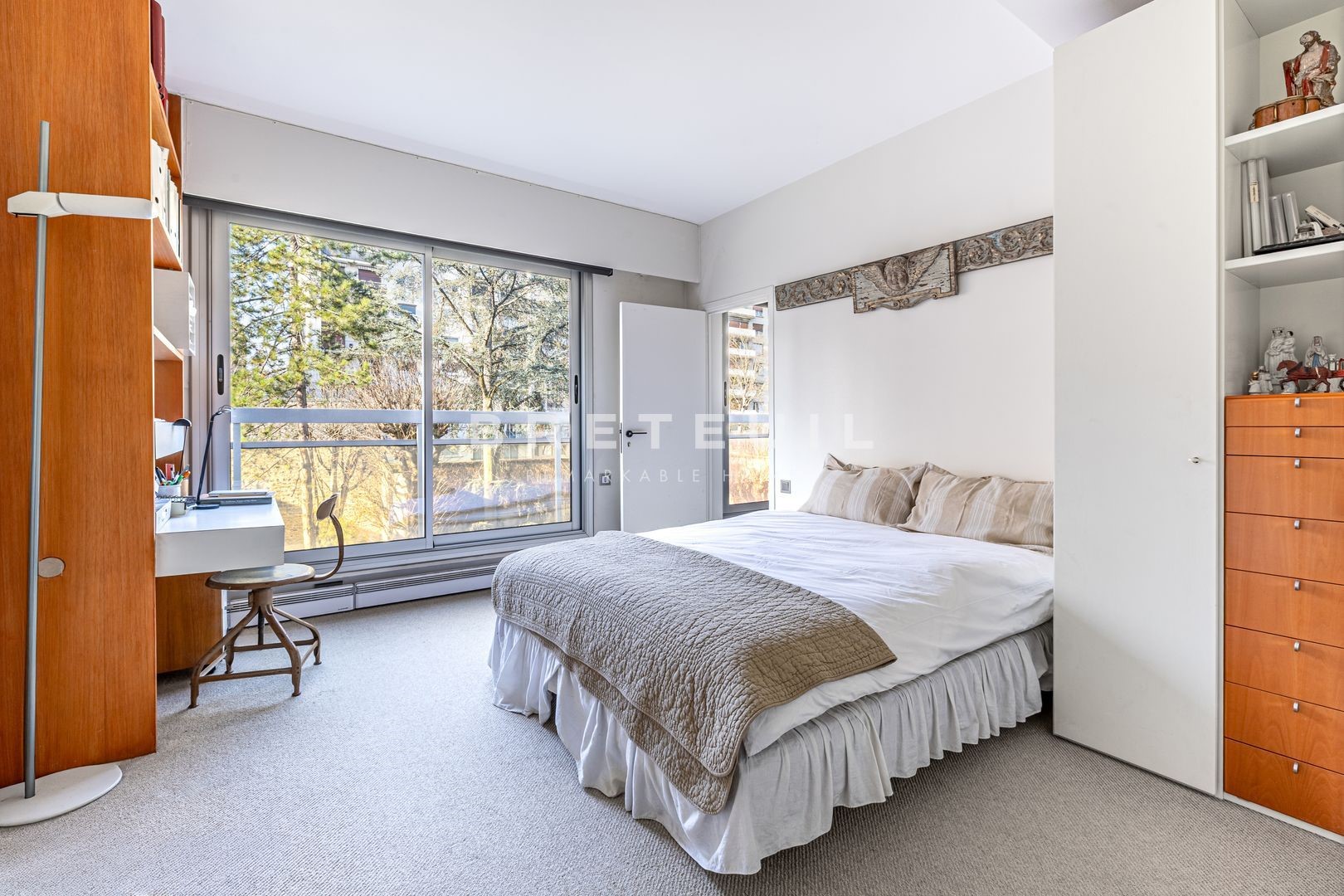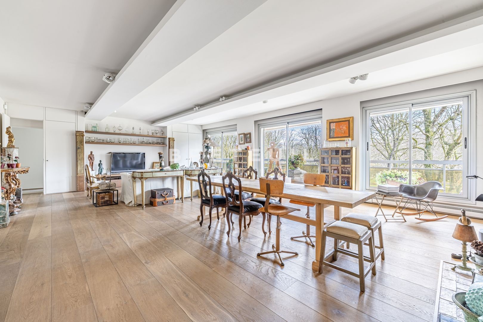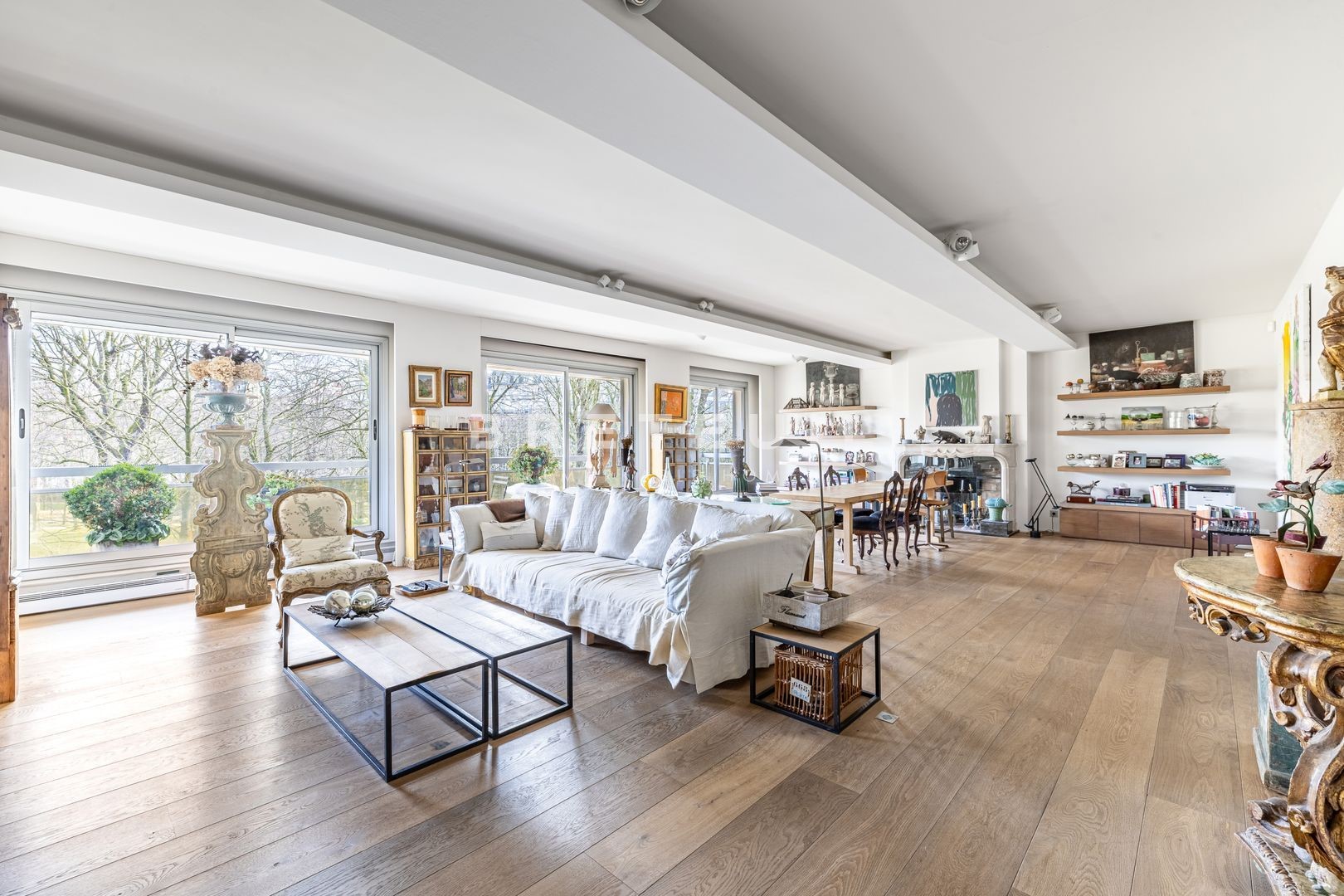A prime address in the immediate vicinity of numerous shops, transport facilities, renowned schools and green spaces (Ranelagh gardens). On the third floor, served by an elevator, of an attractive, well-maintained, semi-recent luxury building, this beautiful, perfectly-planned, through-plan family apartment benefits from plenty of light and pleasant, unobstructed views over the gardens. Entrance gallery, large sunny reception room opening onto a large 14m² balcony, dining room, large fitted kitchen, four good-sized bedrooms (including a 14m² maid's room which has been joined to the apartment and benefits from its own shower room with toilet and independent access), two bathrooms with toilet, guest toilet, laundry room, dressing room, plenty of storage space. Cellar. Possibility of acquiring two additional parking spaces in the building (one single space and one double in a row).