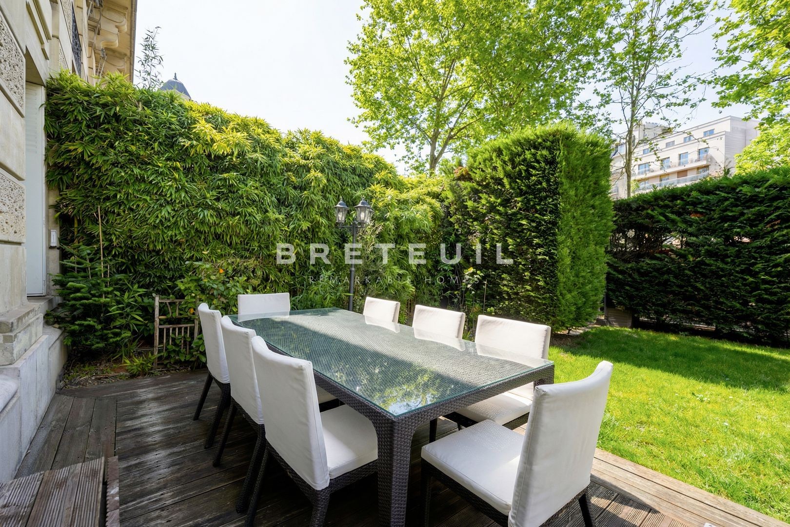 Henri Martin - Flandrin. Ideally located close to transport, schools and shops. On the garden level of a magnificent old stone building of high standing, superb, bright family apartment with a weighted surface area of 180m² (134m² loi Carrez with a 7m² heated veranda and a 123m² garden weighted at one third), generously proportioned and tastefully renovated. Entrance hall, vast living room with pleasant veranda opening onto the wooded garden, bathed in light thanks to its south-east orientation, open-plan fitted and equipped kitchen, three bedrooms including a master suite with en-suite shower room, bathroom with toilet, guest toilet, plenty of storage space. Cellar. Two additional parking spaces available in a neighboring building.