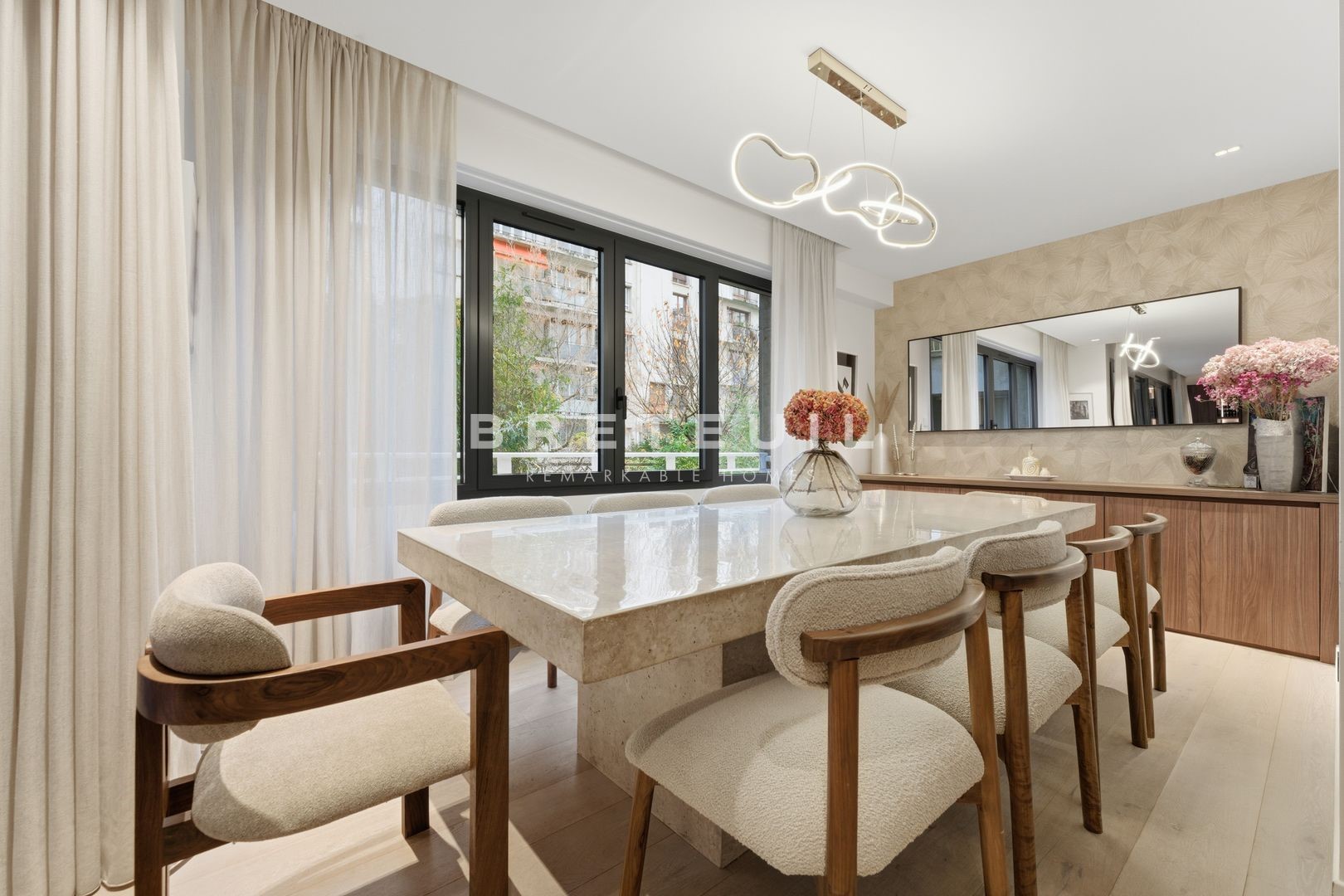 Flandrin-Victor Hugo. Ideally located close to shops and transport. On the 1st floor, served by elevator, of a semi-recent building of good standing, secure (janitor) and with well-kept common areas, superb family apartment of 188 m² entirely renovated with taste, benefiting from a perfect distribution as well as great luminosity thanks to its double exposure. Entrance hall, vast east-facing living room opening onto a quiet balcony with garden view, dining room, large open-plan fitted and equipped kitchen, four bedrooms including a master suite with shower room and dressing room, bathroom, shower room, three toilets, laundry room, plenty of storage space. Cellar and storage room.