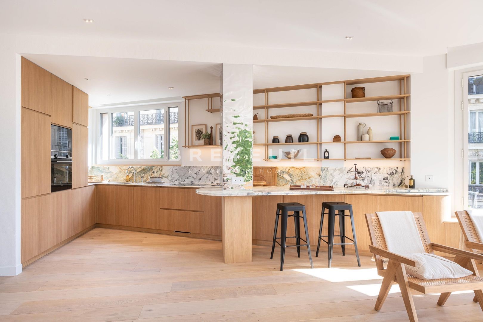 Foch. On the third floor, served by elevator, of a beautiful luxury building, superb apartment entirely renovated with taste and quality, offering an exemplary floor plan and lovely views. Entrance hall, vast rotunda living room, open kitchen, three suites with bathrooms, separate toilet. Cellar space. Possibility of acquiring a parking space in a neighboring building at an additional cost.