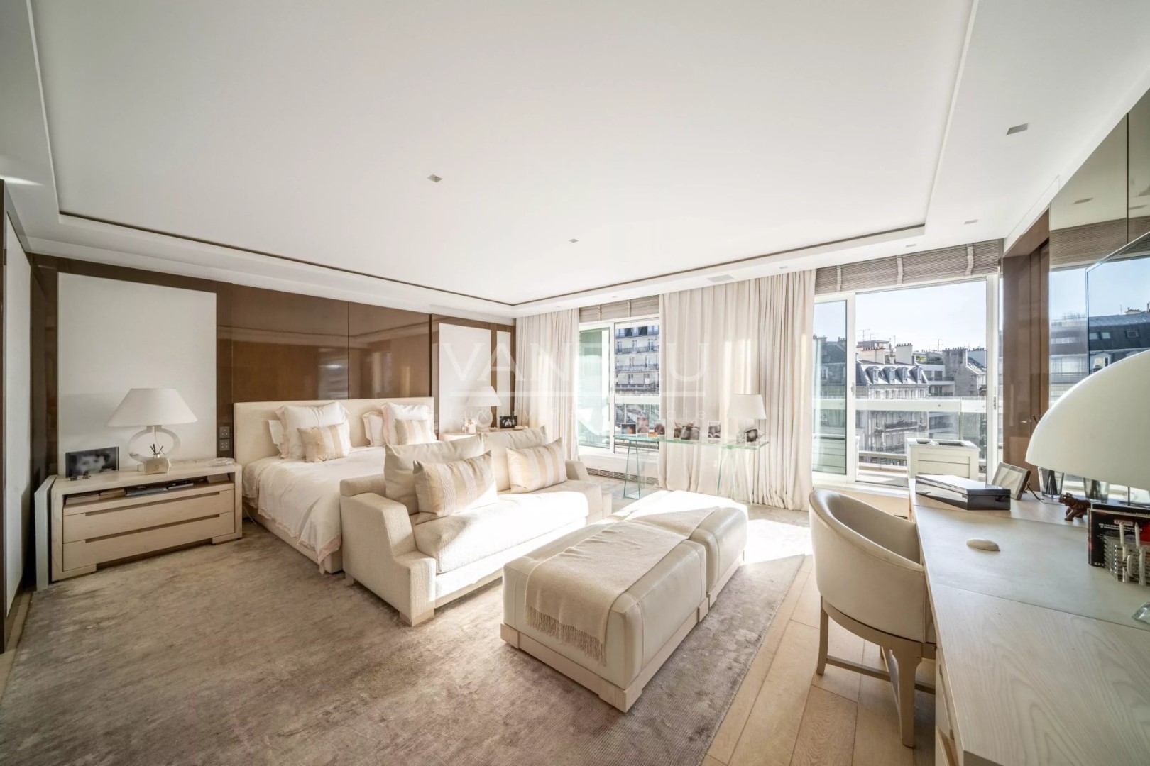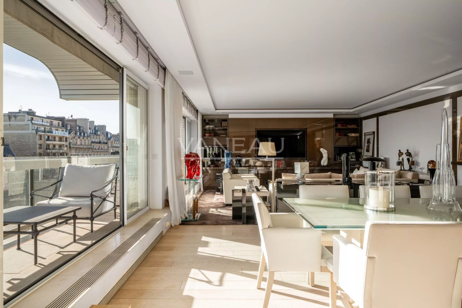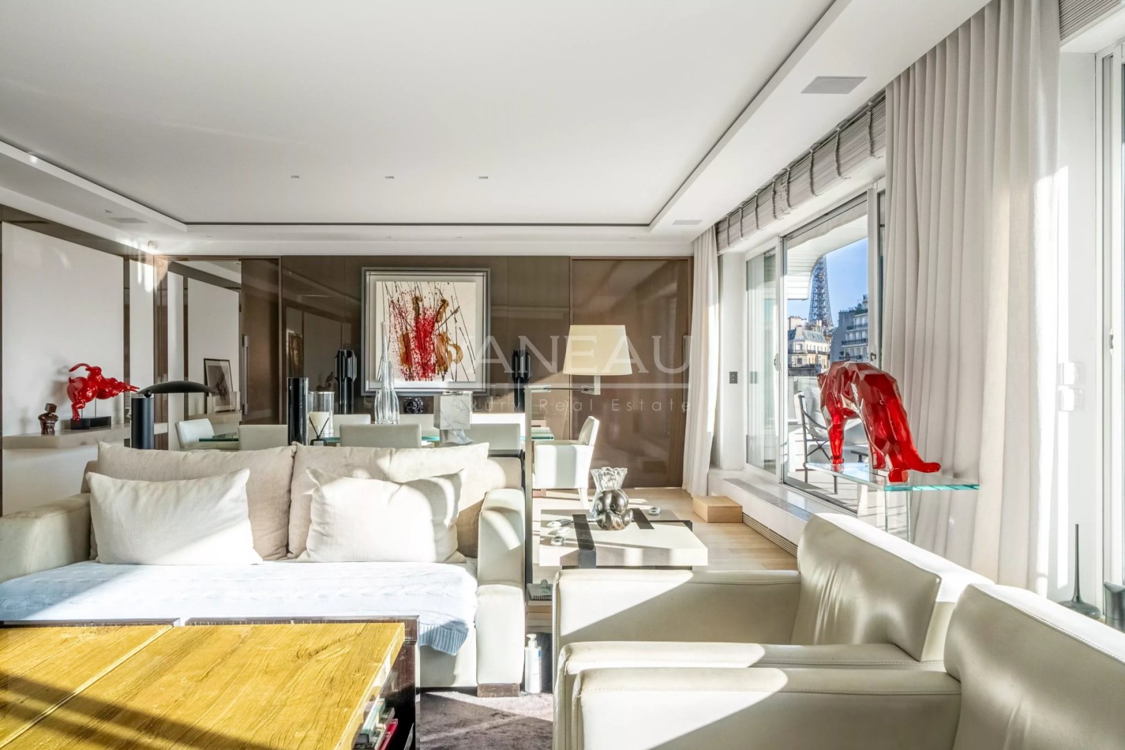 Located on a high floor on the prestigious Avenue Henri Martin, in a luxury semi-recent building with 24-hour security, this exceptional 182 sqm apartment occupies its own landing, ensuring absolute tranquility. Bathed in light thanks to its south-facing aspect, it offers superb volumes and fluid circulation. The elegant double reception room, with large bay windows and a south-facing balcony terrace for dining, benefits from optimal sunlight and a spectacular view of the Eiffel Tower. The spacious, perfectly laid-out eat-in kitchen is complemented by a laundry room. The night space features a magnificent master bedroom (two bedrooms previously) opening onto a balcony-terrace with a view of the Eiffel Tower and the 16th-century town hall. It features a dressing room, bathroom and toilet. A second suite, also extended by a balcony, benefits from its own bathroom and toilet, offering independence and ideal comfort. A large cellar and a parking space in the first basement, suitable for a large sedan, complete this rare property for sale. Top-of-the-range features include an integrated sound system, air conditioning and underfloor heating in the bathrooms. Exceptional address, high floor, security, luxurious amenities and emblematic views make this apartment an outstanding property on the Paris market.