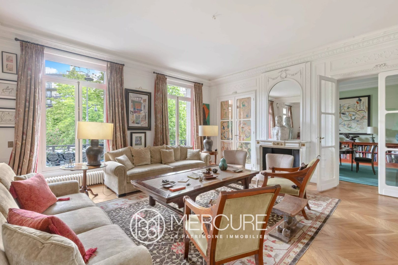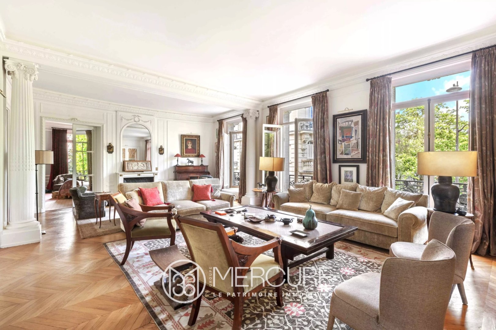 FOR SALE PARIS 16th TROCADERO - GEORGES MANDEL, this very pleasant and elegant 4 bedroom apartment benefits from unobstructed and leafy views, very spacious volumes, and excellent layout, all within a first-class building perfectly maintained. In all 293 sqm, Bright first floor with a ceiling of 3.45 m high, large entrance gallery, 57 sqm living room, 30 sqm dining room with adjoining pantry and large kitchen, beautiful 30sqm master bedroom in a rotunda shape, with bathroom and shower room, 3 further large bedrooms with a shower room and a bathroom (each with toilets), large laundry room and separate toilet. In addition, two large cellars. Building with remarkable common areas, caretaker, keypad, video intercom. Metro station, buses, schools, and shops nearby. Price excluding agency fees 3,807,692 € - fees 4% including VAT payable by the buyer; Property subject to co-ownership status, comprising 43 lots including 7 main lots, no ongoing proceedings, annual share of charges: €11,590 Estimated annual energy costs between €5,490 and €7,500 - the georisks that may be subject to this property can be consulted at www.georisques.gouv.fr