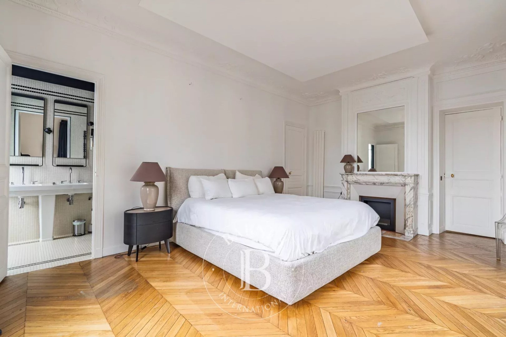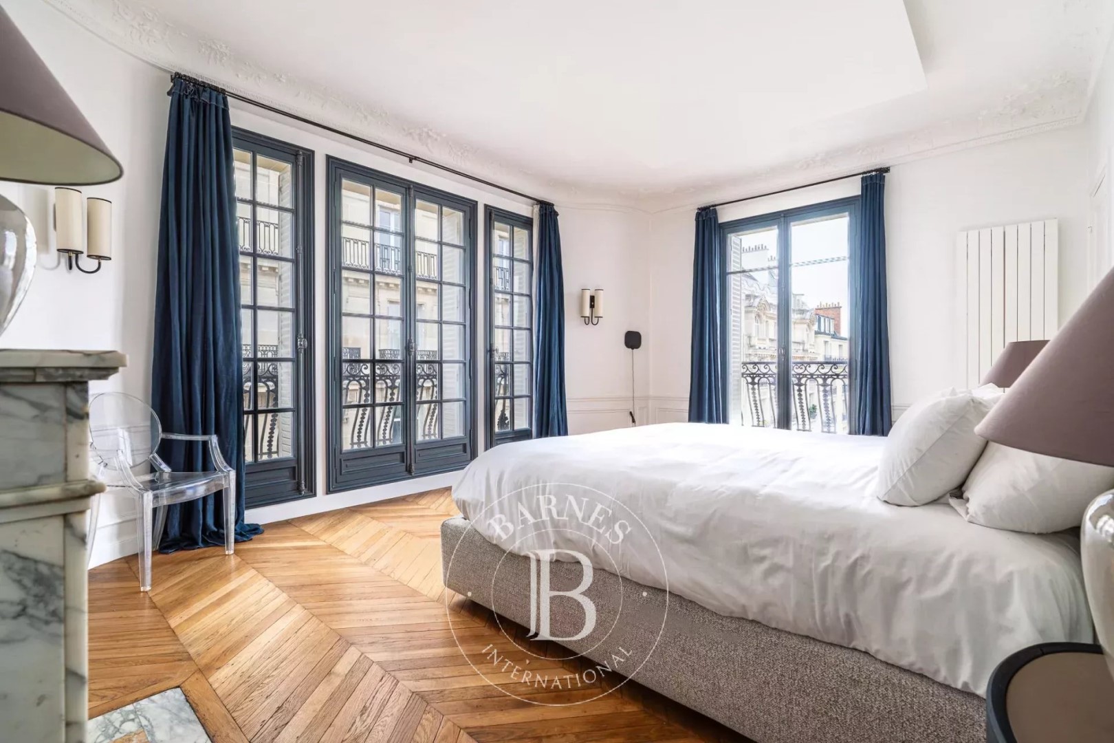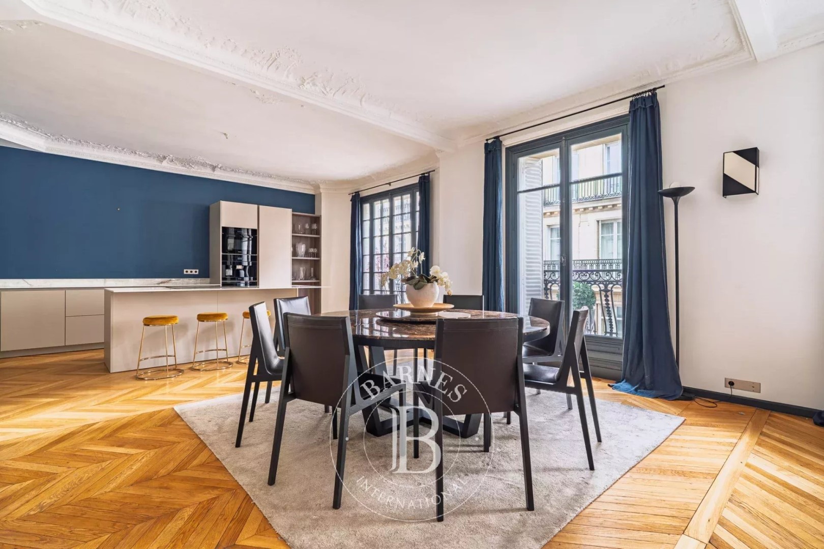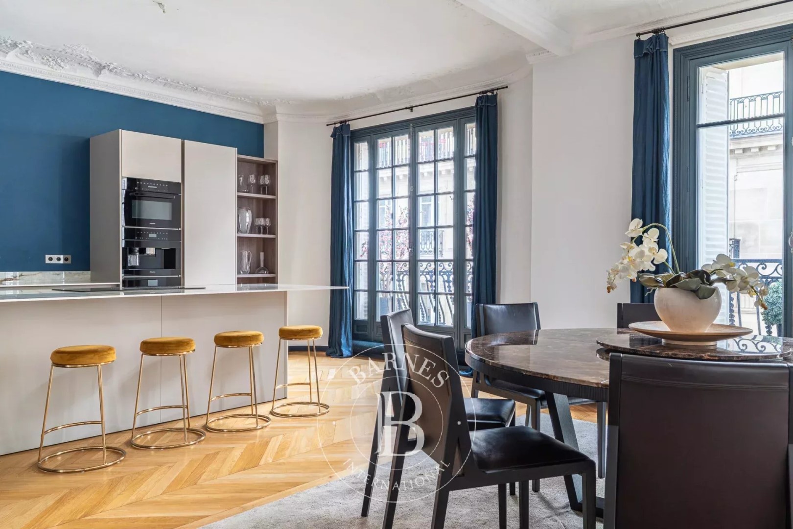 Located on the 4th floor of a corner building dating from 1900, this apartment offers 183.55 sqm of living space. Quiet and very bright (south and west facing), it proposes spacious rooms and a high-end renovation that has preserved its original charm (parquet flooring/moldings/fireplaces). The layout is perfectly arranged: a beautiful entrance gallery leads to a triple reception room comprising an open-plan kitchen, living room, and dining room and an office. It leads then to the night space including a master suite with dressing room, shower room, and toilet; two further bedrooms with storage; a bathroom/shower room; a laundry room; and a guest toilet. Close to shops and schools. Janson de Sailly school district. Two cellars and a parking complete the property. Property subject to co-ownership regulations. Fees payable by the buyer amount to €100,000 including VAT (3.5%), resulting in a net price to the seller of €2,790,000.