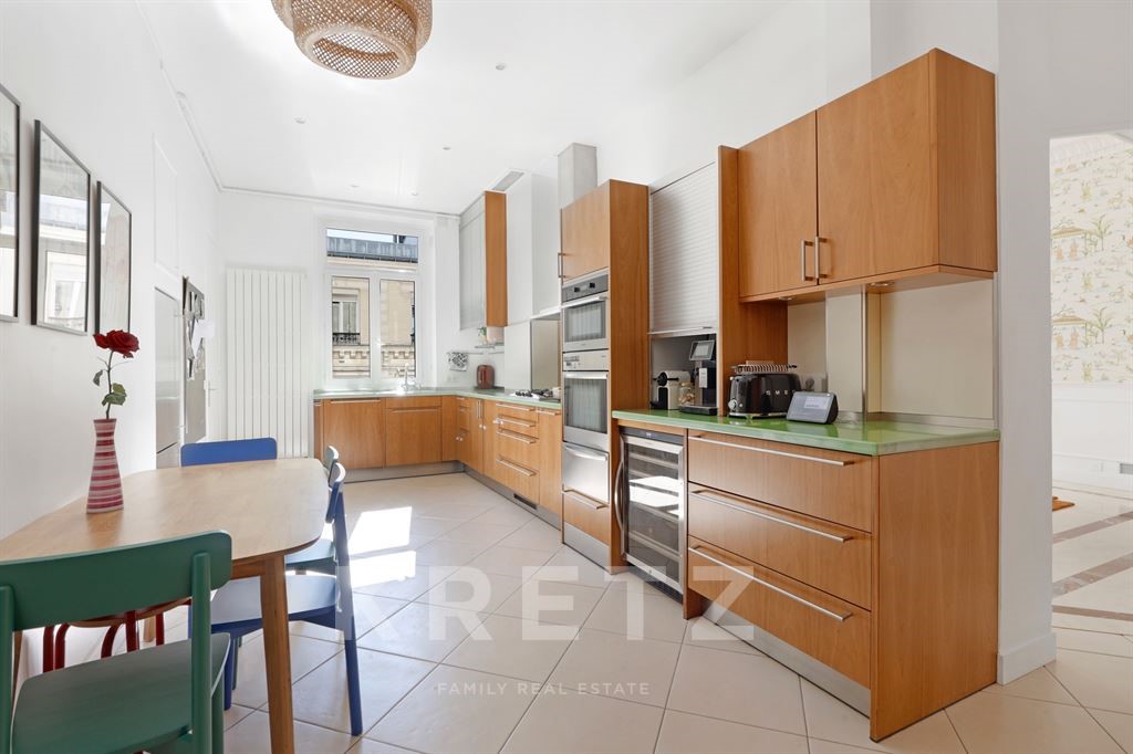 With north-west exposure this apartment287 m² (about 3085 ft²), built in 1910 has 6 rooms including 4 bedrooms and 2 bathrooms. It has a living room, dining room, a Separate kitchen and a cellar. It's located on the 3rd floor with a lift. Heating : Individual.