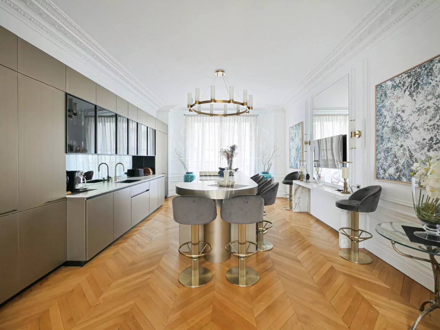 In a quiet environment, with an open view and south exposure this apartment286 m² (about 3074 ft²), built in 1909 comprises 7 rooms including 4 bedrooms and 4 toilets. It is provided with a living room, with a None and with a cellar. Totally renovated, it's located on the 3rd floor with a lift. Heating : Collective radiator. Others : intercom, guard, fireplace, cable television. Fees : 4.255.