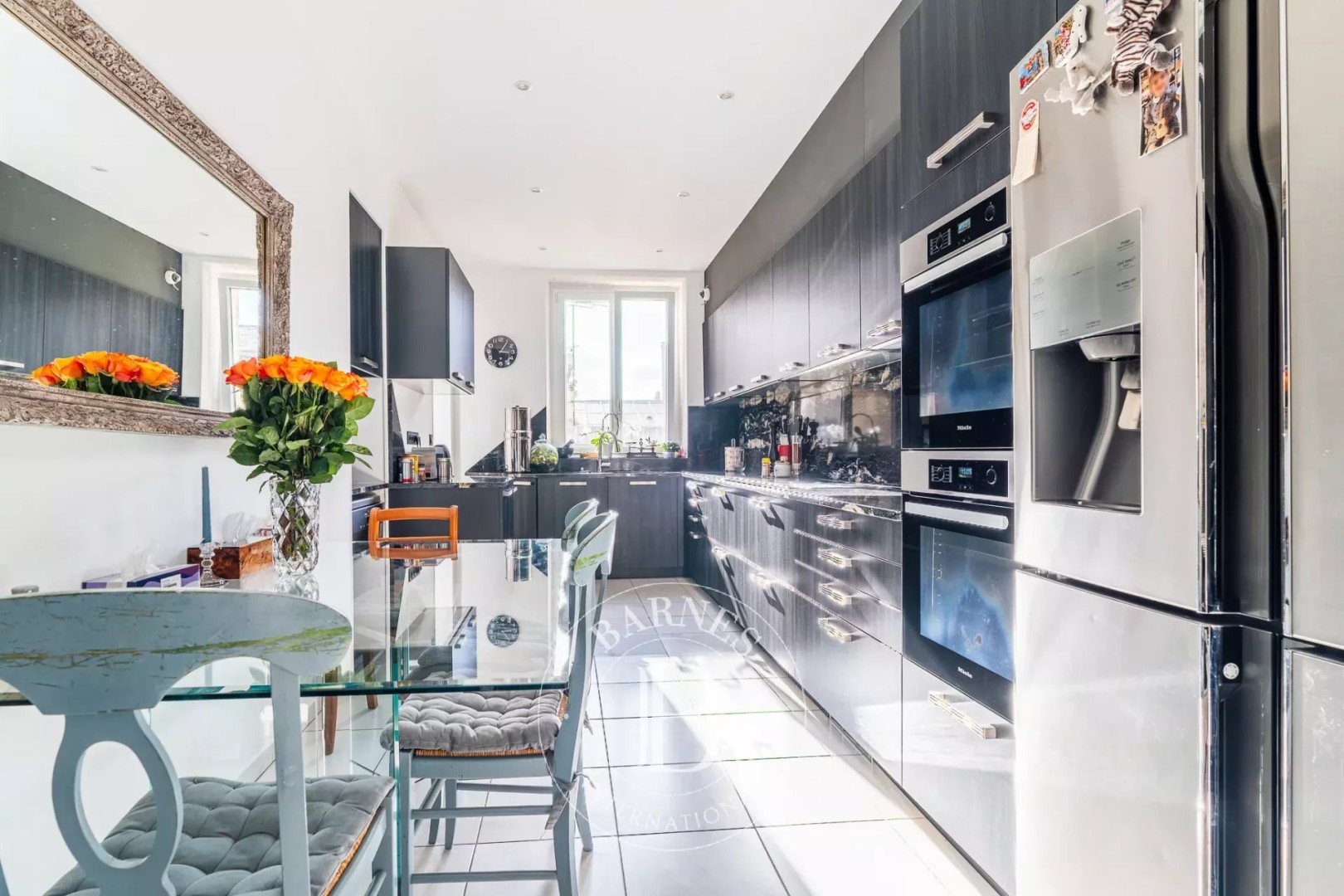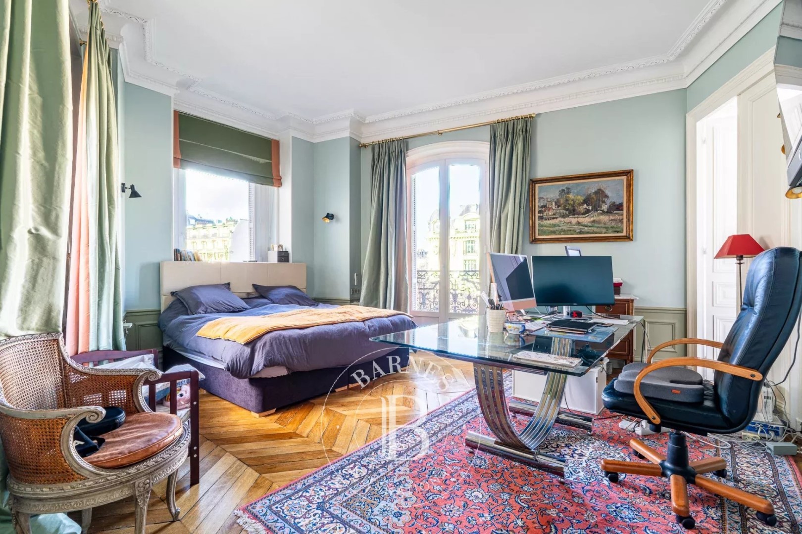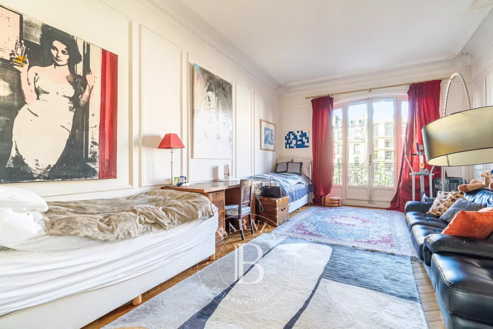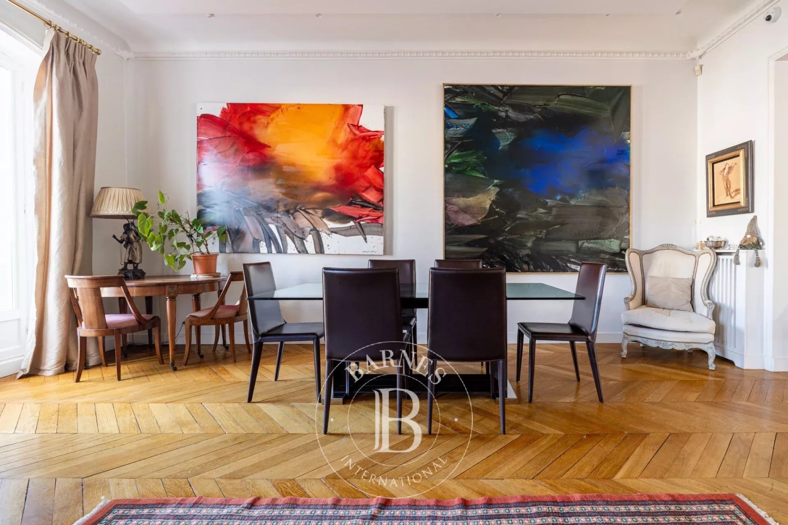 Paris 16?? – Located on the third floor of a beautiful 1880 period building on Avenue Avenue Georges Mandel, this refined property features a spacious entrance hall opening onto a large living room with fireplace, a fully furnished and equipped eat-in kitchen with laundry area, and a family room enhanced by a charming bow window. The apartment offers four bedrooms, including a master suite, two bathrooms, and one shower room. A cellar completes this high-quality property, boasting generous volumes and elegant period features. Property subject to condominium regulations.