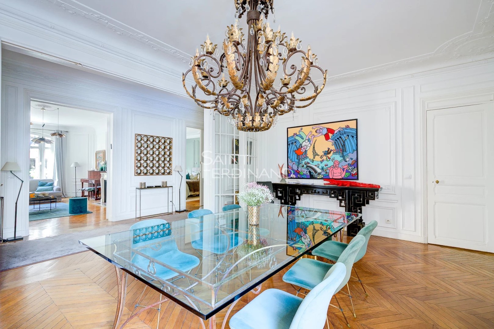 In the immediate vicinity of the Trocadéro, your Saint Ferdinand agency invites you to discover this superb family and reception apartment, located on the 3rd floor with elevator access in an elegant, secure, and gated building with a concierge. Upon entering, a spacious gallery leads to a bright, double living room facing southwest and an adjoining dining room, offering a spacious and pleasant living environment. The fully equipped eat-in kitchen is both practical and inviting. The property comprises four large bedrooms, including a master suite with its own bathroom, as well as two additional shower rooms, two toilets, and ample storage. In excellent condition, this rare apartment retains all its original charm, creating an elegant and welcoming atmosphere, ideal for a family wishing to live in the heart of one of Paris's most sought-after areas. A cellar and a storage room complete the property. Parking is available for rent nearby. DPE : E. Pas de procédure en cours. Estimation des coûts annuels d’énergie du logement entre 4720€ et 6440€. Les informations sur les risques auxquels ce bien est exposé sont disponibles sur le site Géorisques https://www.georisques.gouv.fr