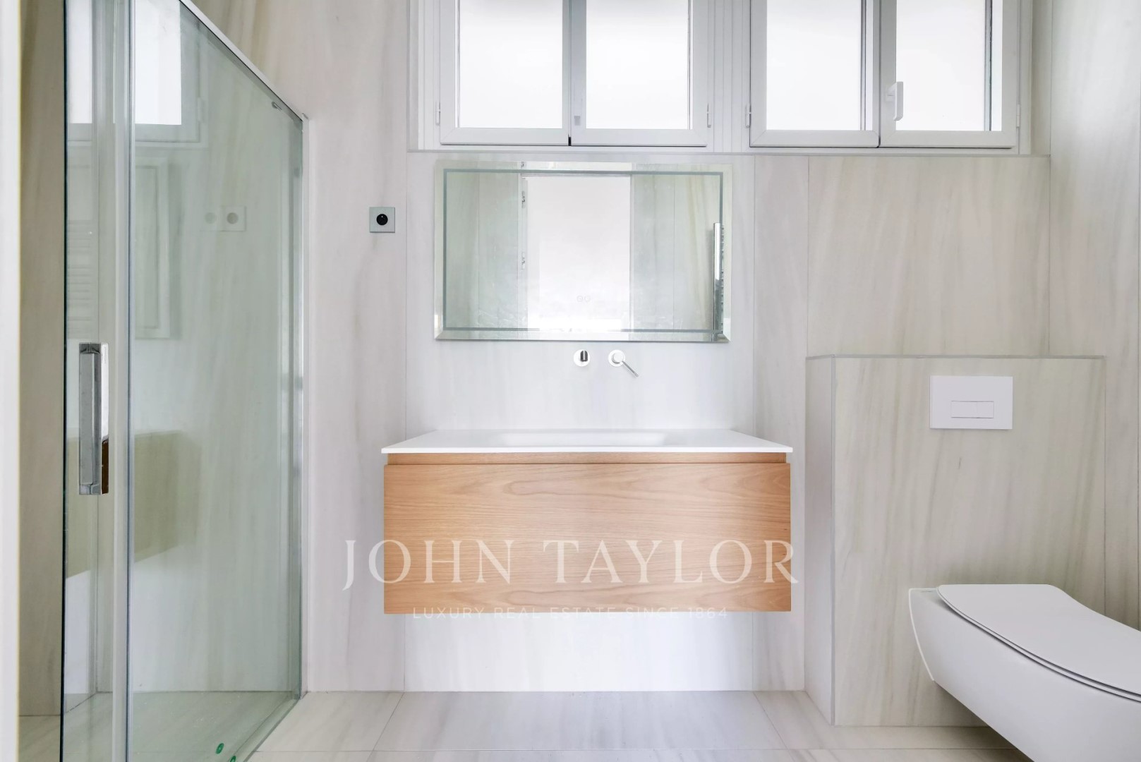 In an old building of very good standing with elevator and janitor, we propose to you on the 1st floor an apartment of 212,67m ² exposed South profiting from a beautiful height under ceiling. It comprises : Living/dining room Separate kitchen 3 bedrooms Master bedroom with office and bathroom Two shower rooms. Light and airy, this apartment offers unobstructed views with a balcony and high ceilings. Quietly located yet close to amenities, it is surrounded by greenery, bringing calm and freshness to everyday life. A cellar completes this property. Possibility of purchasing a parking space in the building.