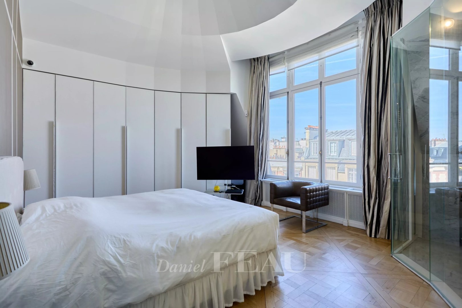 With an open view and west exposure this apartment232 m² (about 2494 ft²), built in 1900, in a building of 8 floors contains 7 rooms including 5 bedrooms, 1 bathroom and 1 toilet. It is equipped with a living room and with a None. It's located on the 7th floor with a lift. Heating : Collective gaz radiator. Others : intercom, digicode, guard, fireplace, cable television. This text is an automatic translation.
