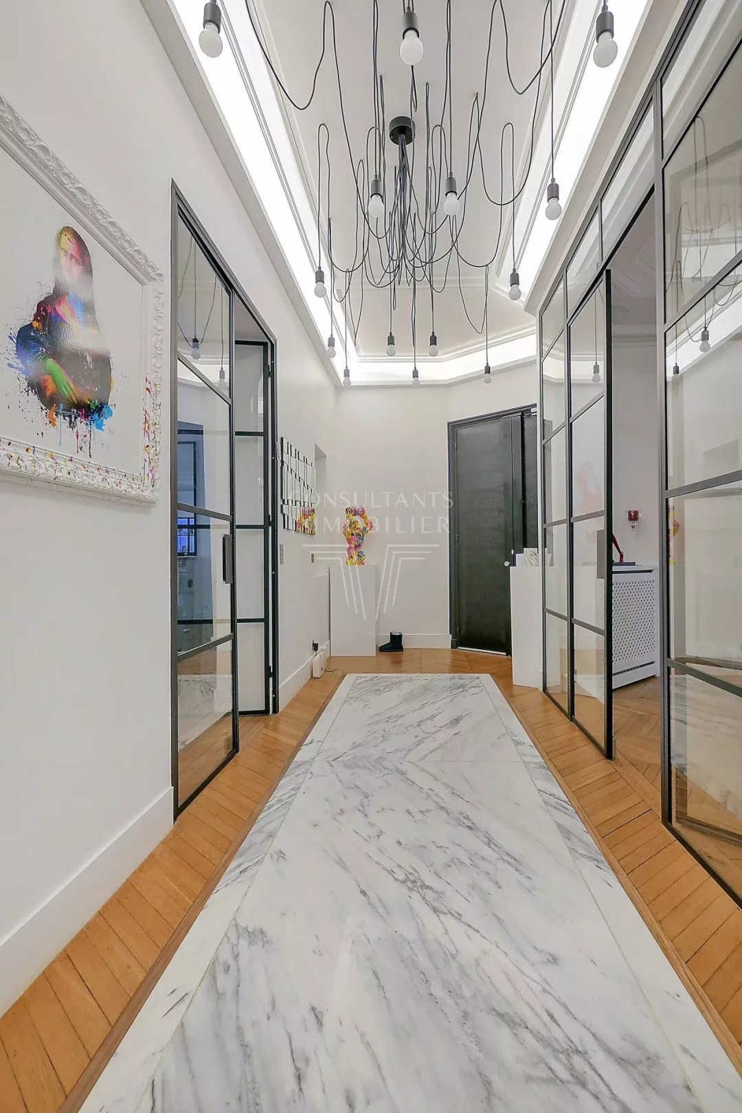 With an open view this apartment193 m² (about 2075 ft²), built in 1900, in a building of 7 floors has 8 rooms including 5 bedrooms, 4 bathrooms and 2 toilets. It has a living room, dining room, a None and a cellar. It's located on the 2nd floor with a lift. Heating : Individual radiator. Others : intercom, guard, fireplace, cable television. Fees : 3.043.