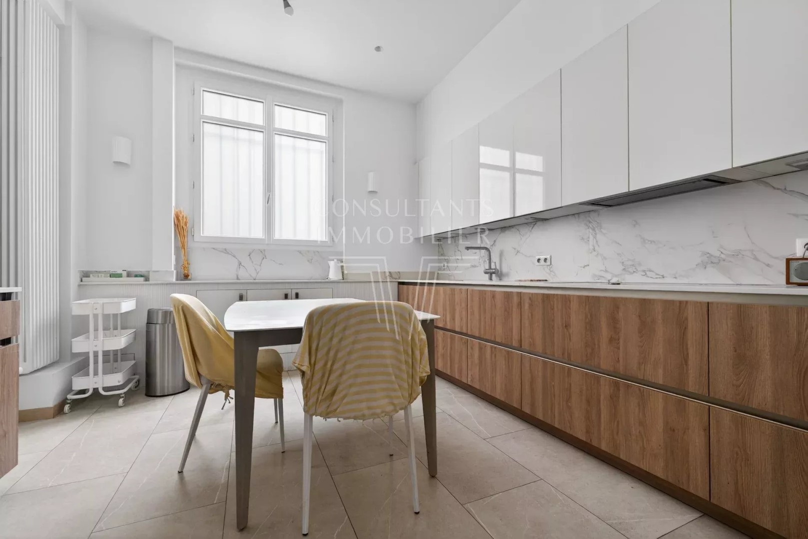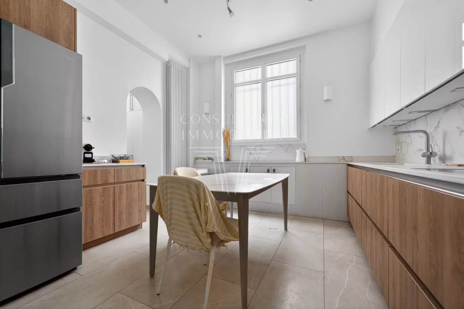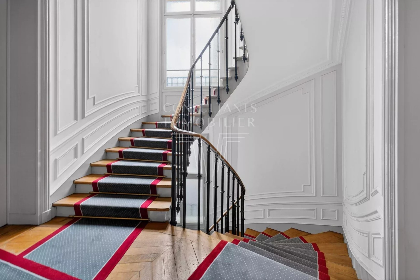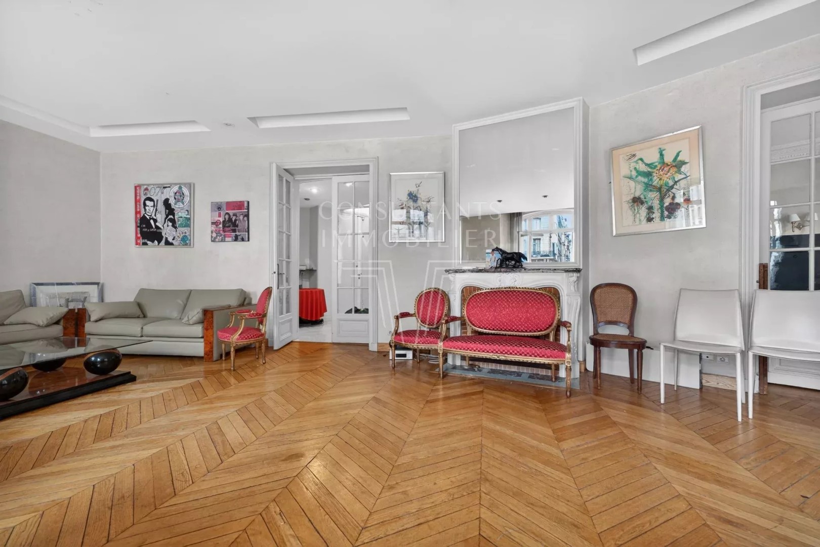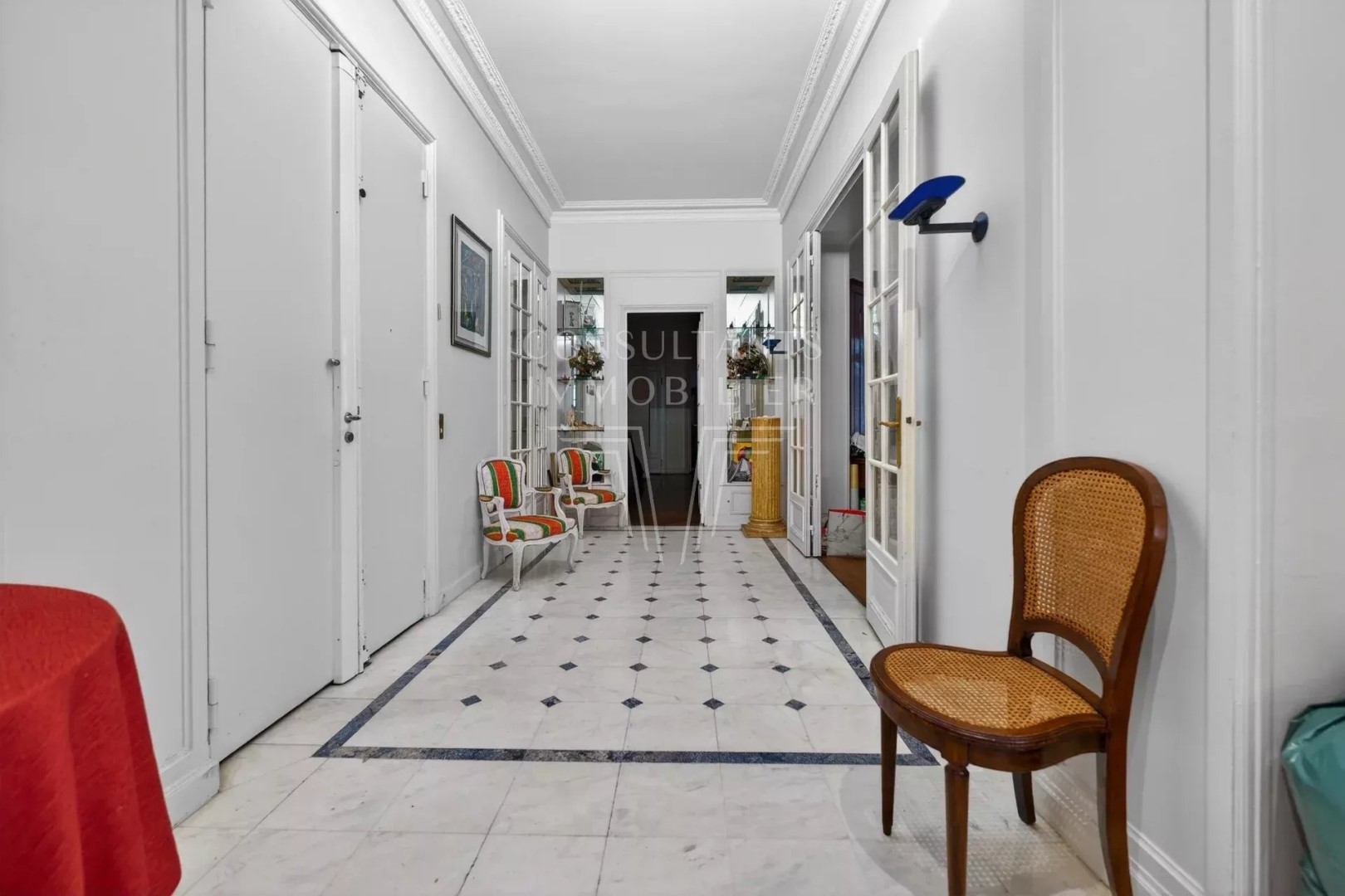With an open view and east exposure this apartment200 m² (about 2150 ft²), built in 1910 has 6 rooms including 4 bedrooms, 3 bathrooms and 3 toilets. It has a living room, a None, a cellar and a parking lot. It's located on the 2nd floor with a lift. Heating : Collective gaz radiator. Others : digicode, guard, fireplace, cable television.