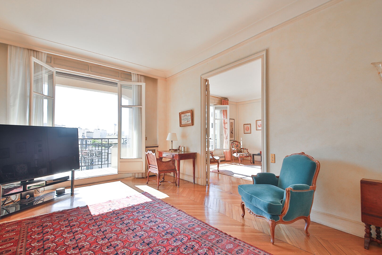 In a quiet environment, with an open view this apartment243 m² (about 2612 ft²), built in 1930, in a building of 7 floors has 8 rooms including 5 bedrooms and 3 toilets. It has a living room 60 m² (about 645 ft²), dining room, a Kitchenette, a balcony and a cellar. It's located on the 5th floor with a lift. Heating : Collective radiator. Others : intercom, digicode, guard. Fees : 3.448276.