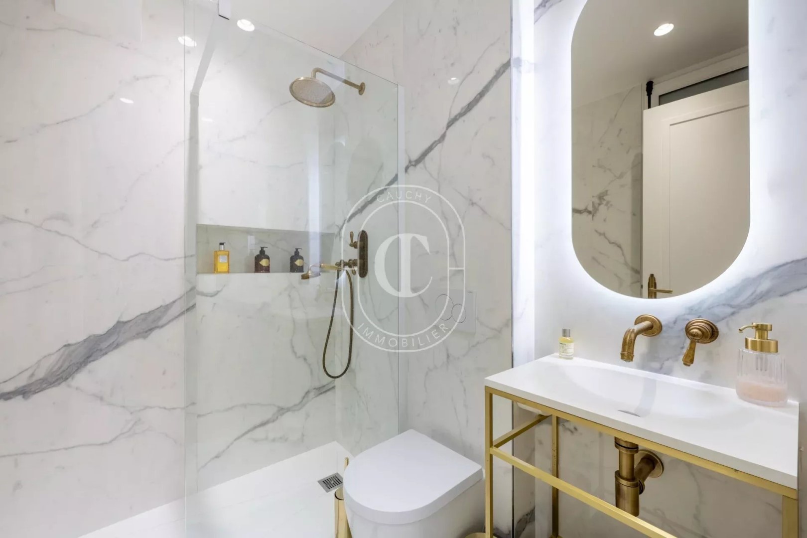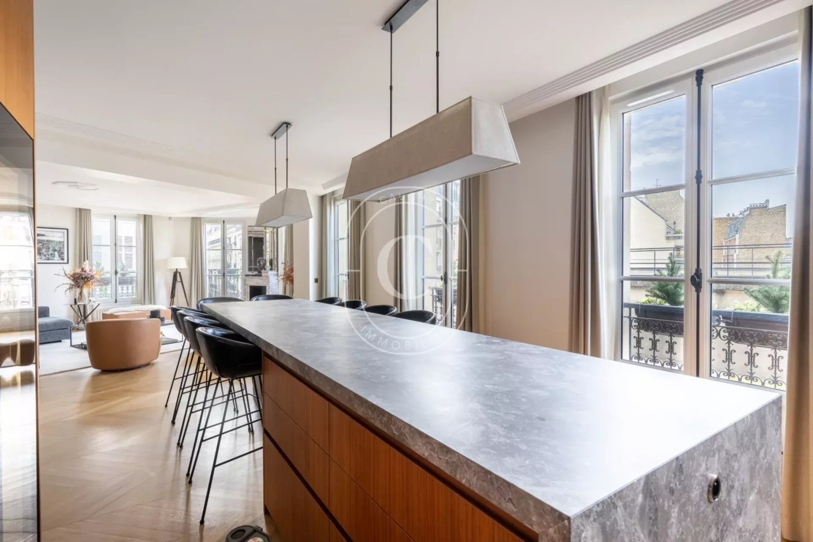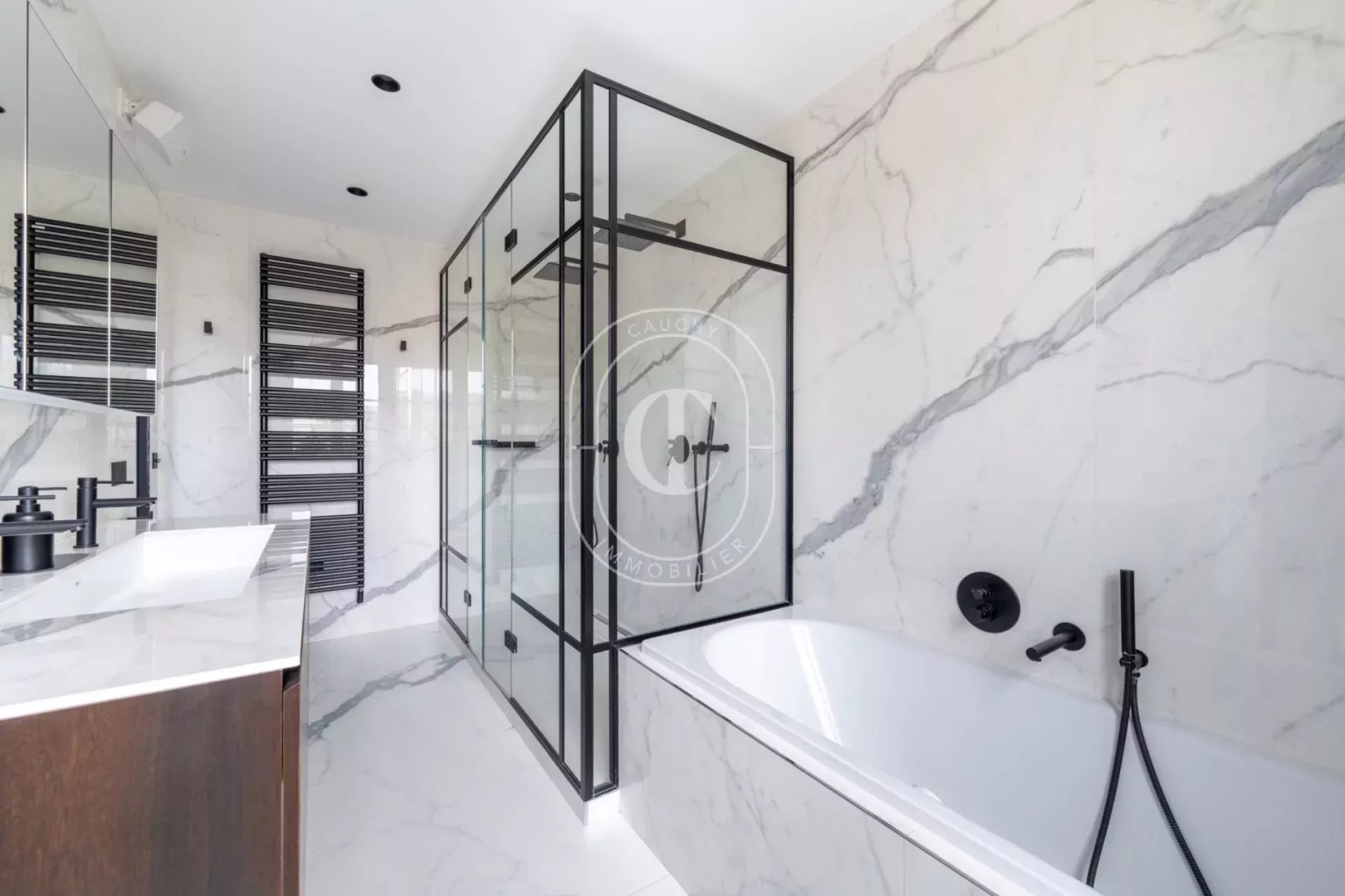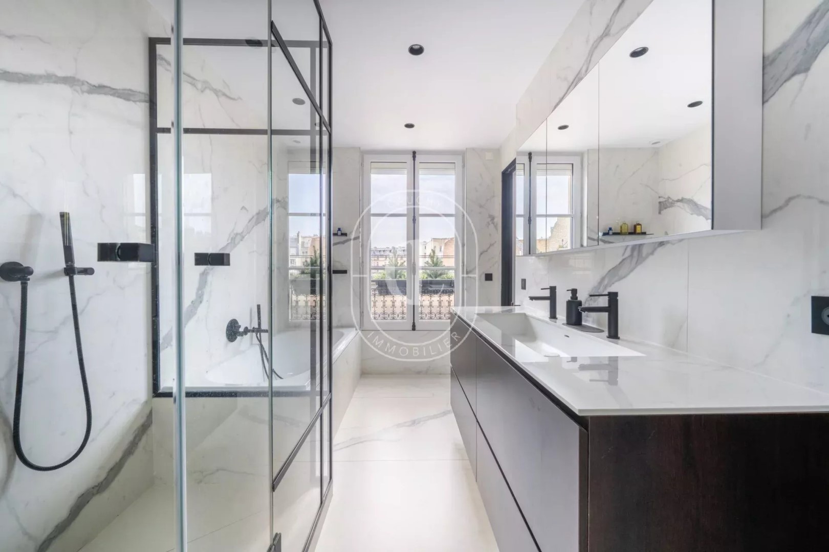 With an open view and west exposure this apartment160 m² (about 1720 ft²), built in 1880, in a building of 7 floors has 5 rooms including 3 bedrooms, 2 bathrooms and 2 toilets. It has a living room 35.28 m² (about 379 ft²), a Kitchen/dining room and a cellar. Totally renovated, it's located on the 4th floor with a lift. Heating : Individual gaz radiator. Others : digicode, parquet floor, fireplace, cable television.