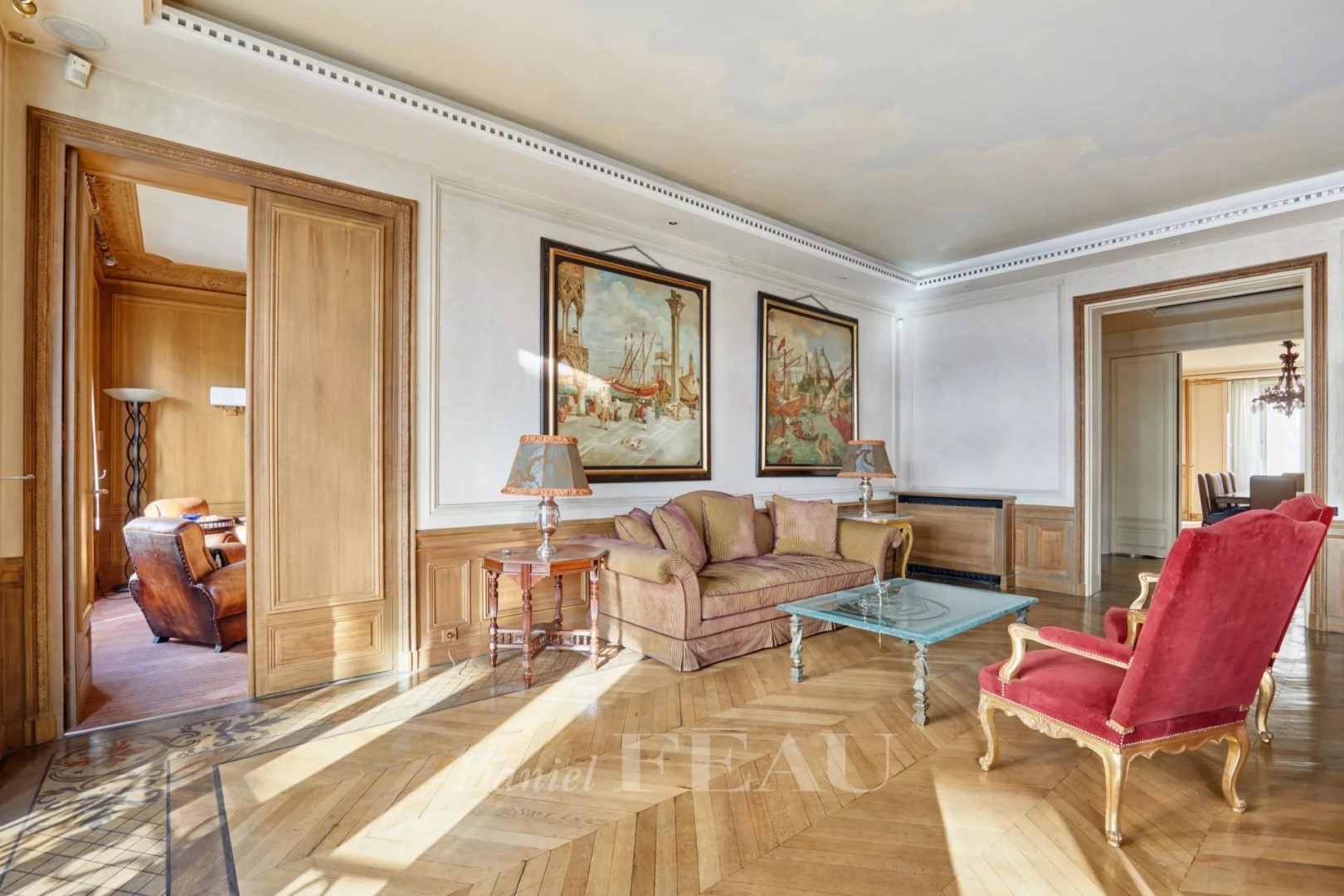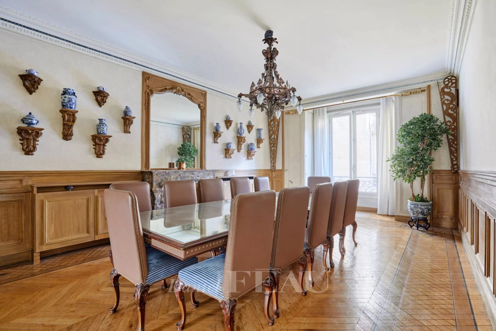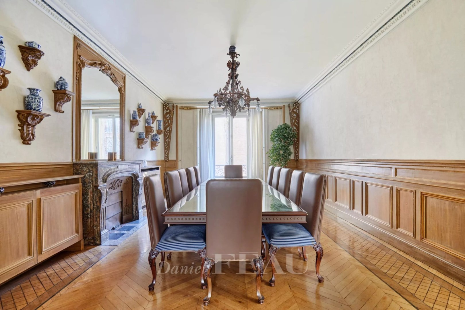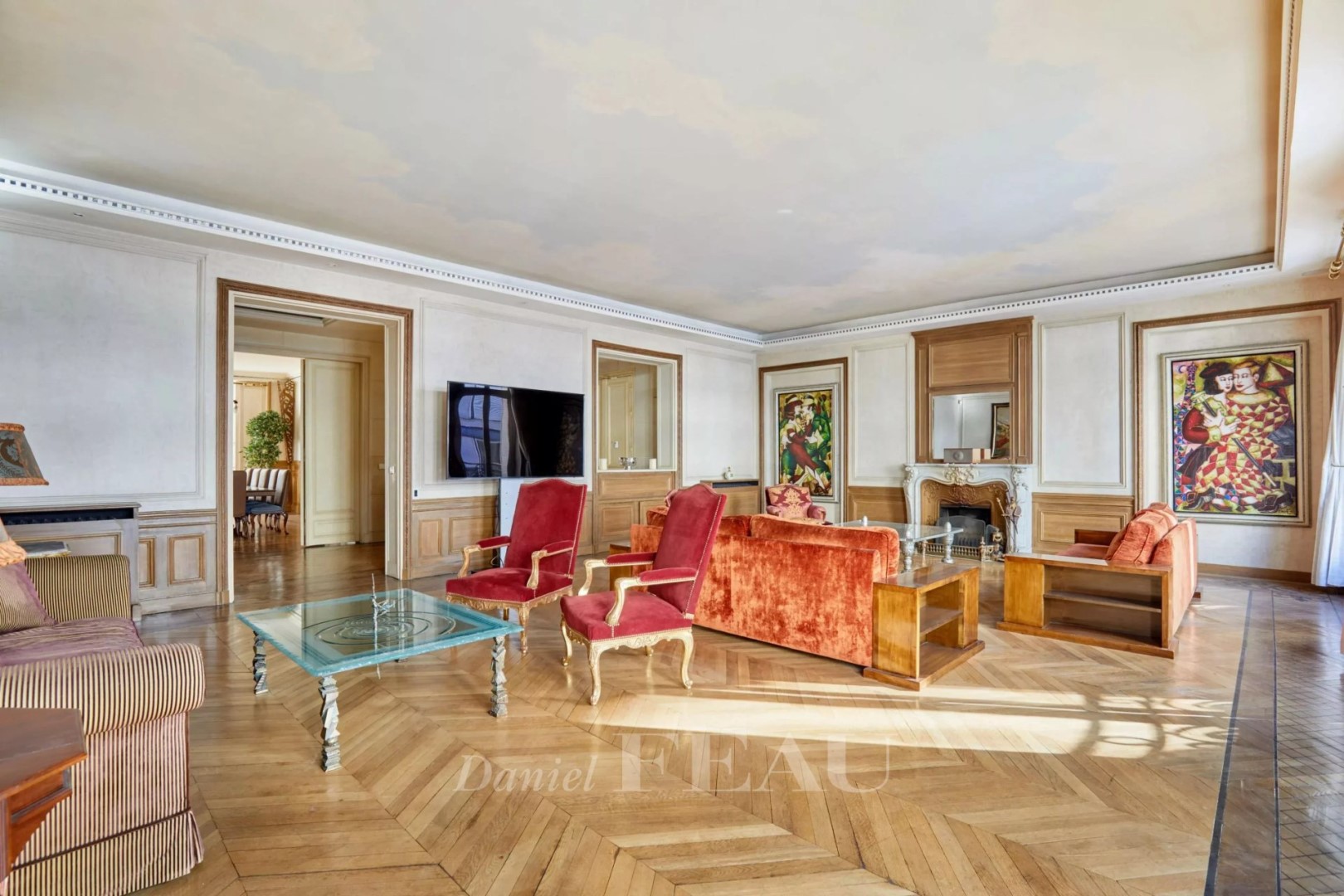 A few steps from Avenue Henri Martin, in a prestigious Haussmannian building, the apartment on the third floor consists of an entrance gallery, a double living room, a dining room, a kitchen, a master suite with dressing room and bathroom, three other bedrooms each with its own bathroom. Two staff bedrooms and two cellars complete this exceptional property in a prime location. A double garage is available at an additional cost.