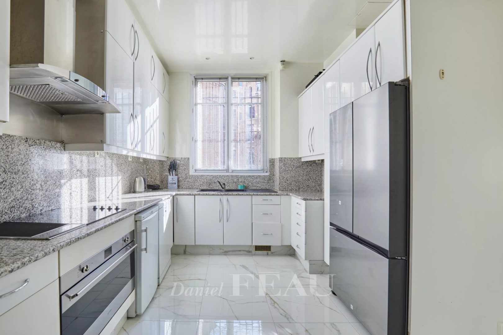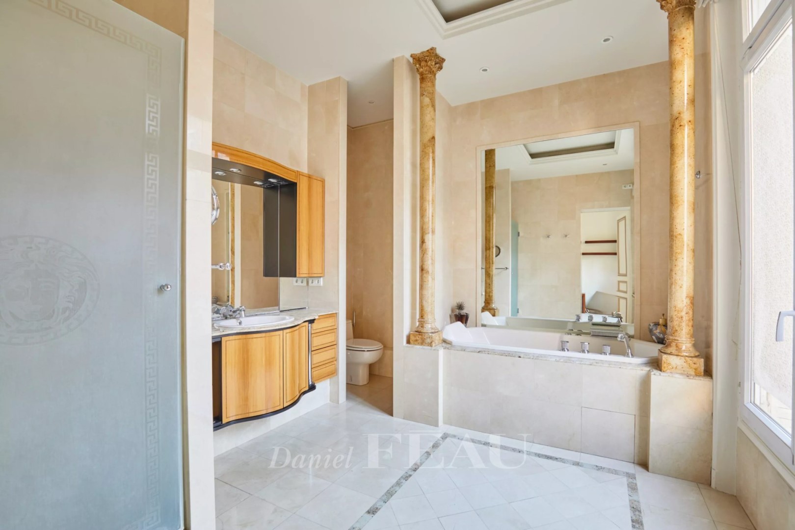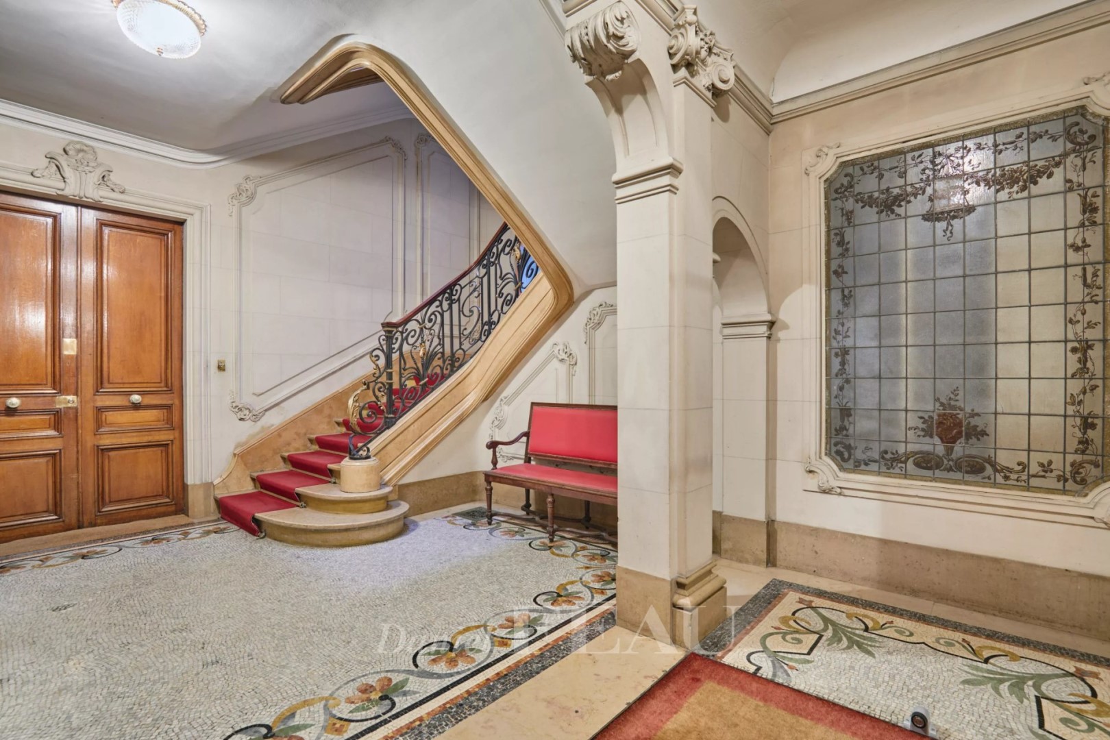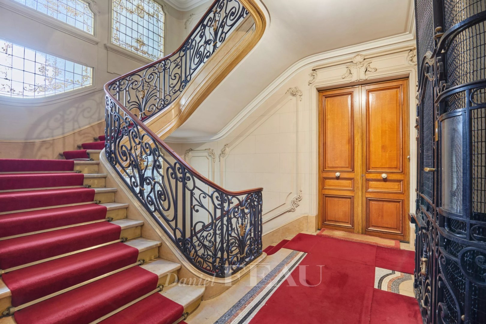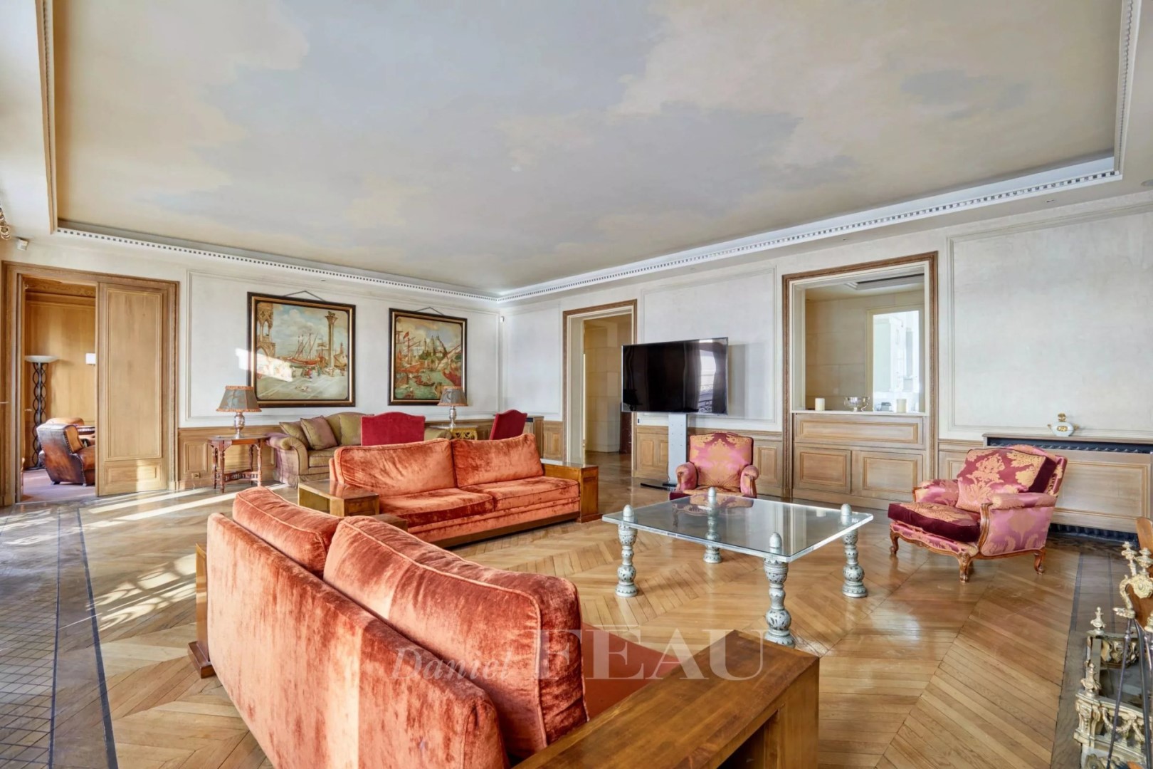 A few steps from Avenue Henri Martin, in a prestigious Haussmannian building, the apartment on the third floor consists of an entrance gallery, a double living room, a dining room, a kitchen, a master suite with dressing room and bathroom, three other bedrooms each with its own bathroom. Two staff bedrooms and two cellars complete this exceptional property in a prime location. A double garage is available at an additional cost.