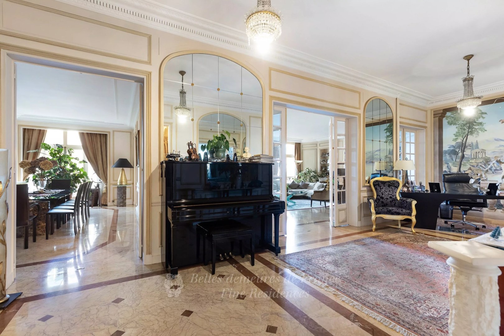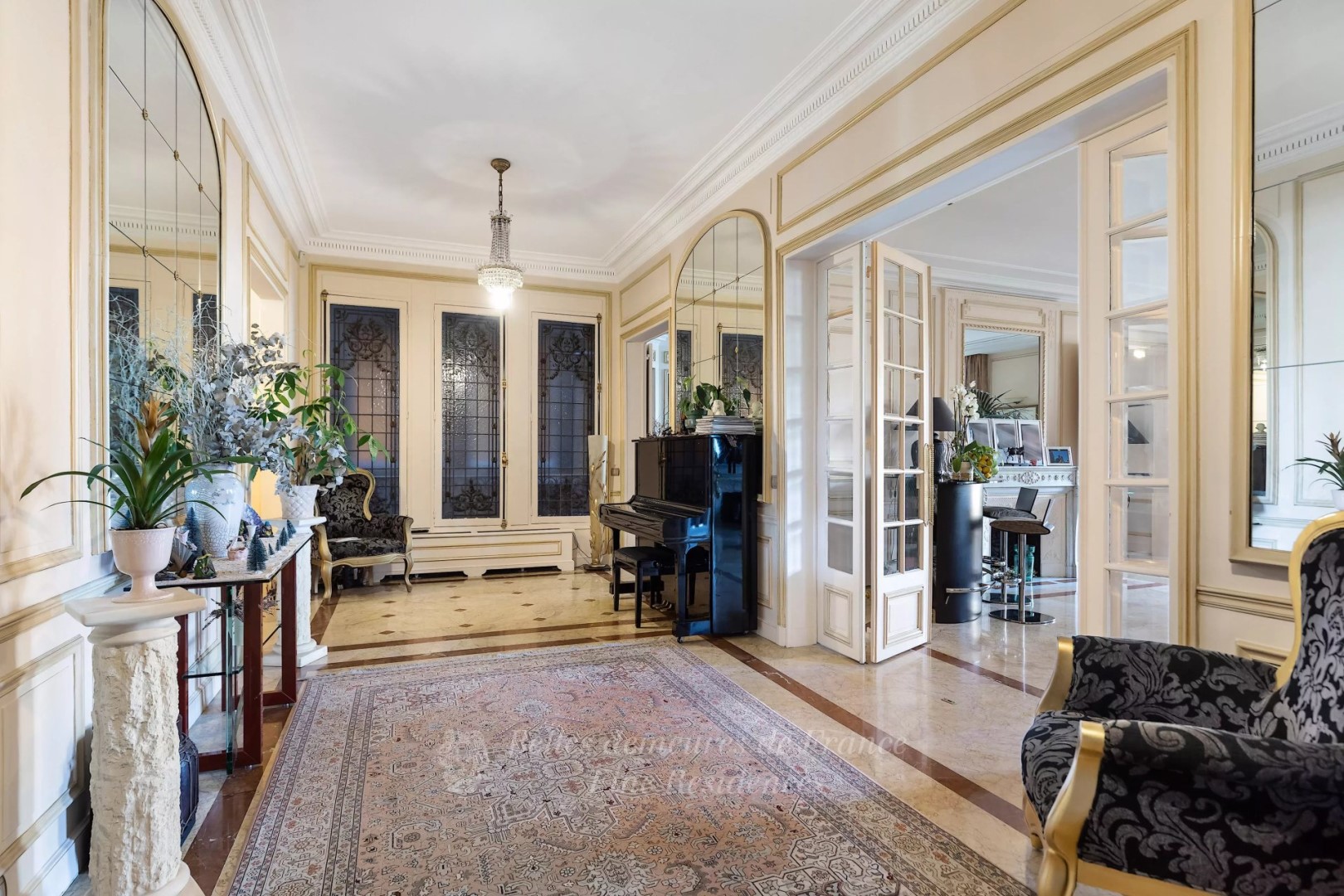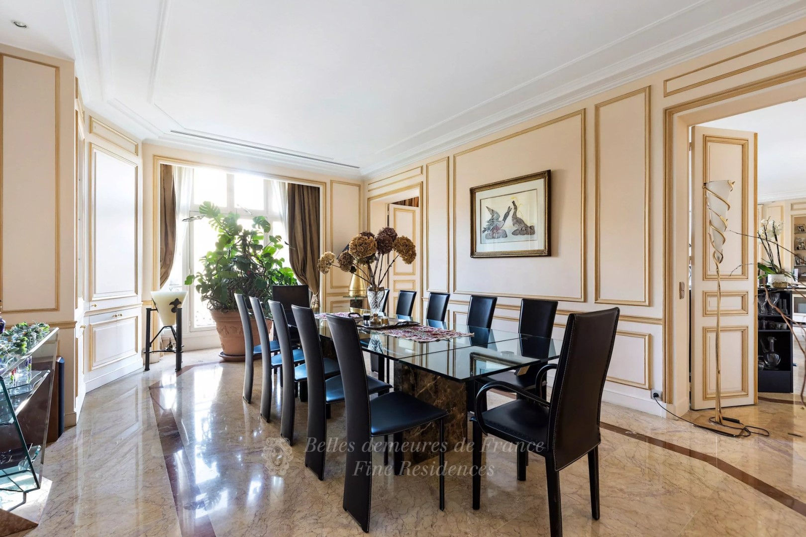 Prestigious La Muette neighbourhood. This superb air-conditioned apartment is on the 4th floor of a luxurious early 20th century building. An entrance hall leads to a double living/reception room opening onto a balcony commanding an open view of leafy Ranelagh Gardens, a spacious dining room also enjoying a view, four bedrooms and three bathrooms.
