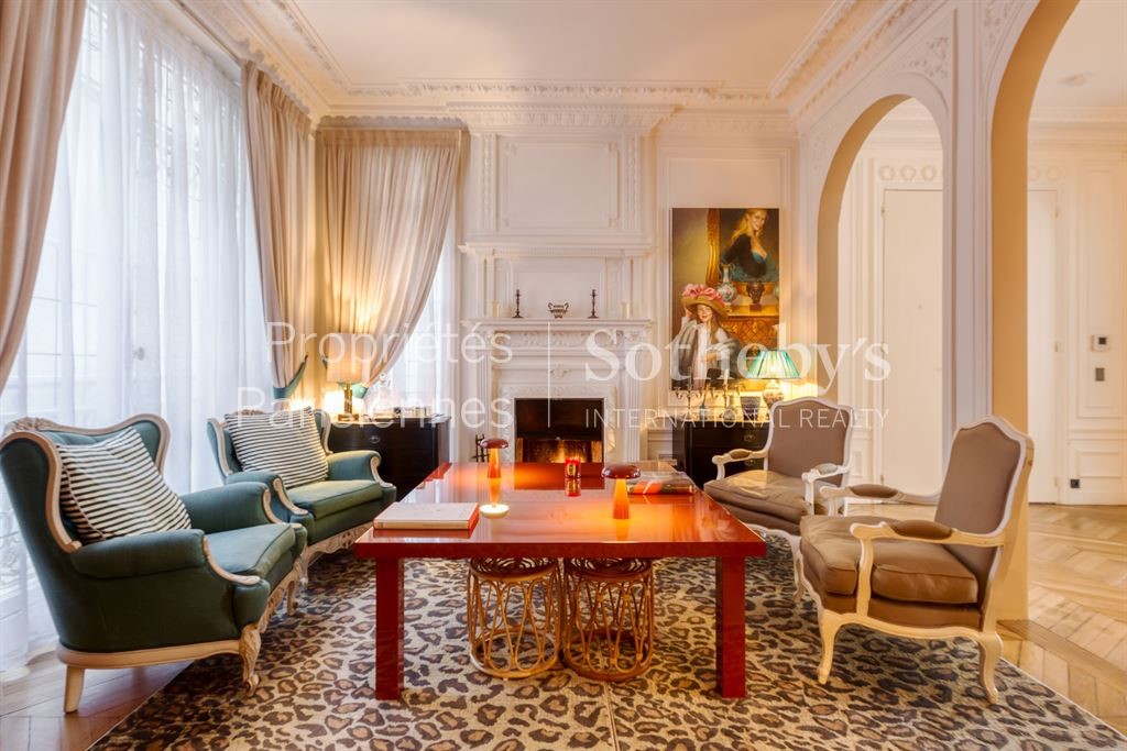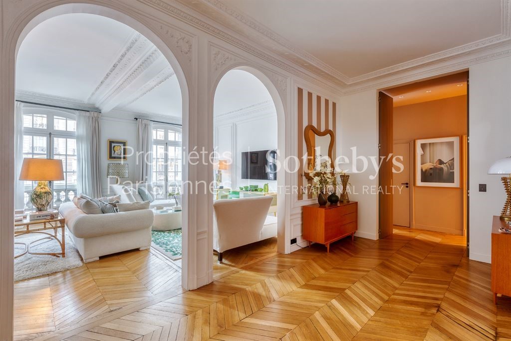 Paris 16, between la Muette and rue de la Pompe, alone on the floor with elevator of a very good standard building with caretaker, a magnificent family apartment of 231 sqm, with high-end renovation, facing West and offering 4 bedrooms. This apartment has all the characteristics of exceptional properties: beautiful volumes, moldings, parquet floors, stained glass windows, fireplaces. It is firstly composed of a very beautiful entrance gallery with its arches which lead on both sides the crossing reception composed of a large living room on one side and a dining room or second living room with its fireplace area on the other side. The separate and equipped kitchen has a dining area and plenty of storage space. The property also offers a remarkable spacious master bedroom, equipped with a large dressing room and a double shower. 3 other bedrooms are also present, as well as two other bathrooms. It includes a large renovated cellar. The high quality features of this apartment and its location in the heart of the 16th arrondissement make it a rare property on the market.