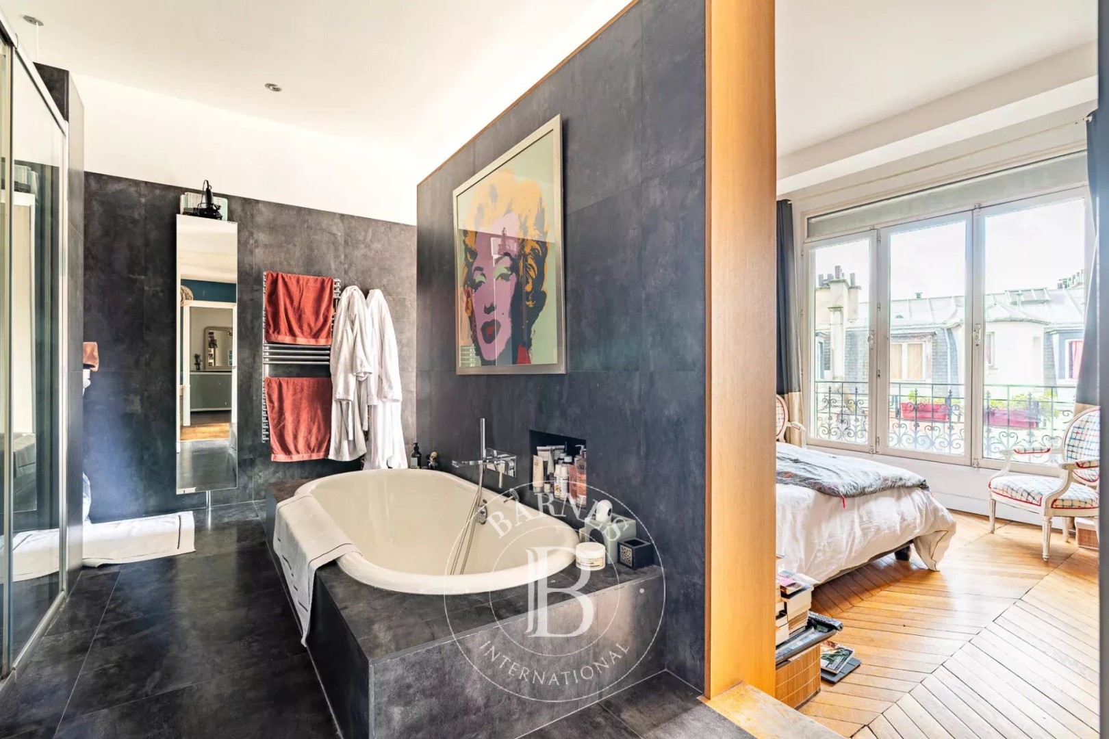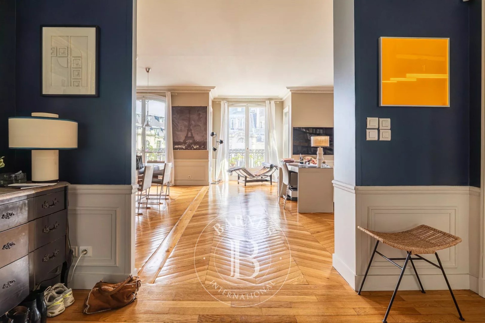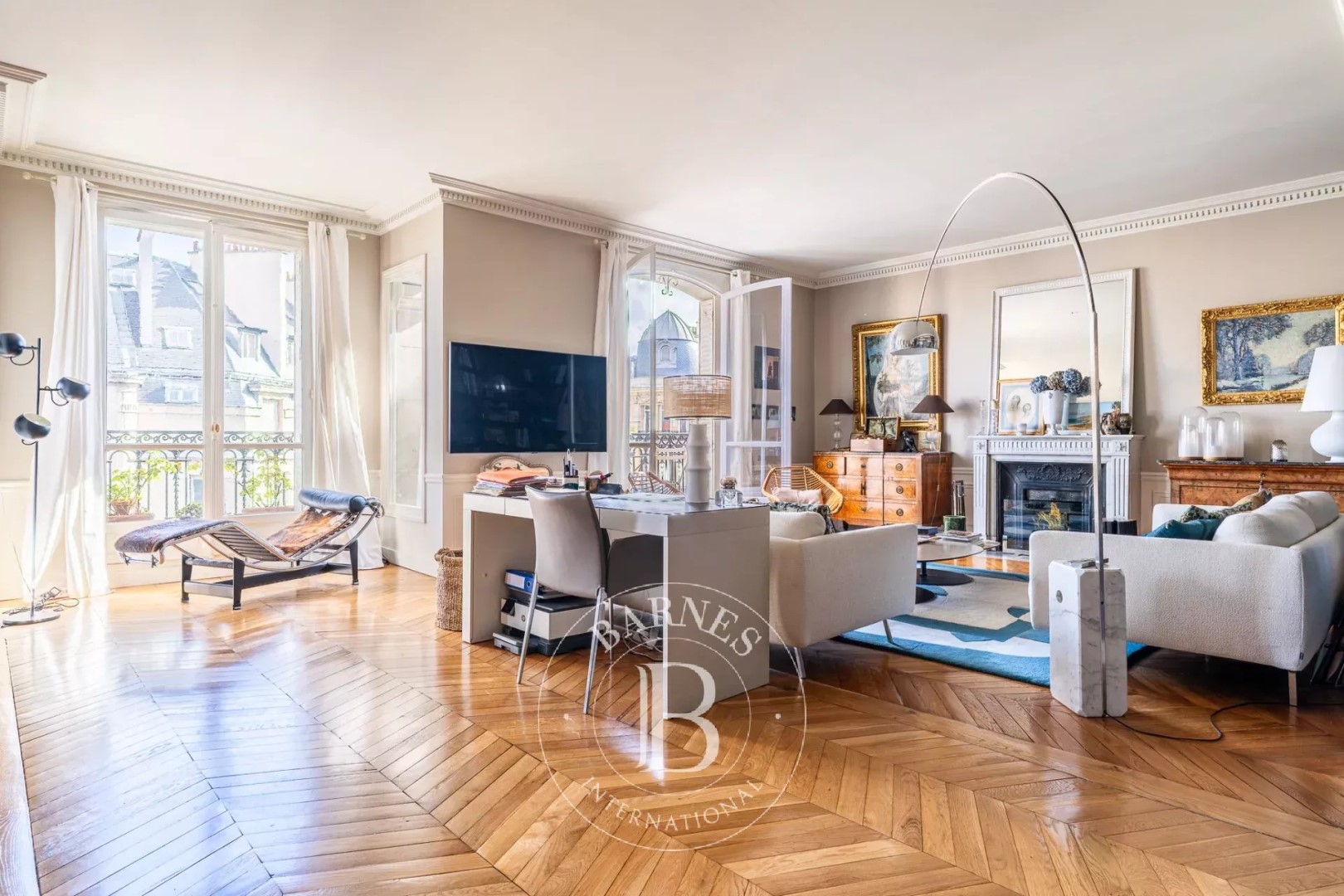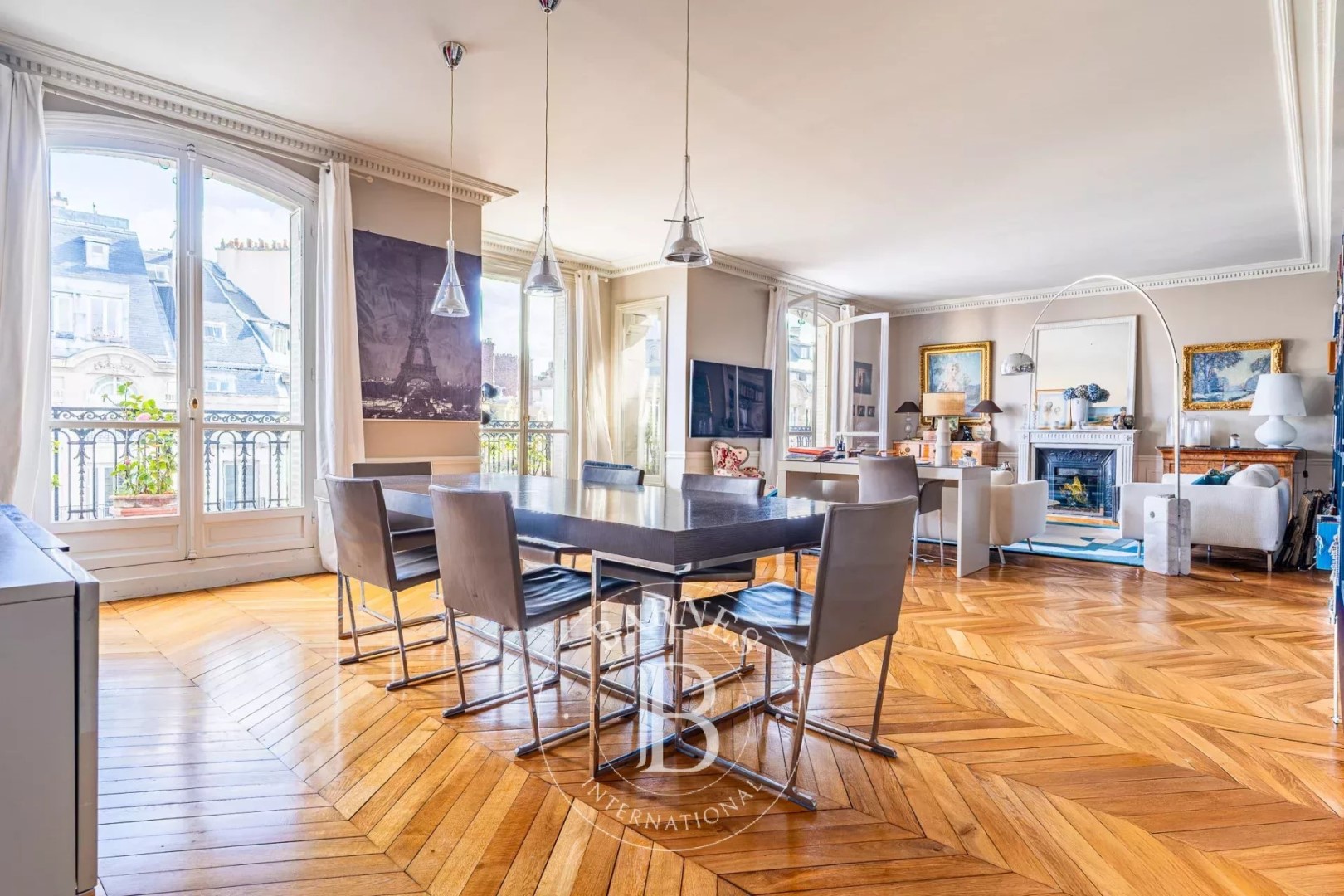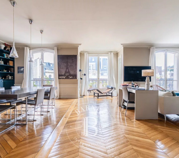 With an open view and east exposure this apartment159.99 m² (about 1720 ft²), built in 1907, in a building of 8 floors has 6 rooms including 3 bedrooms, 1 bathroom and 2 toilets. It has a living room, a None and 3 balconies. It's located on the 7th floor with a lift. Heating : Collective. Others : intercom, digicode, guard, fireplace, cable television. Fees : 4.