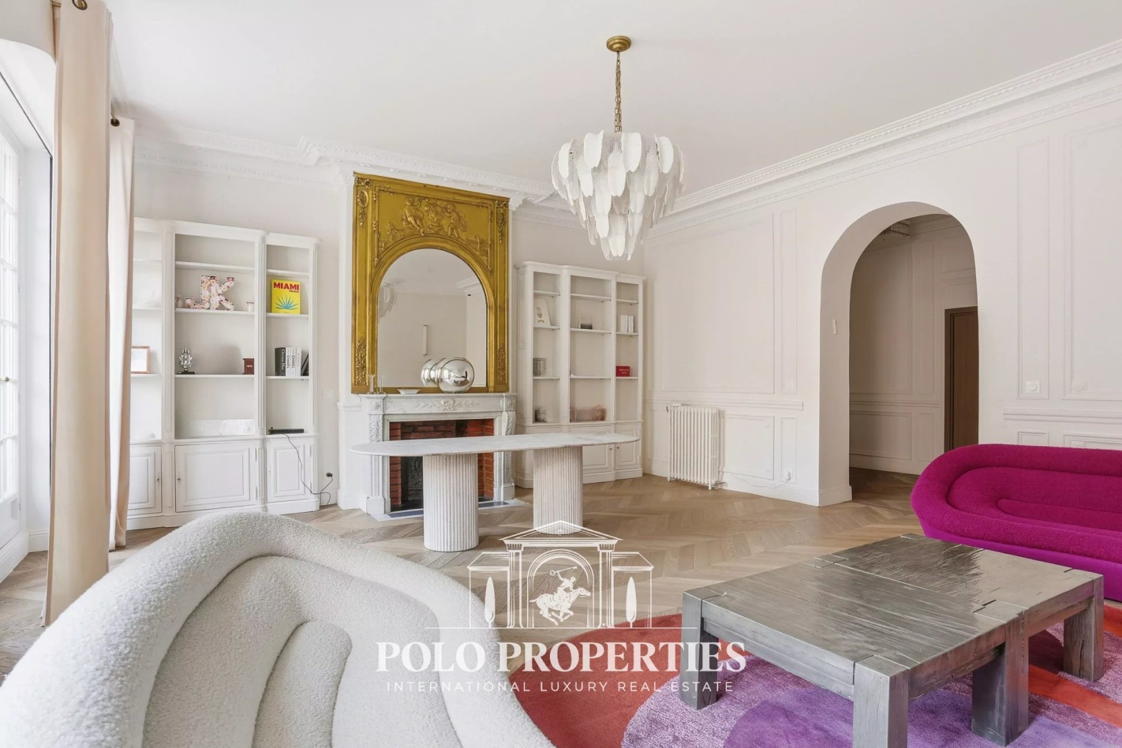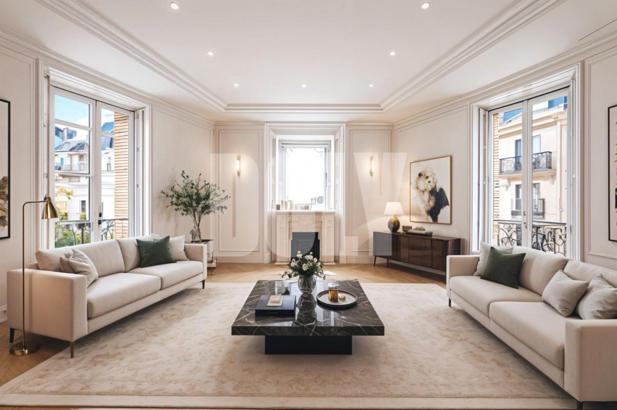 75016 Paris - In a very prestigious Haussmann building, an exceptional 200m² apartment, entirely refurbished. A vast living room with high ceilings of over 3 meters, offering superb volumes and lots of natural light. Separate kitchen. The night area comprises 4 bedrooms, all with en-suite bathrooms, including a master suite with dressing room. The apartment enjoys an unobstructed view and is located in a building with beautiful common areas. Monthly charges: 420€. DPE: D (178kWh/m²/an ) Greenhouse gas emissions: 44 kg CO²/m²/year Property subject to co-ownership status. No proceedings in progress. Transaction fees incl. VAT payable by seller. Information on the risks to which this property is exposed is available on the Géorisques website :georisques.gouv.fr