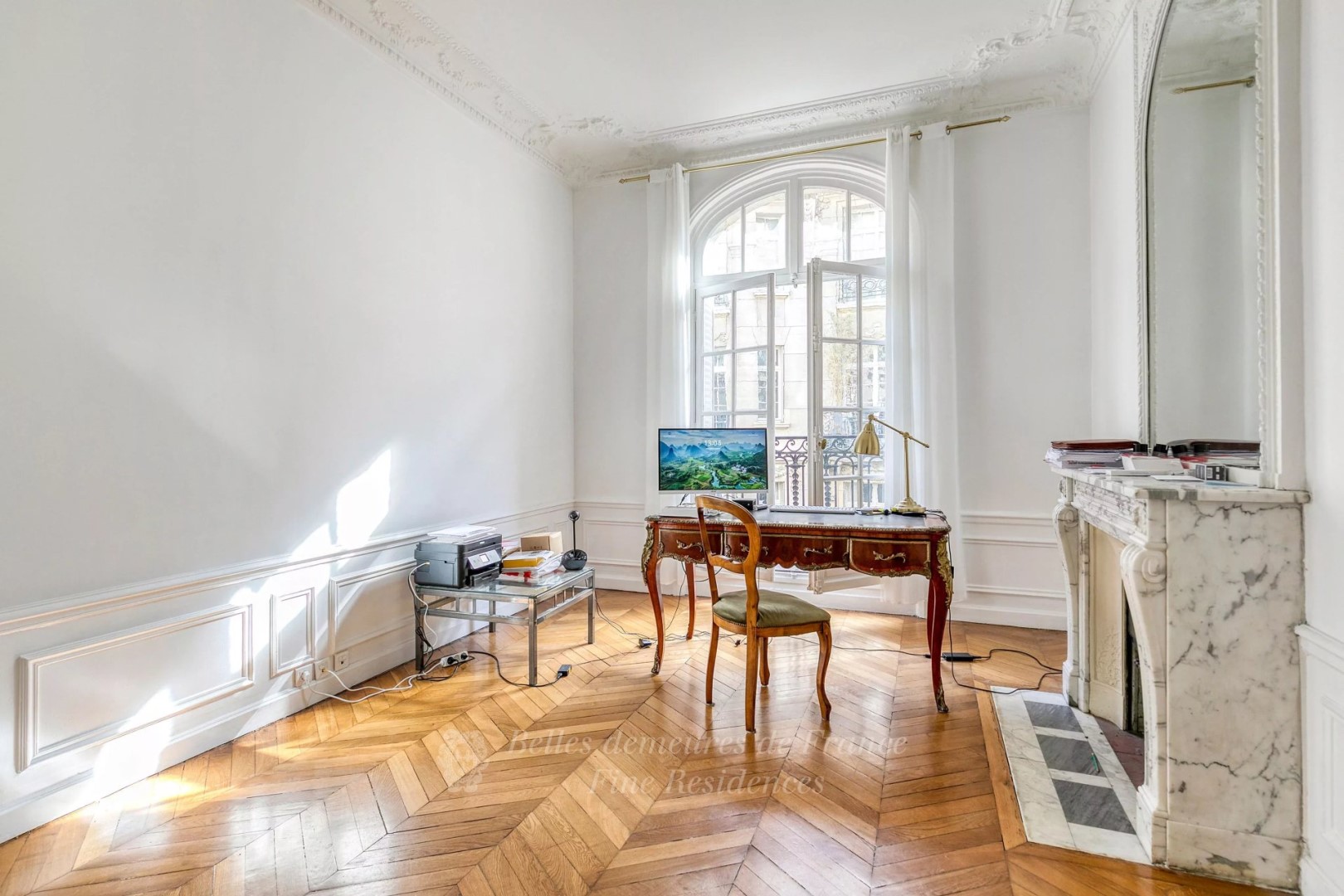 This superb apartment is on the 3rd floor of a fine early 20th century freestone building located in a peaceful street a stone’s throw from Avenue Victor Hugo. It includes a living/reception room featuring a box ceiling and Herringbone parquet flooring, a dining room, a fitted and equipped kitchen, three bedrooms, a dressing room, a bathroom with a wc, a shower room with a wc, and a separate guest wc. Cellar. Collective heating. The building has a caretaker, and is equipped with a lift, a door-entry code and an intercom.