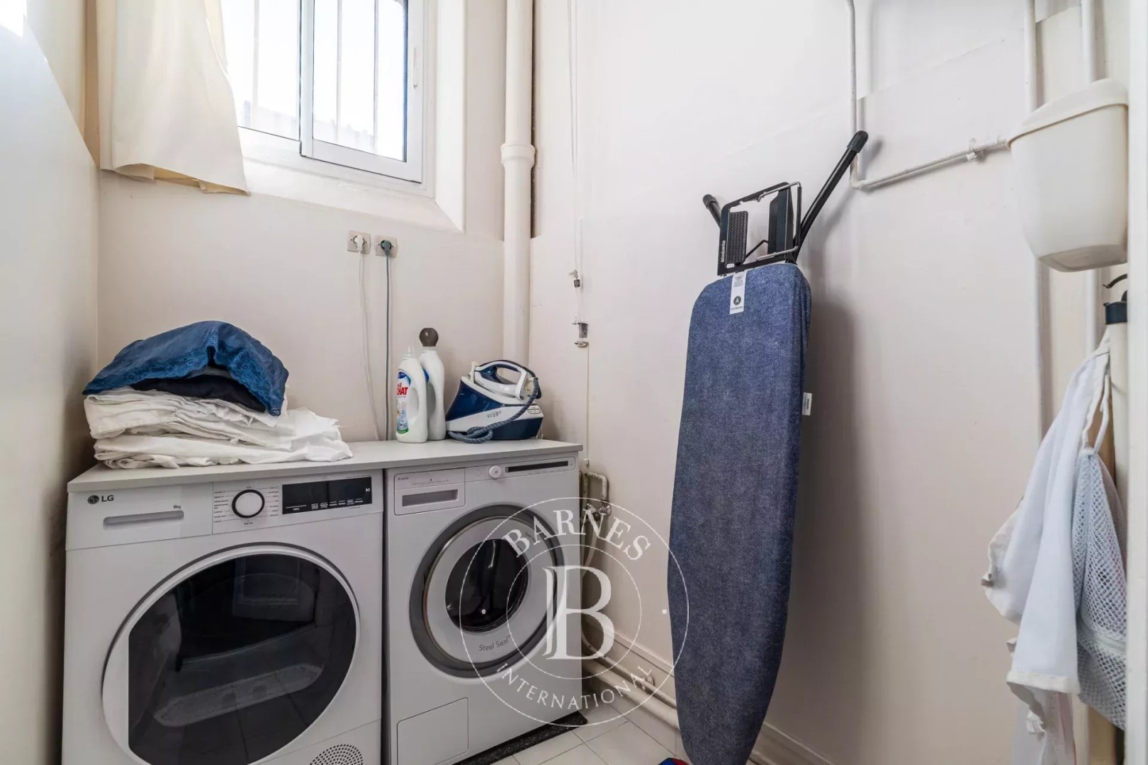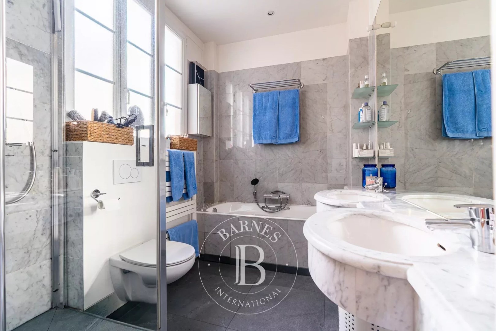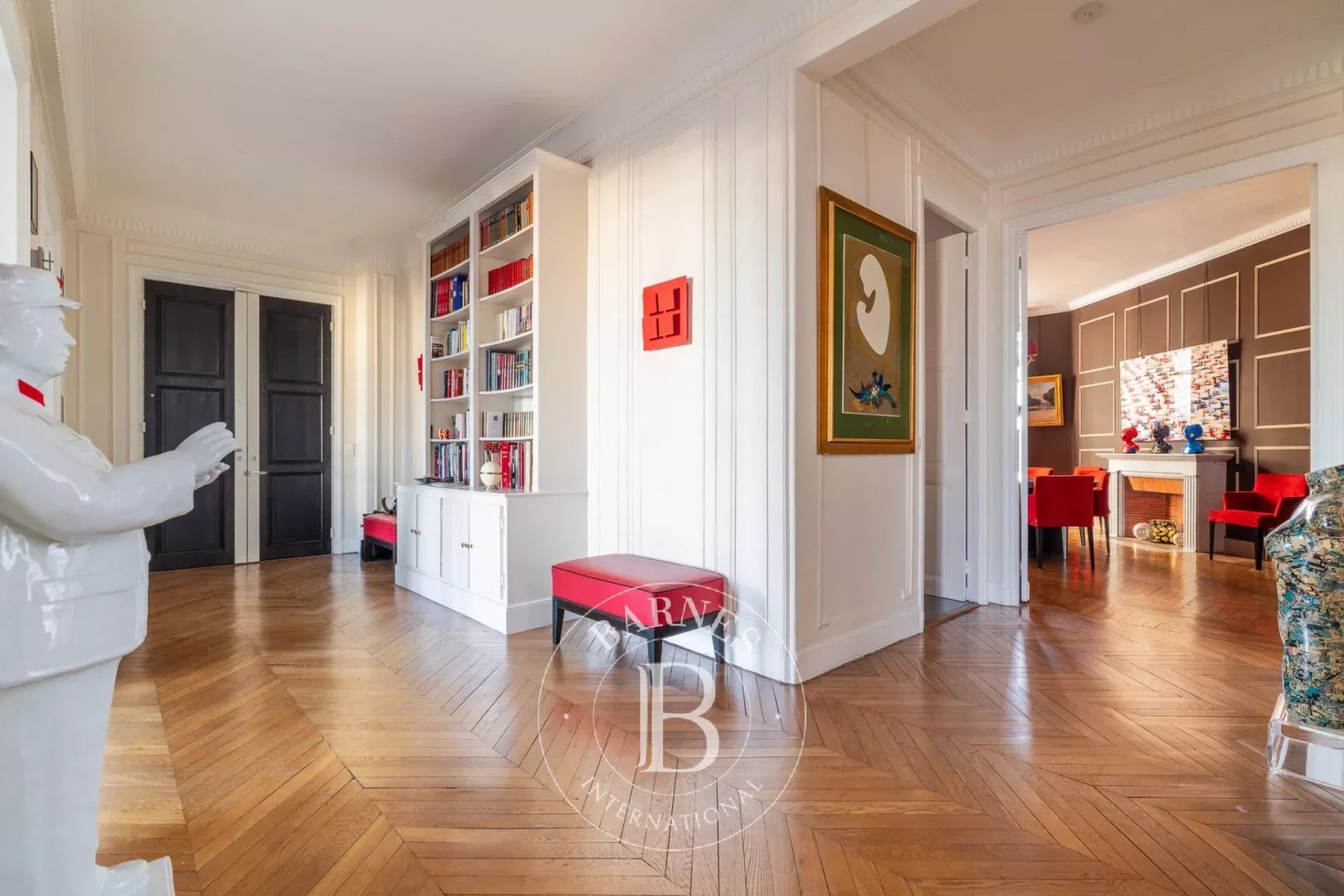 Located in the immediate vicinity of the Jardin du Ranelagh, this family apartment of approximately 215 sqm is situated on the fourth floor of a beautiful 1930s building with a concierge and elegant common areas. Benefiting from a high floor, it enjoys abundant natural light as well as superb open views with no overlooking neighbors. The living area consists, on one hand, of an entrance gallery leading to a magnificent reception room, and on the other hand, a dining room and a large eat-in kitchen, both offering an exceptional view of the Eiffel Tower. The sleeping area includes a master bedroom with en-suite bathroom/shower and toilet, two additional bedrooms overlooking the courtyard and sharing a bathroom/shower with toilet, a study that can be used as a fourth bedroom, a laundry room, a dressing room, as well as guest toilets. The living room and bedrooms are equipped with air conditioning, ensuring optimal comfort. A cellar completes this property. There is also the possibility to purchase a parking space at an additional cost, located nearby. Property subject to condominium regulations. Agency fees of 5%, payable by the buyer, i.e. €133,000.