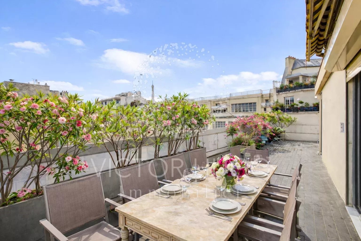 With an open view and south-east exposure this apartment124 m² (about 1333 ft²), built in 1968, in a building of 7 floors contains 5 rooms including 3 bedrooms, 1 bathroom and 3 toilets. It is equipped with a living room 45.3 m² (about 487 ft²), with a Kitchen/dining room and with a terrace. It's located on the 7th floor with a lift. Heating : Collective fuel oil radiator. Others : intercom, digicode, guard. Fees : 4.074.