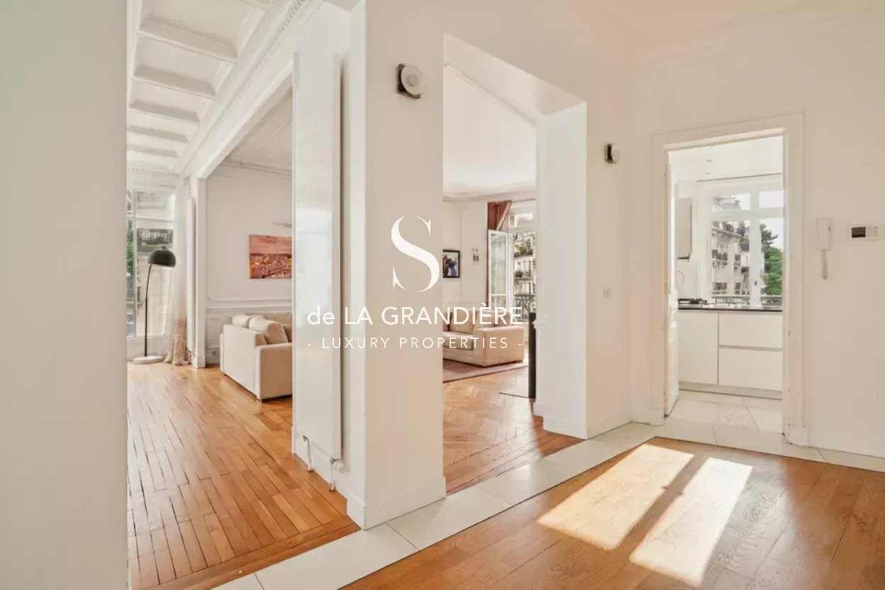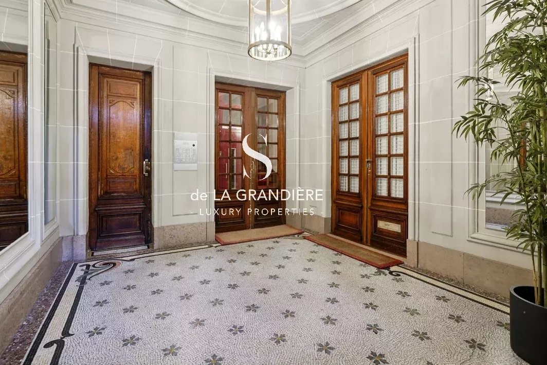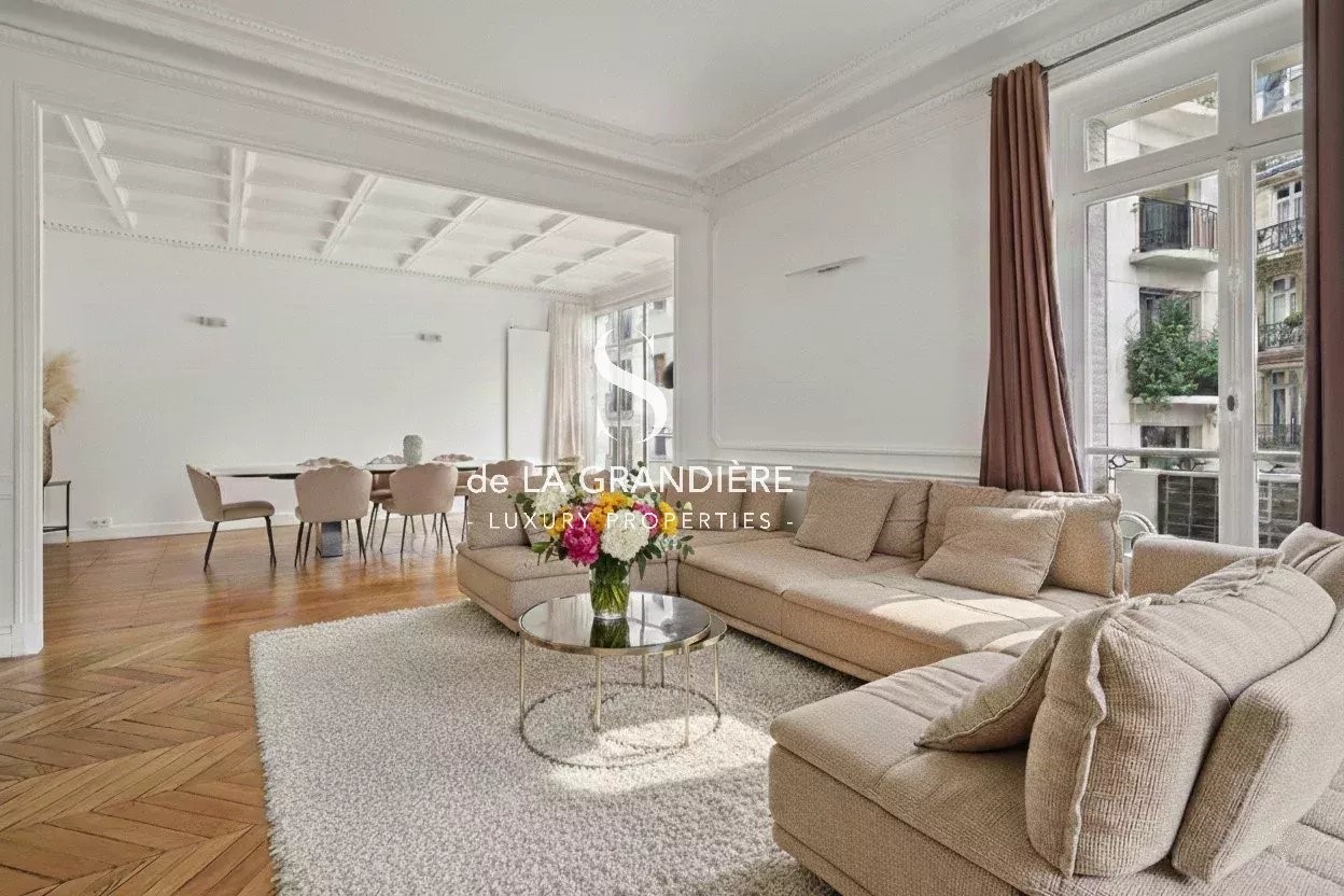 The SdeLaGrandière agency offers you a rare opportunity on the Place de Mexico, in the immediate vicinity of shops, transport and the best schools in the area. Discover this superb 163 m² family apartment with spacious reception rooms, located on the 3rd floor of a Haussmanian building with beautiful common areas. This elegantly appointed property combines old-world charm with modern comforts: herringbone parquet flooring, refined moldings, over 3-meter high ceilings, fully-equipped kitchen and air conditioning. The apartment, in good condition, benefits from a perfectly optimized layout, with no loss of space. It comprises a beautiful entrance hall opening onto a vast, luminous double living room (51m2), a master suite with shower room, two other spacious bedrooms (possibility of creating a 4th bedroom) with their own bathroom, 2 separate wc. Plenty of built-in storage space. Two healthy cellars in the 1st basement complete this property. Parking available nearby.