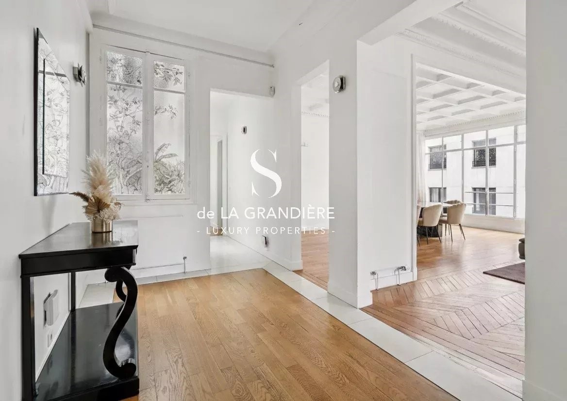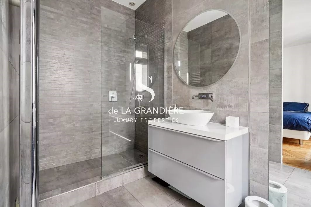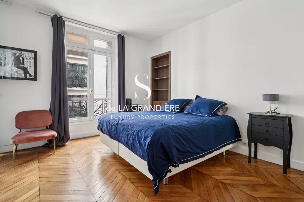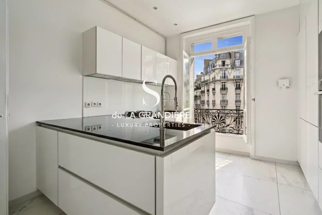 The SdeLaGrandière agency offers you a rare opportunity on the Place de Mexico, in the immediate vicinity of shops, transport and the best schools in the area. Discover this superb 163 m² family apartment with spacious reception rooms, located on the 3rd floor of a Haussmanian building with beautiful common areas. This elegantly appointed property combines old-world charm with modern comforts: herringbone parquet flooring, refined moldings, over 3-meter high ceilings, fully-equipped kitchen and air conditioning. The apartment, in good condition, benefits from a perfectly optimized layout, with no loss of space. It comprises a beautiful entrance hall opening onto a vast, luminous double living room (51m2), a master suite with shower room, two other spacious bedrooms (possibility of creating a 4th bedroom) with their own bathroom, 2 separate wc. Plenty of built-in storage space. Two healthy cellars in the 1st basement complete this property. Parking available nearby.