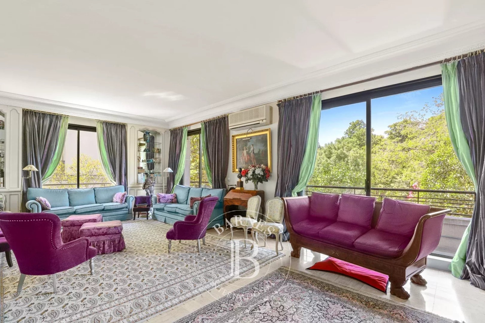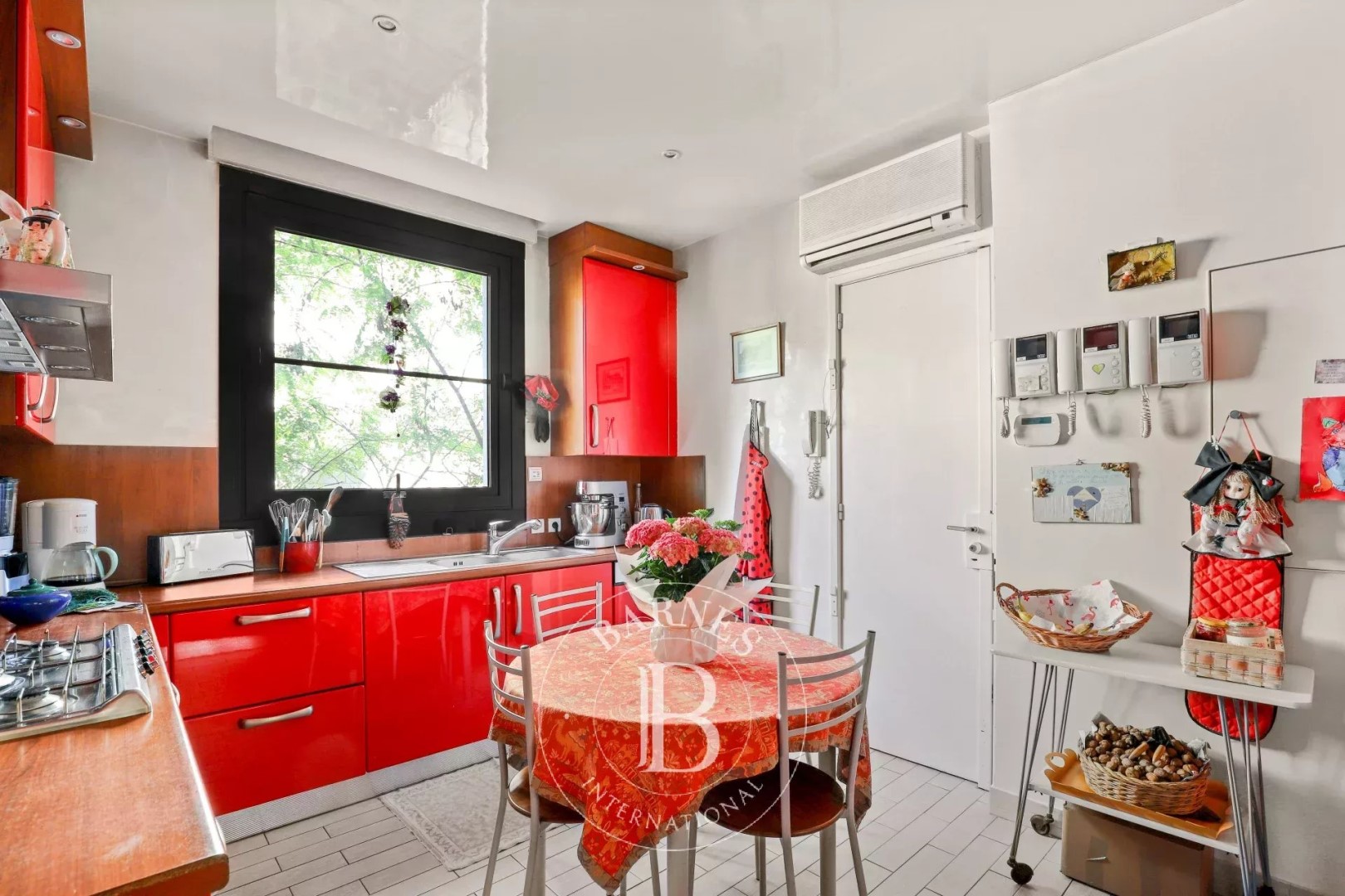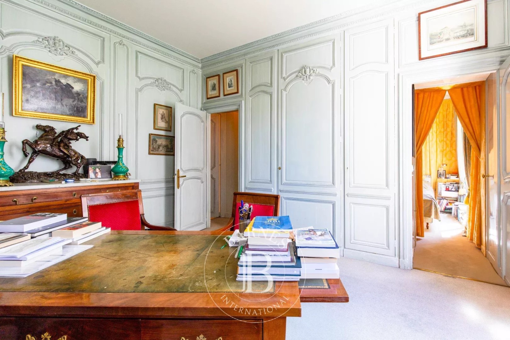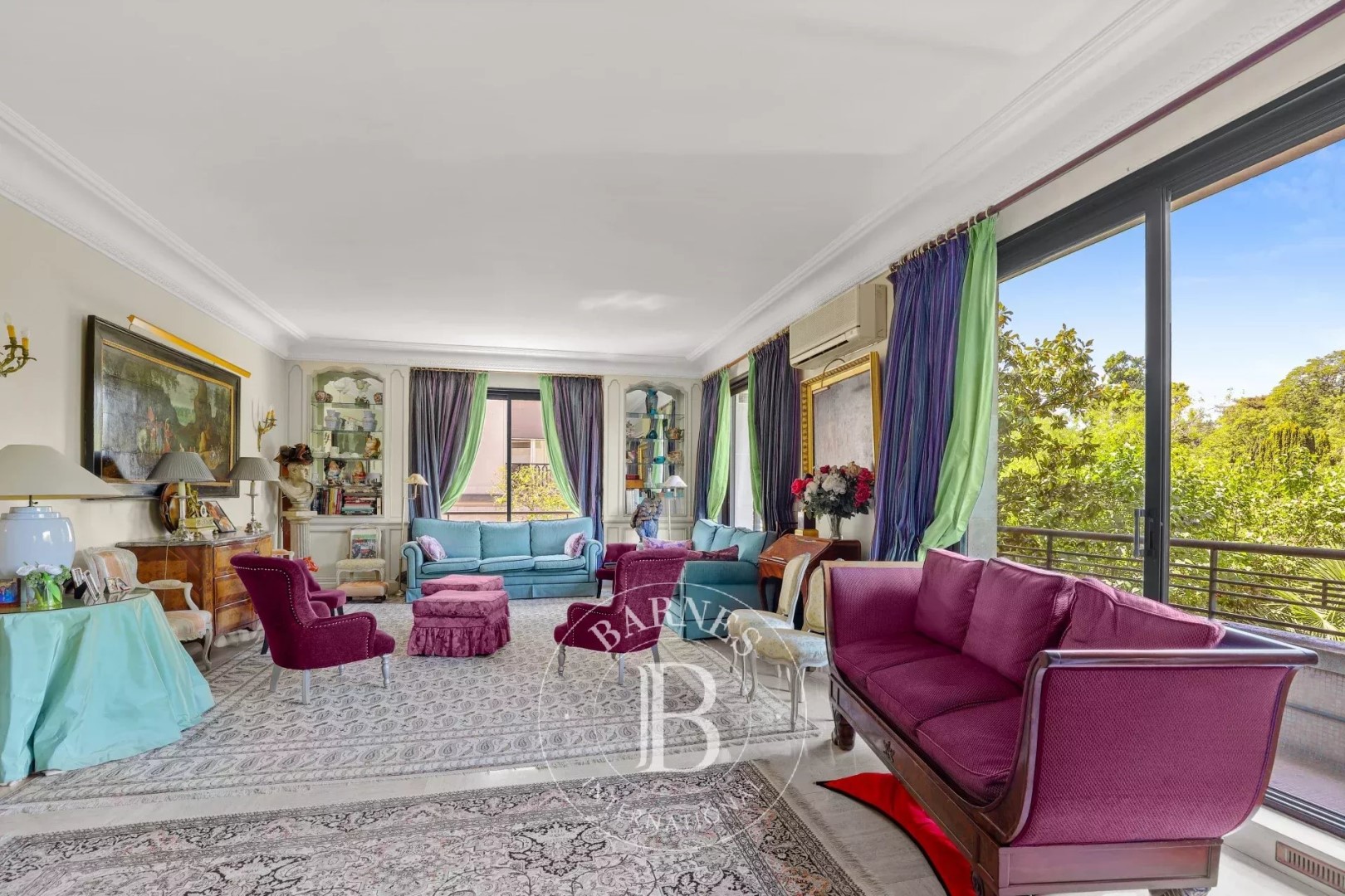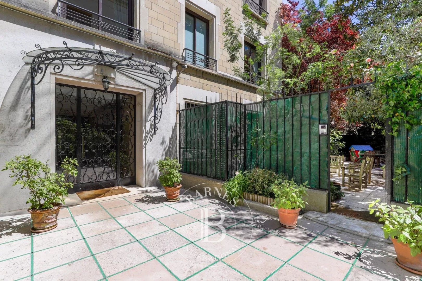 This 245m² (2,637 sq ft) duplex apartment is located on the first floor and the garden level of an elegant 1950s building in quiet, leafy surroundings right next to the Bois de Boulogne. This rare property comprises an entrance hall with fireplace opening onto a vast living room and dining room extended by full-length balconies, a large eat-in kitchen with pantry, a master suite with full bathroom and wardrobe, a second bedroom with en-suite bathroom, a third bedroom, a bathroom, a separate toilet and wardrobe. On the garden level, a room that could be used as a bedroom or a second living room comes with a shower room and toilet and opens onto a garden spanning 120m² (1,292 sq ft), with direct access and no overlook. The feel of a house, in peaceful surroundings right at the heart of the 16th arrondissement. This property also comes with two basement storage units, a 10m² (108 sq ft) maid’s room and a parking space. Property subject to shared ownership status. Fees payable by the seller - Number of lots in the building: 33 - Average amount of the share of charges €15,368/year - Estimated amount of annual energy costs for standard use based on 2021 energy costs: €3,876 ~ €5,245 - Information on the risks to which this property is exposed is available on the Géorisques website: www.georisques.gouv.fr
