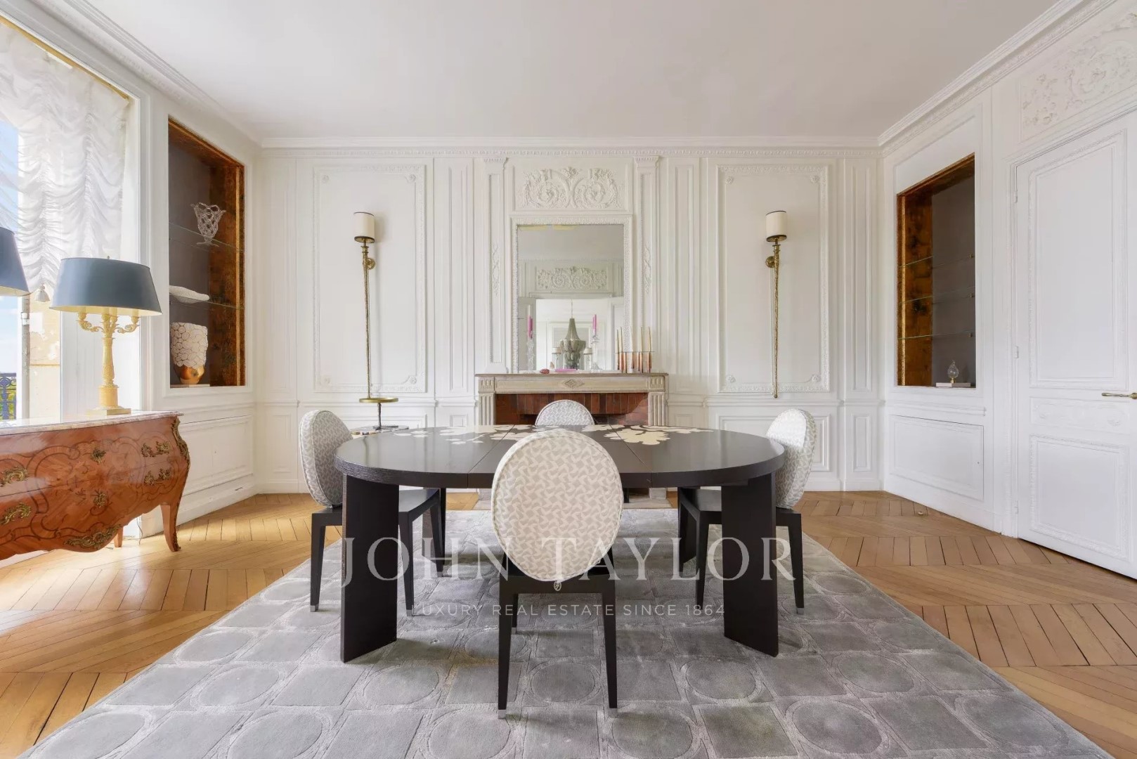 FOCH. On the 5th and penultimate floor of a 19th? century building of the highest standing, with live-in janitor, 24/7 concierge and 24-hour surveillance, this exceptional 182.37 m² west-facing apartment offers breathtaking panoramic views from its generous balconies. Combining old-world charm with modern comforts, it features functional fireplaces, 3 m high ceilings, period moldings and light-filled living rooms extended by suspended outdoor spaces. The ideal layout includes - an entrance gallery - a double living and dining room (67 m²) - a separate high-end fitted kitchen (V-Zug, Novy) - two spacious bedrooms (21.77 m² & 18.68 m²) - bathroom with toilet - Italian shower room - laundry room - guest toilet A rare extra: a 19.50 m² cellar. Nearby parking. Nestled between amenities and nature, this magnificent apartment seduces with its elegance, clarity and comfort, offering a true Parisian cocoon just a stone's throw from the Bois de Boulogne.