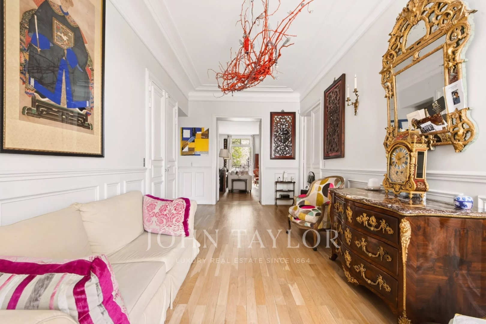 Located on the second floor (accessible by elevator) of a well-maintained, high-end historic building with a concierge, this apartment offers 228.08 m² of living space. As the only unit on the floor and featuring a dual-aspect layout, it captivates with its generous proportions and abundant natural light. The entryway opens onto a spacious double living area, extended by a long balcony offering views of Place d’Iéna and the Galliera Museum. The fully fitted and equipped kitchen-dining area enjoys plenty of natural light thanks to its southwest exposure and unobstructed views. The sleeping area consists of four bedrooms. The master suite, situated in a quiet courtyard-facing location, features a walk-in closet and a bathroom. Three additional bedrooms, each with its own en-suite bathroom, complete the layout. Two separate guest bathrooms. Numerous design possibilities further enhance this property’s potential. A basement storage room, accessible by elevator, completes this property.