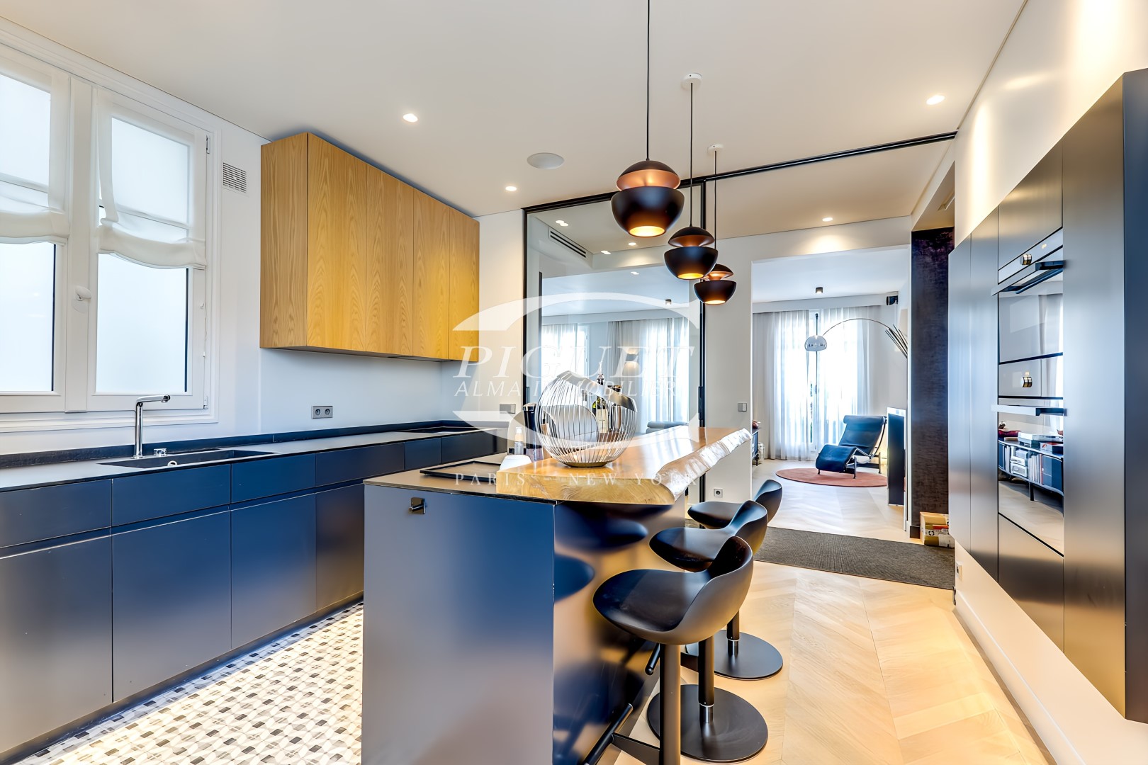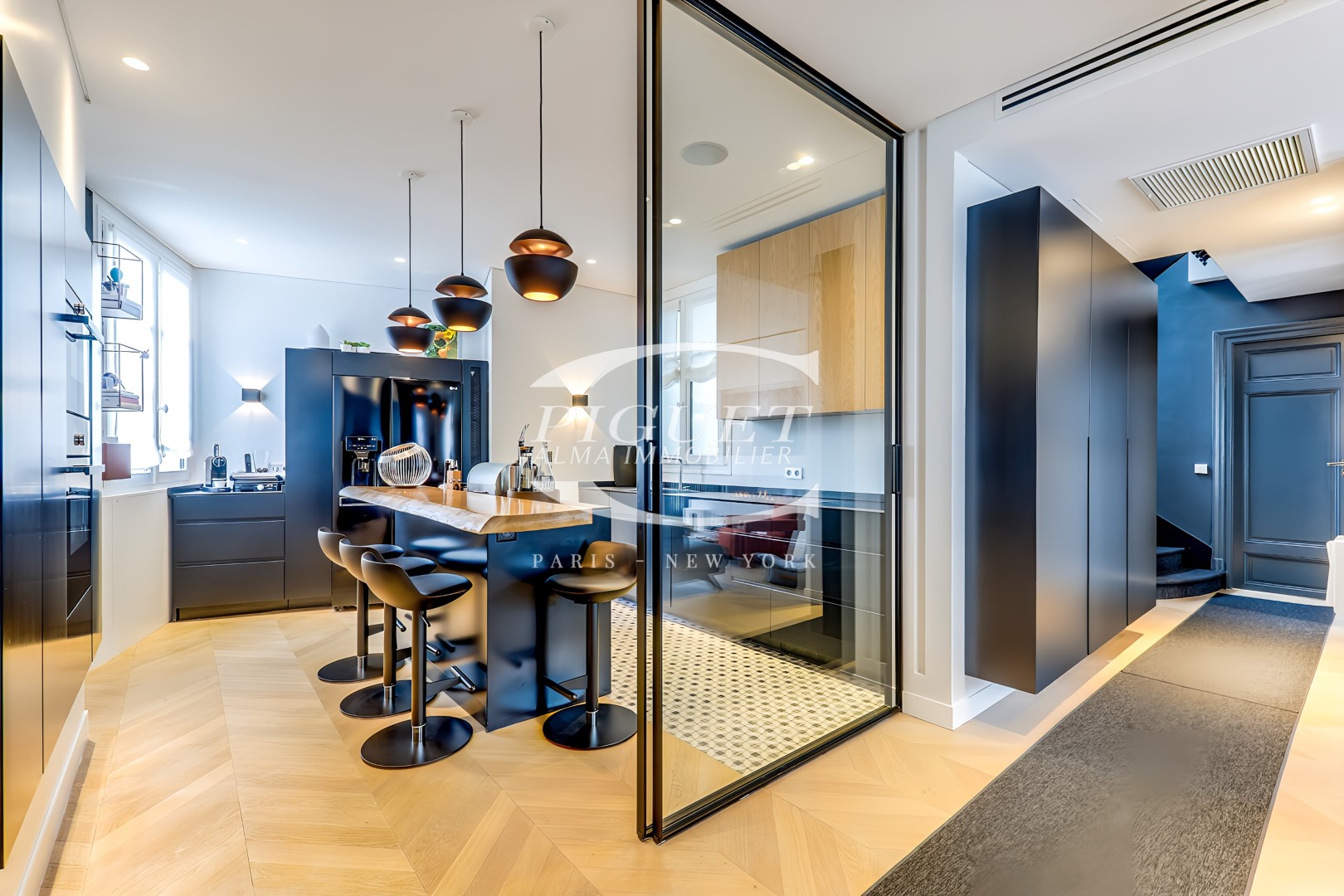 In a quiet environment, with an open view and south-east exposure this apartment200 m² (about 2150 ft²), built in 1930 duplex, in a building of 7 floors has 7 rooms including 5 bedrooms, 2 bathrooms and 3 toilets. It has a living room, dining room, a Fitted, a balcony, a cellar and a parking lot. Totally renovated, it's located on the 7th floor with a lift. Heating : Gaz. Others : intercom, digicode, guard, parquet floor, fireplace. This text is an automatic translation.