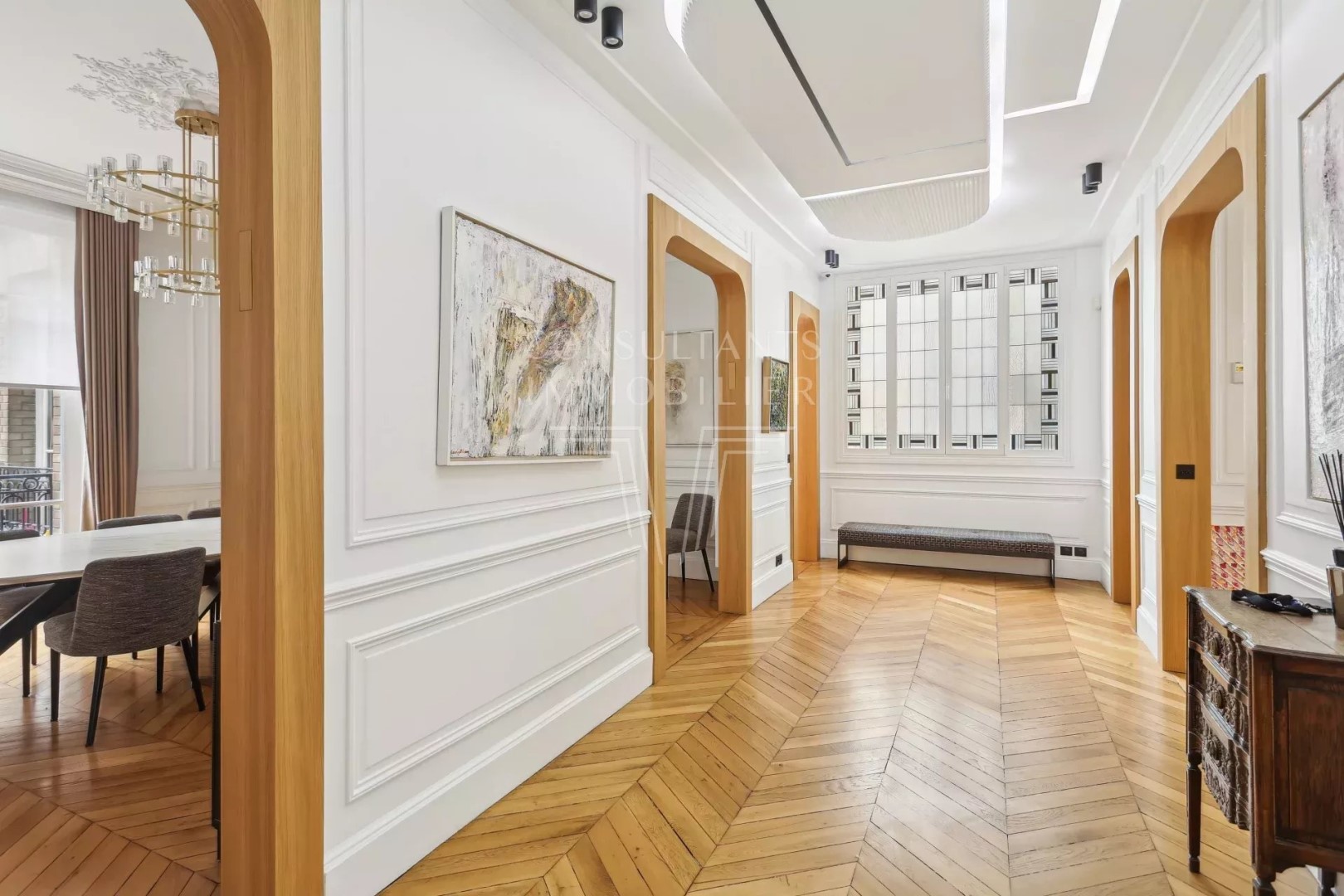 This apartment271 m² (about 2913 ft²), built in 1900, in a building of 7 floors contains 8 rooms including 5 bedrooms and 2 bathrooms. It is equipped with a living room, with dining room, with a None and with a cellar. It's located on the 4th floor with a lift. Heating : Radiator. Others : cable television.