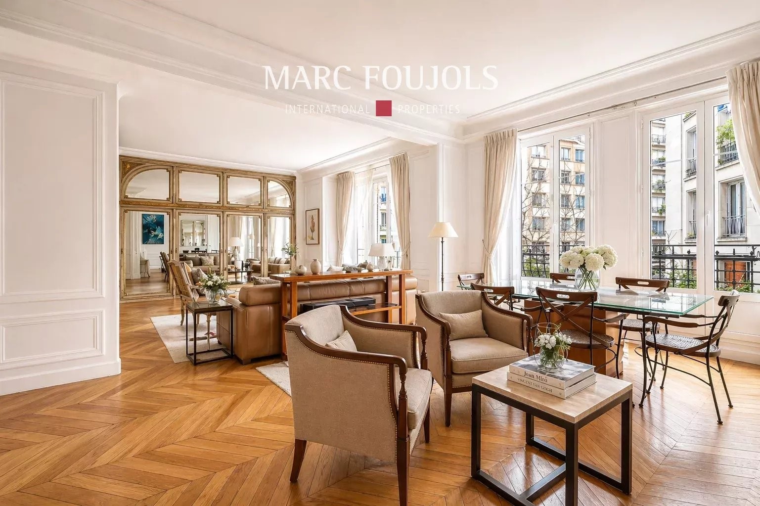 Between Trocadéro and La Muette, on the second floor of a Haussmann building, this 182m² apartment boasts high ceilings and original charm. It comprises an entrance hall, a double living room opening onto a south-west-facing balcony, an office, a separate kitchen, 3 large bedrooms (17, 17 and 24m²), a bathroom and a shower room. 2 WCs. Cellar.