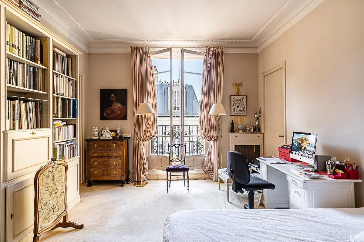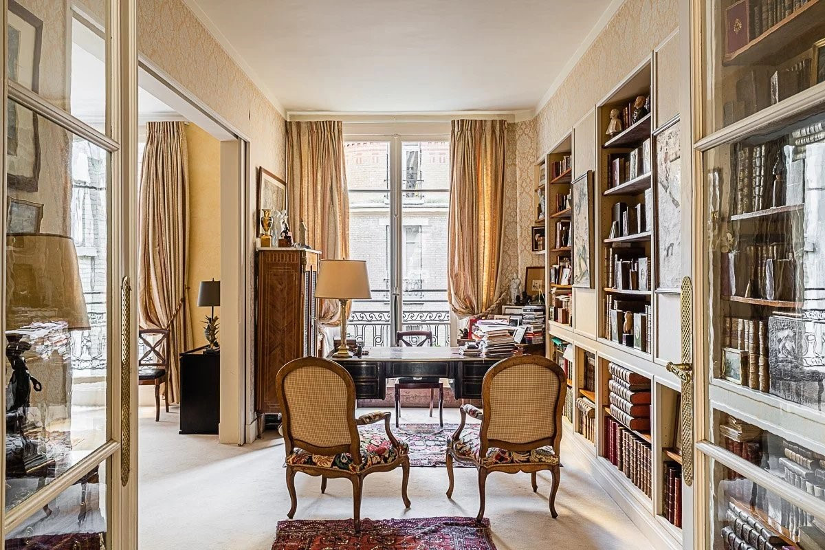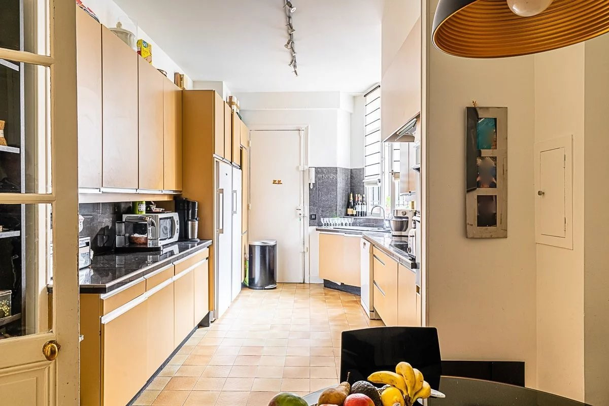 Elegant family and reception apartment on 4th floor with elevator, in a beautiful building dating from the 1930s with high-standard communal areas, featuring spacious rooms and double exposure. Today, it features - an entrance gallery - a large reception room with fireplace - a study - a dining room - separate kitchen - master bedroom with en suite bathroom - three other large bedrooms with en-suite bath/shower rooms and toilets. - guest toilet - laundry room - a large dressing room A cellar completes this property. Elevator Janitor Height : 3m10 Facing : East and West The apartment is located a few numbers from the renowned bilingual "Union School". Quiet, commercial neighborhood and environment.