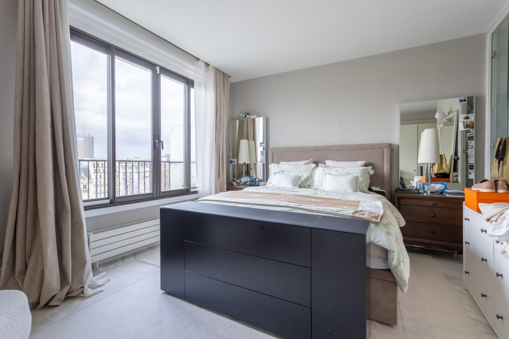 With south-west exposure this apartment155 m² (about 1666 ft²), built in 1975 has 6 rooms including 3 bedrooms and 3 toilets. It has a living room, a Fitted kitchen/dining room, a terrace, a garage, a cellar and a parking lot. It's located on the 7th floor with a lift. Heating : Collective. Others : intercom, digicode.