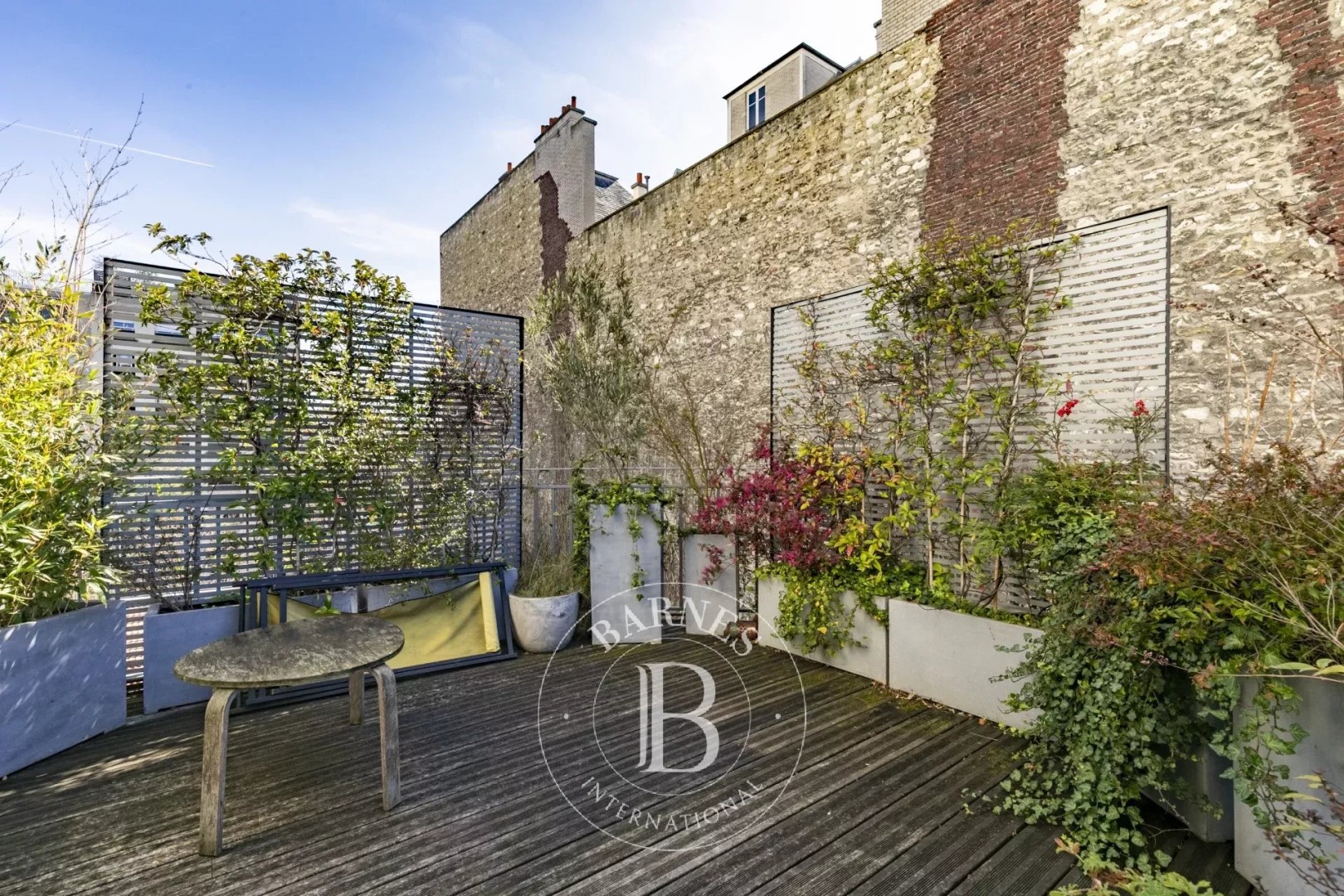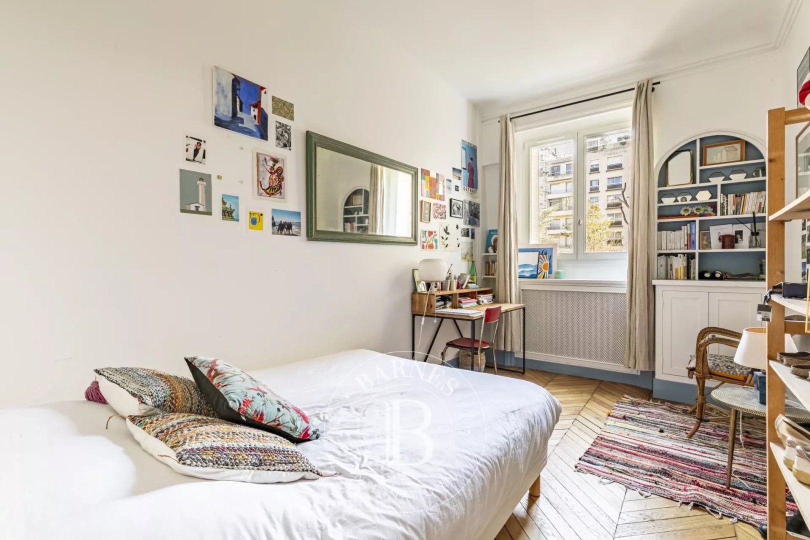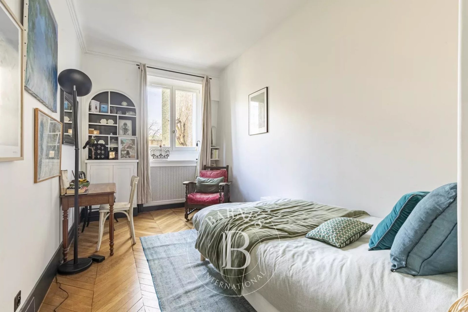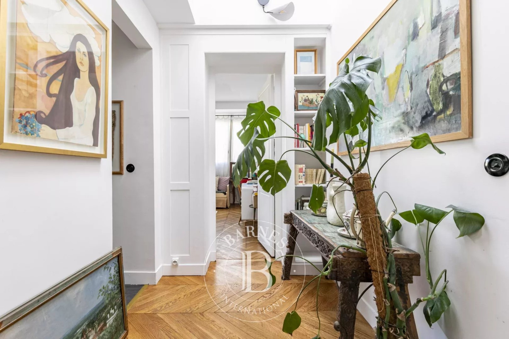 Family apartment, fully renovated, offering 210 sqm of living space, located on the 2nd and top floor of a 19th-century private mansion. Designed like a house and ideally situated just steps from the Jardin du Ranelagh, this dual-aspect East/West apartment features a double living room with fireplace, a semi-open eat-in kitchen, a spacious office with a glass partition overlooking the garden, three bedrooms with a bathroom and a shower room, as well as a master suite with dressing room and en-suite bathroom. A laundry room completes the property. You will also discover a fifth bedroom nestled in the turret, which provides access to a sunny 14 sqm rooftop terrace. This unique property, full of charm, is sure to capture your heart. Property subject to co-ownership regulations.